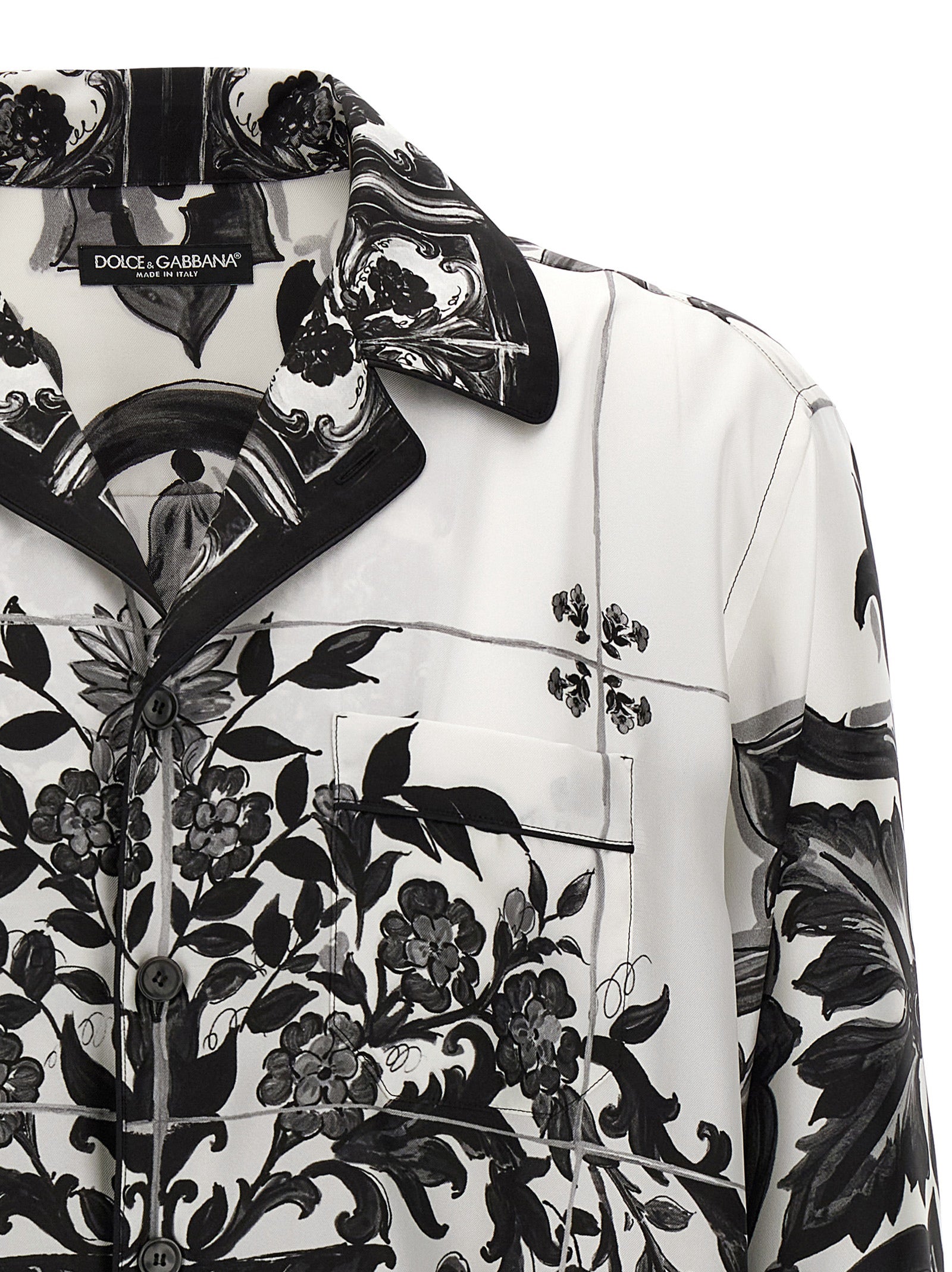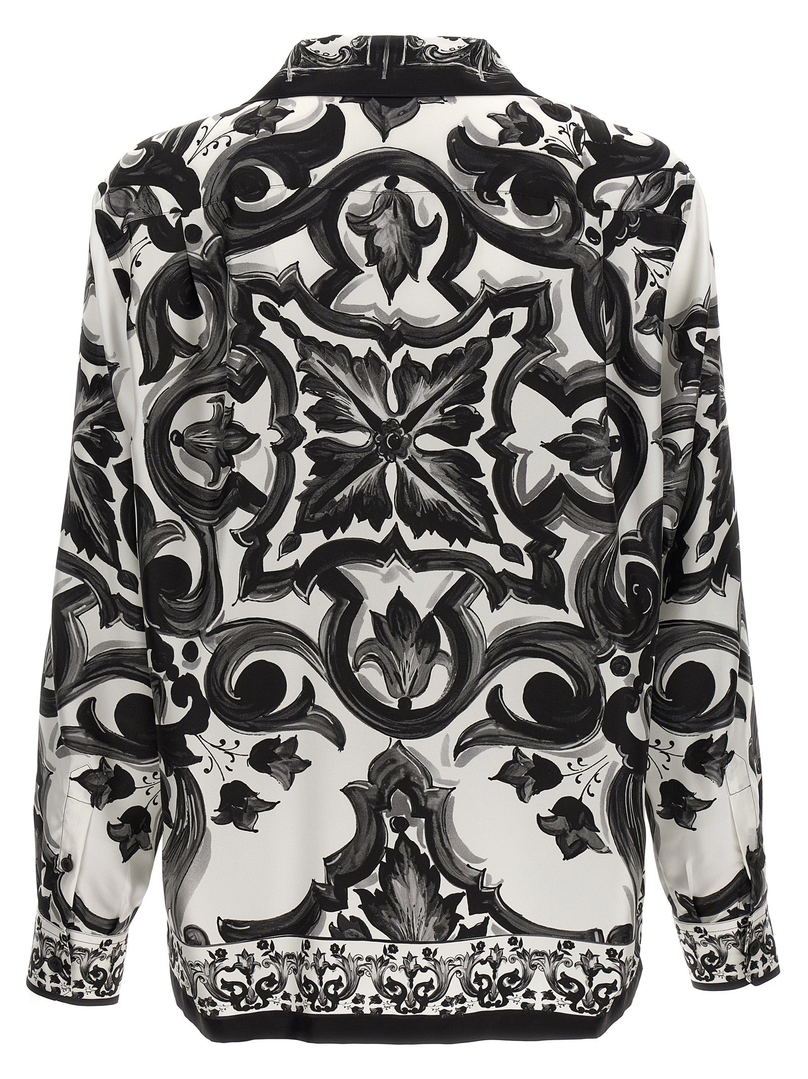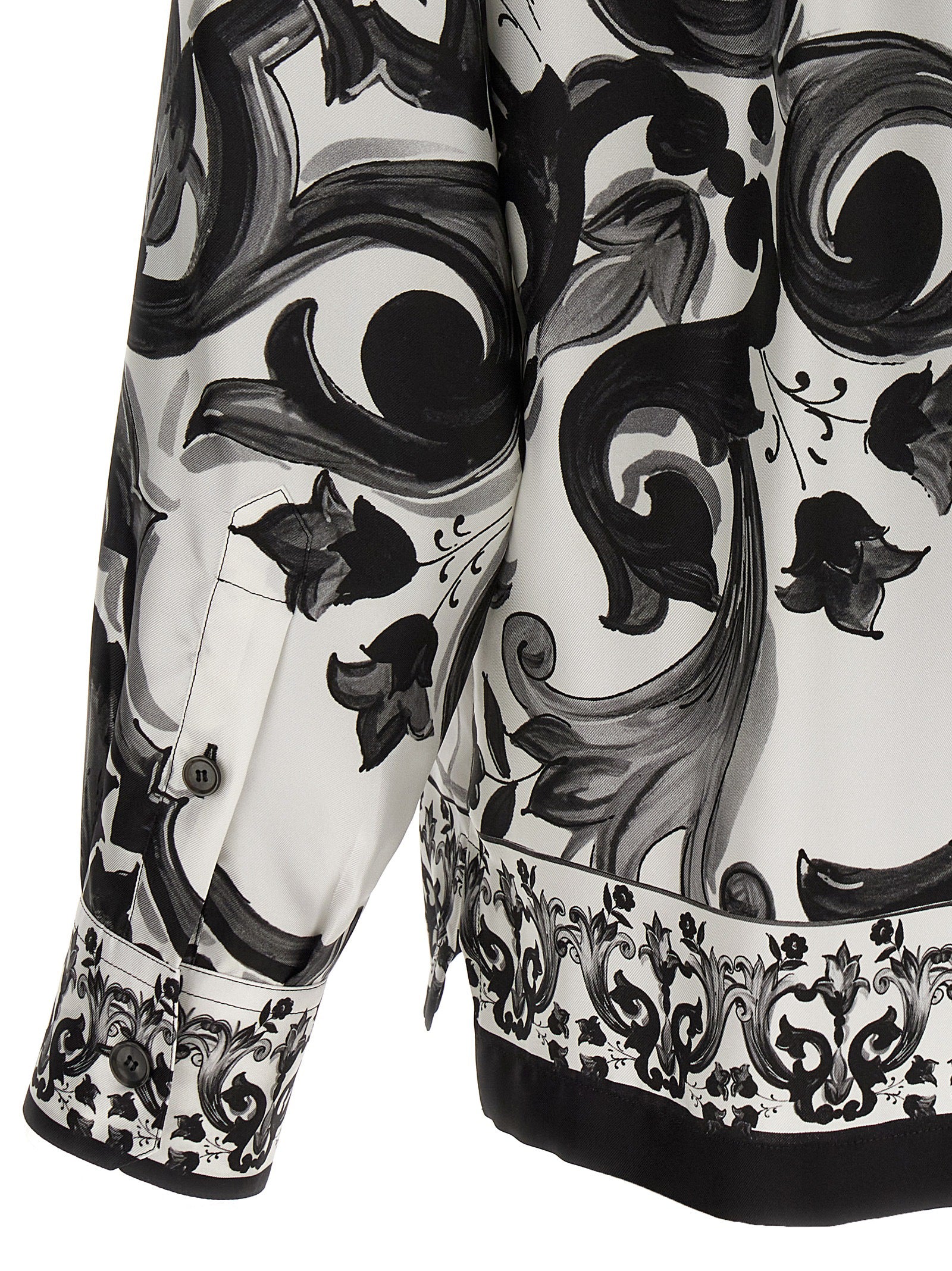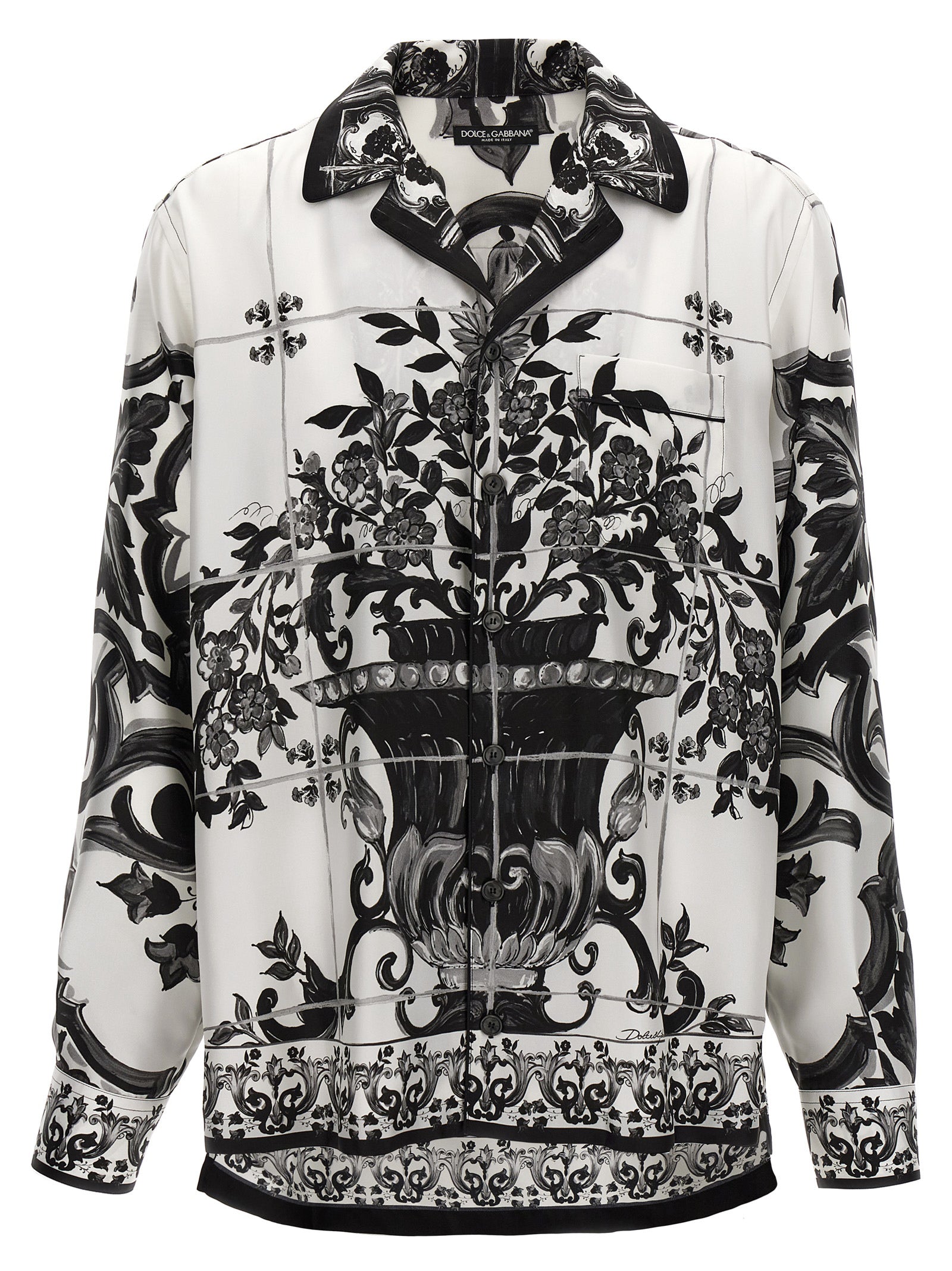 'Vanity' silk twill shirt with 'Maiolica' print, front button closure, breast pocket, long sleeves with cuffs and shoulders slightly, side slits. The differences in print placement you might find on this product is a characteristic of Dolce&Gabbana's Handmade products. A peculiarity that makes each garment or accessory unique and exclusive.