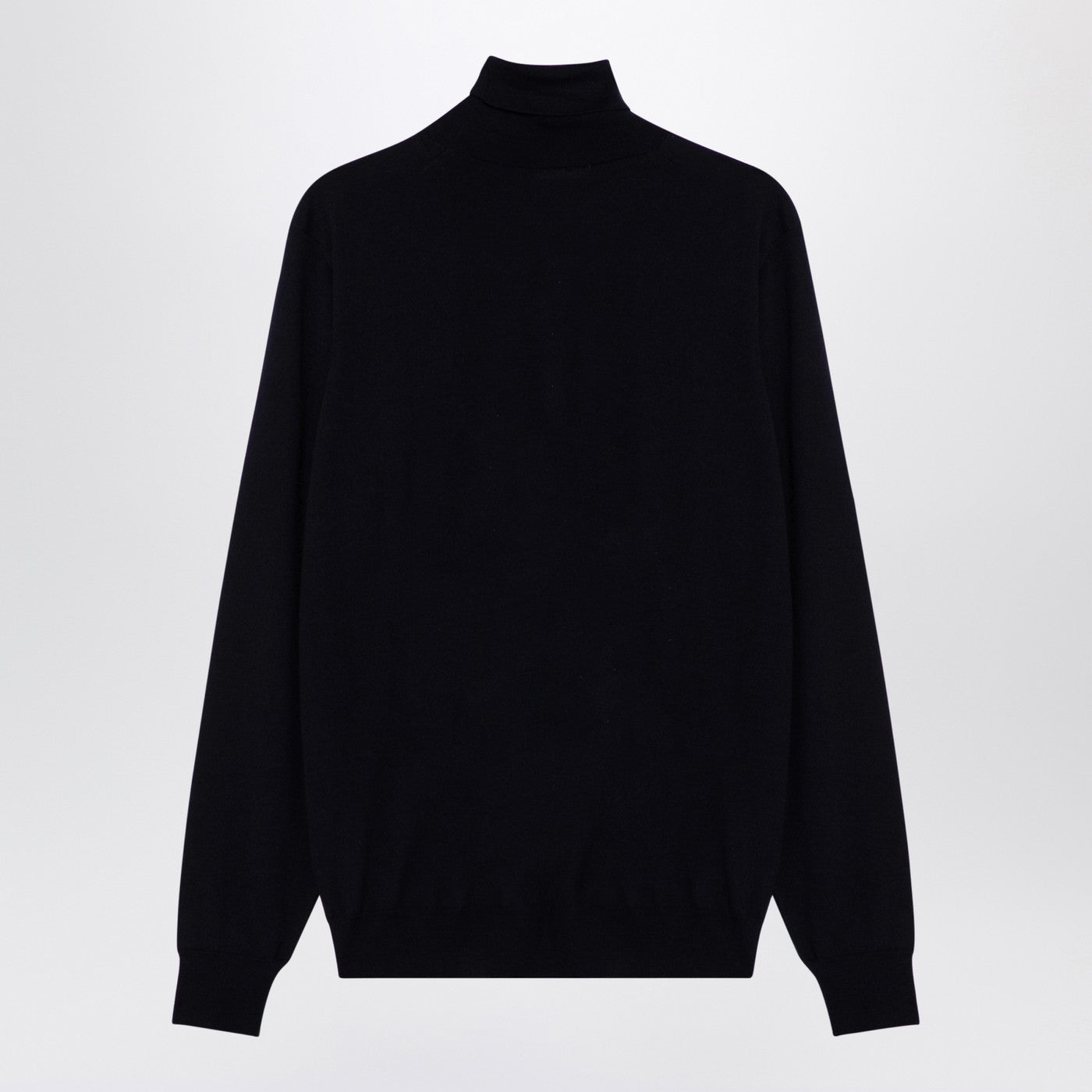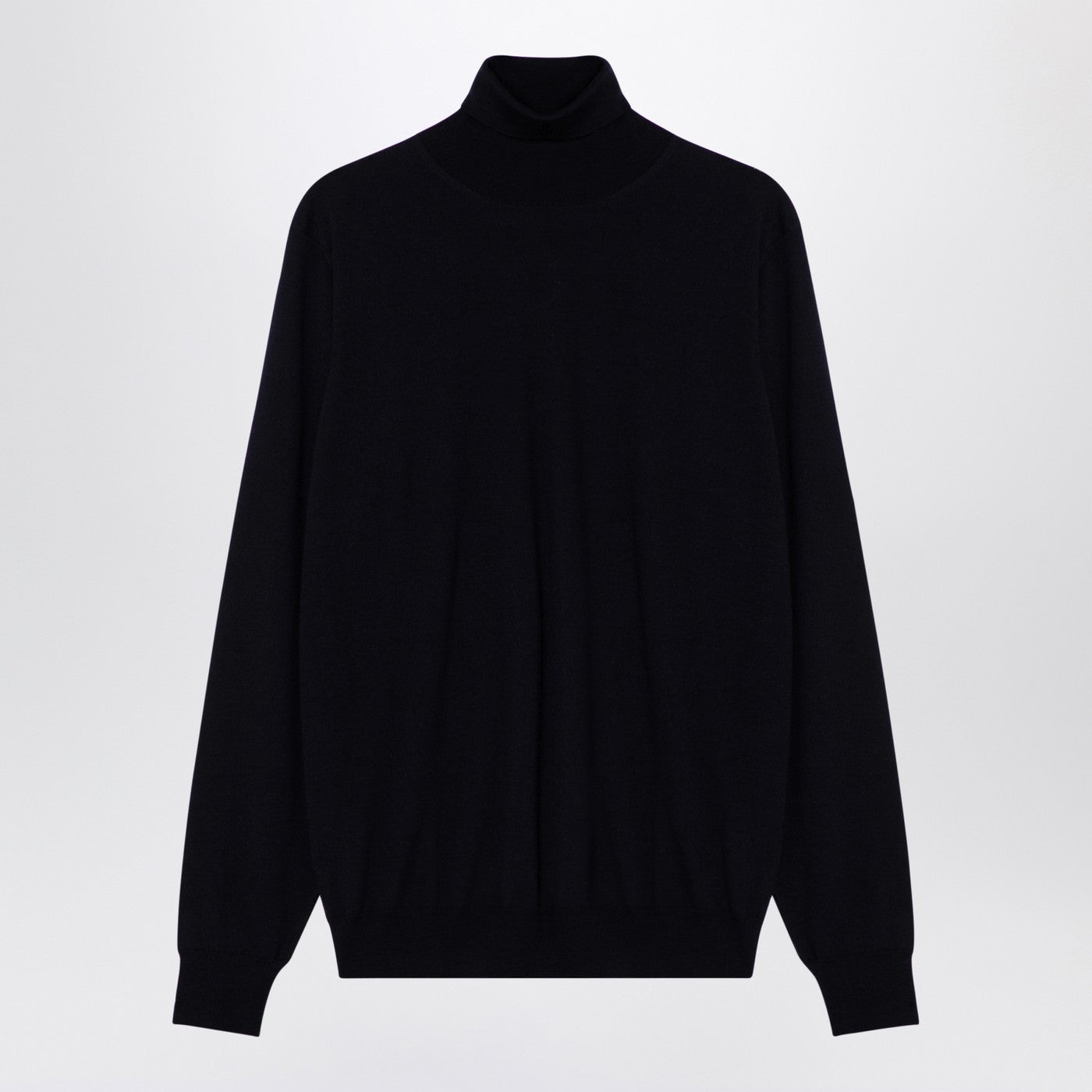 Blue virgin wool sweater by Drumohr with long sleeves and a turtle neck.