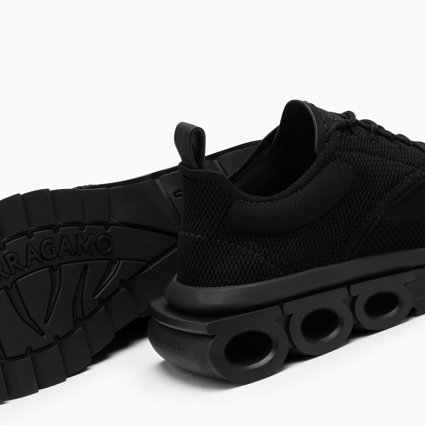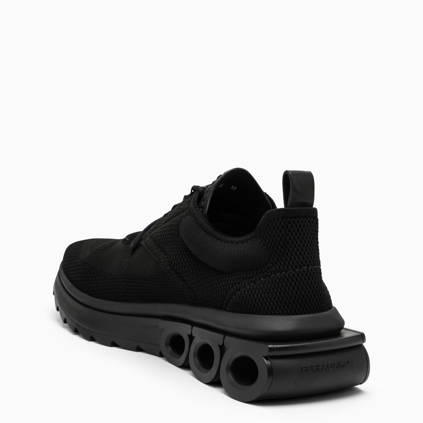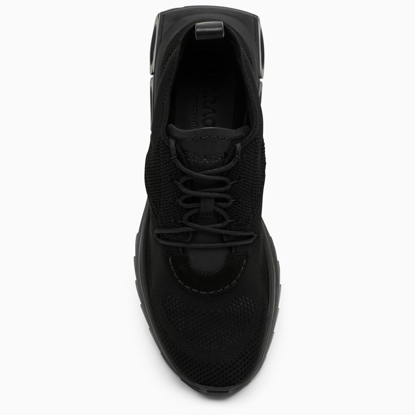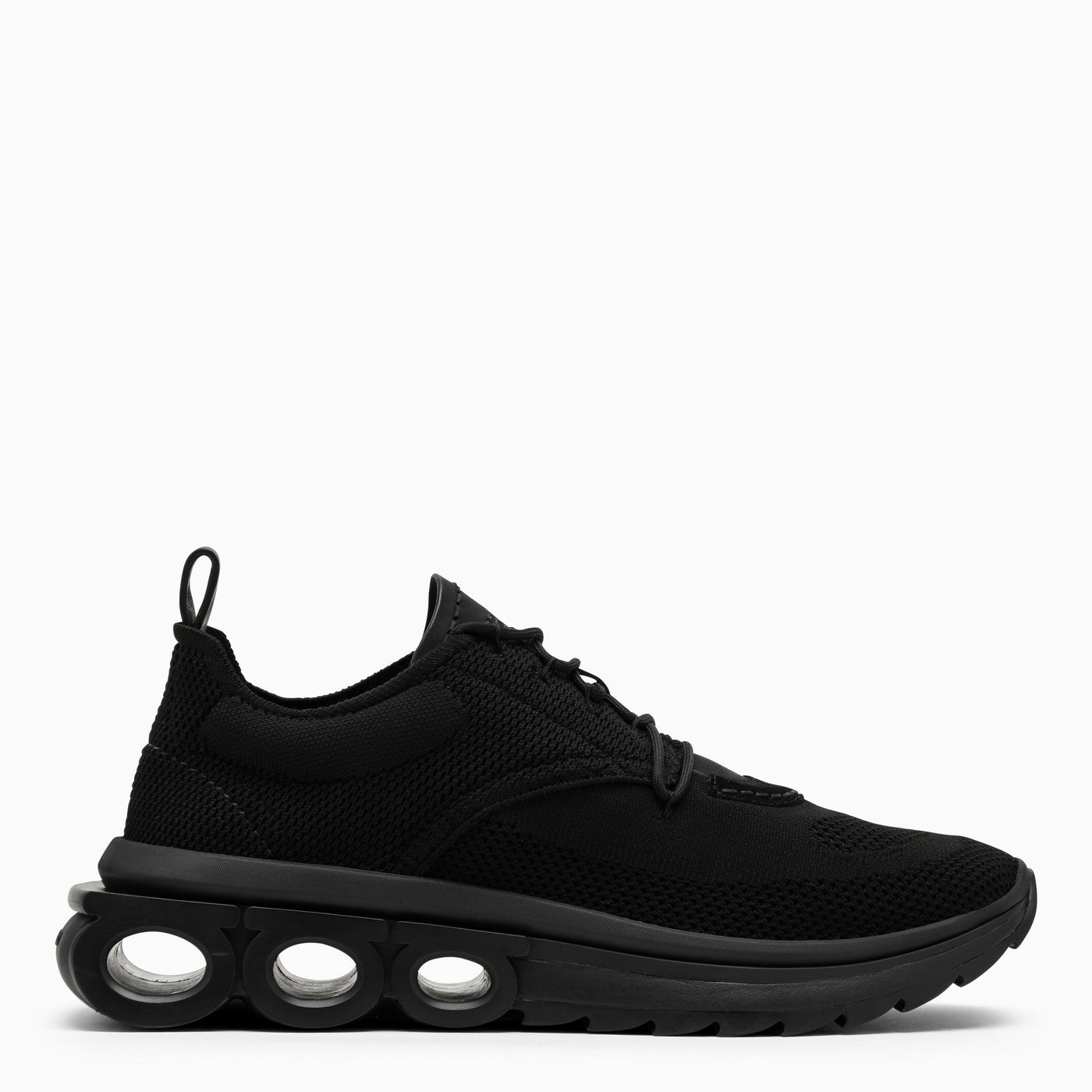 Black knit trainer by Ferragamo featuring leather detailing, a rounded toe, a lace-up fastening and a moulded rubber sole with perforations.
