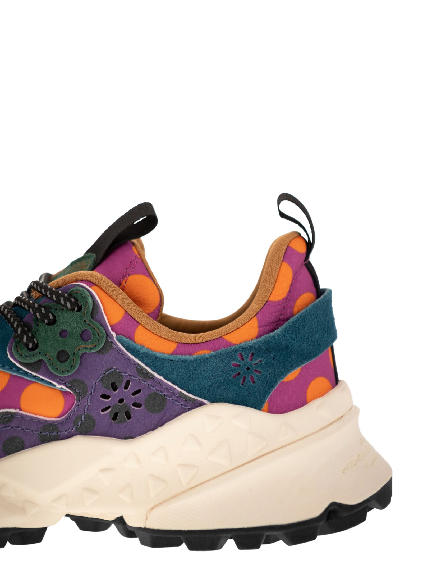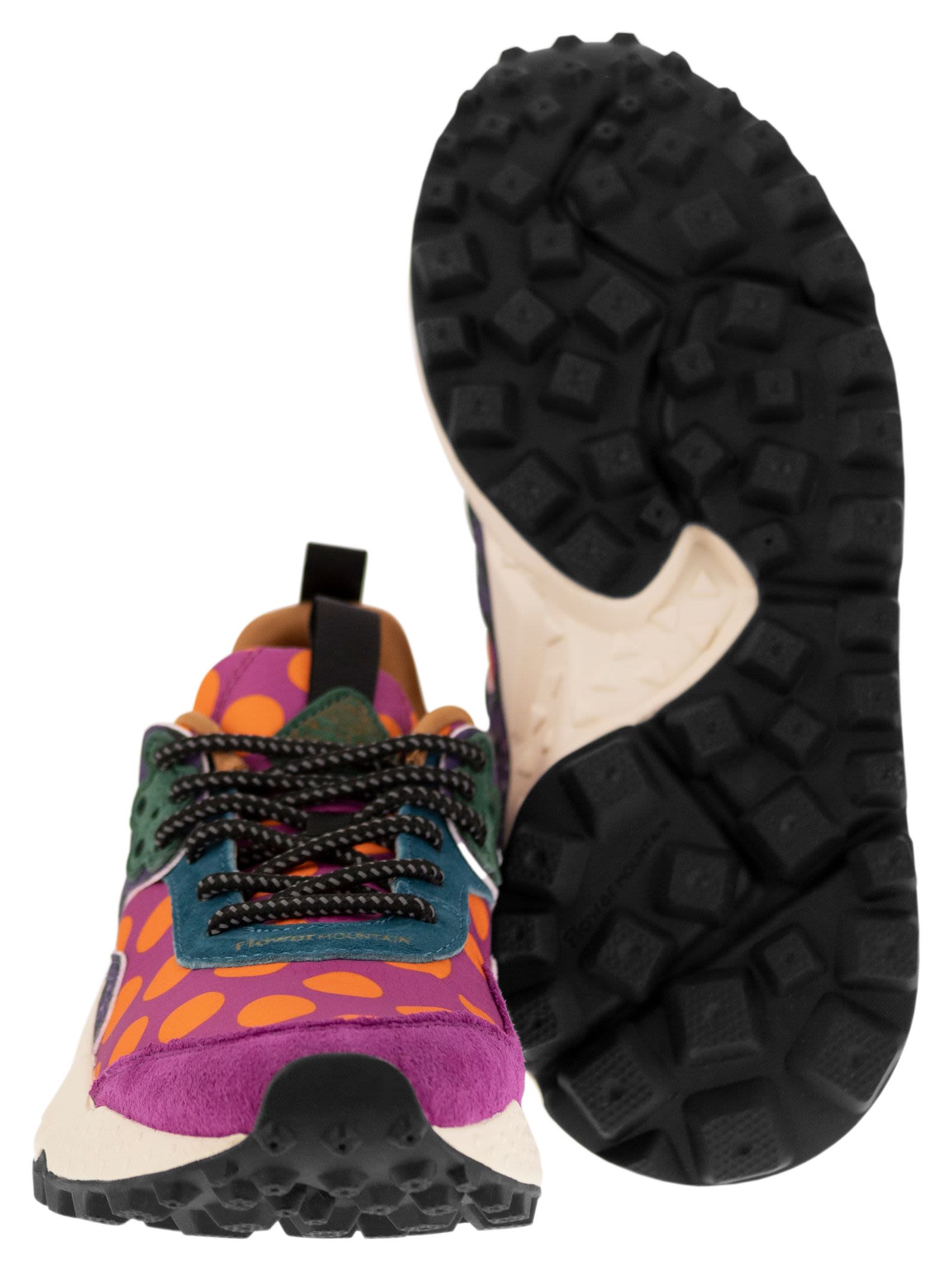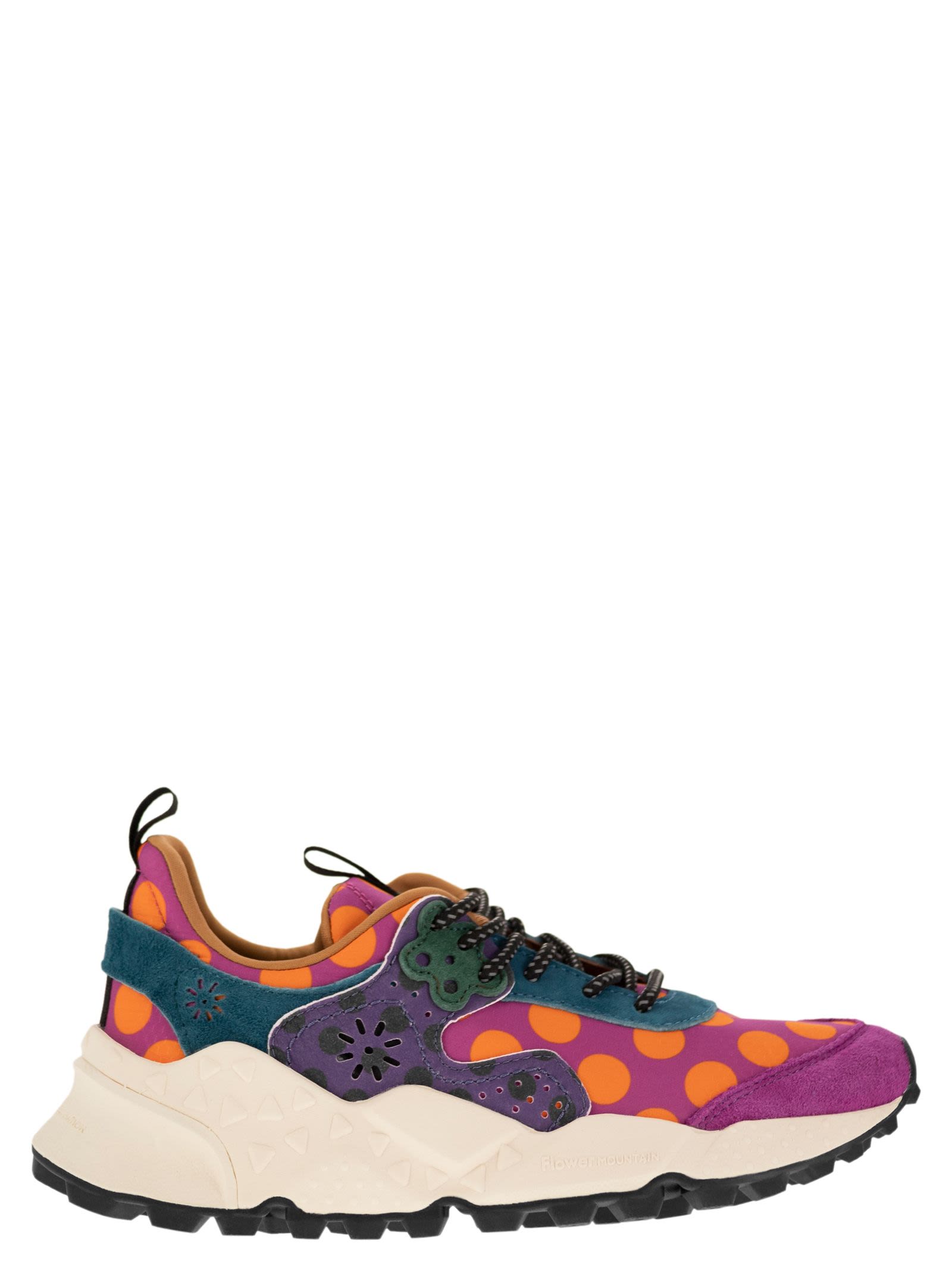 An explosion of colour and patterns: these are the details that make this version of the Kotetsu trainer super energetic. The sporty structure is reinterpreted with a technical fabric upper, suede inserts and coloured details. Trekking laces, a shaped eyelet and an antibacterial cork insole complete the design. Ultra-light rubber sole with side shaping and notched tread. DESIGNER ID: 2017822081H60