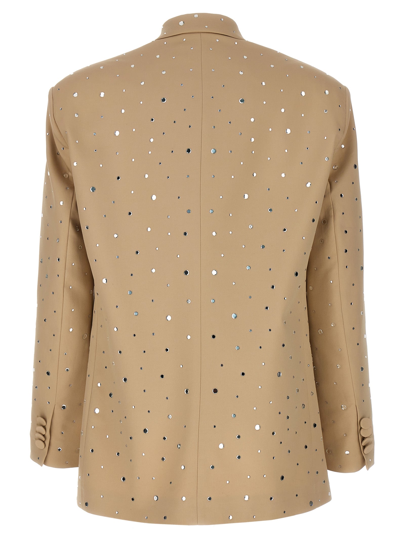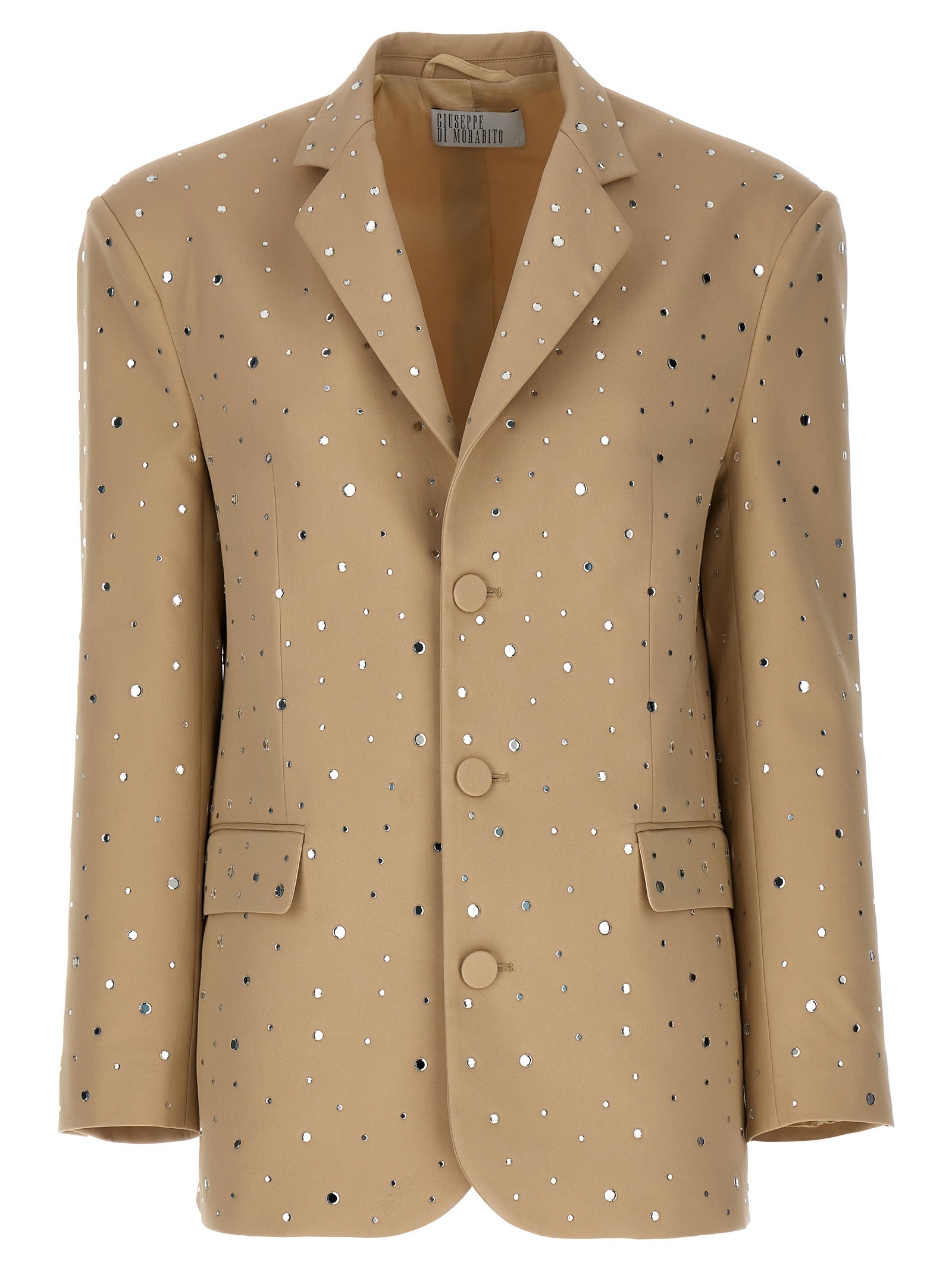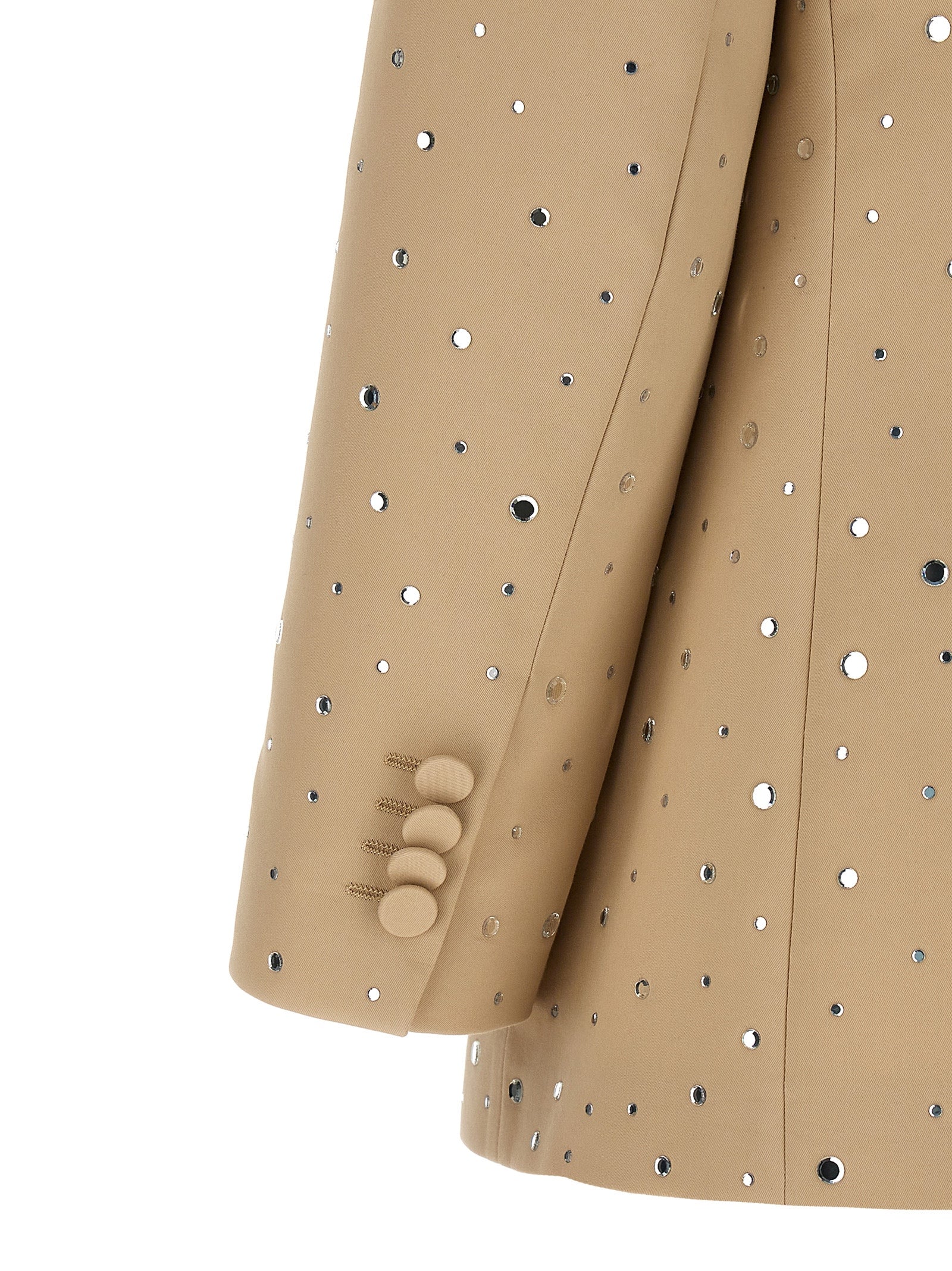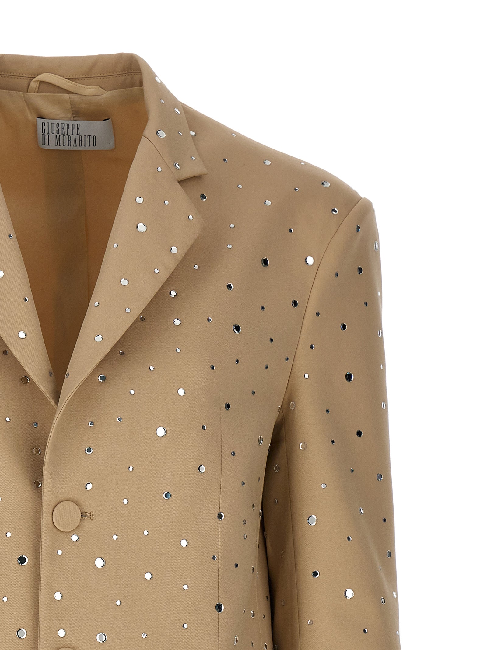 Single-breasted blazer in cotton blend, 3-button front closure, all-over crystal embellishment, slightly padded shoulders, long sleeves with buttons on the cuffs.