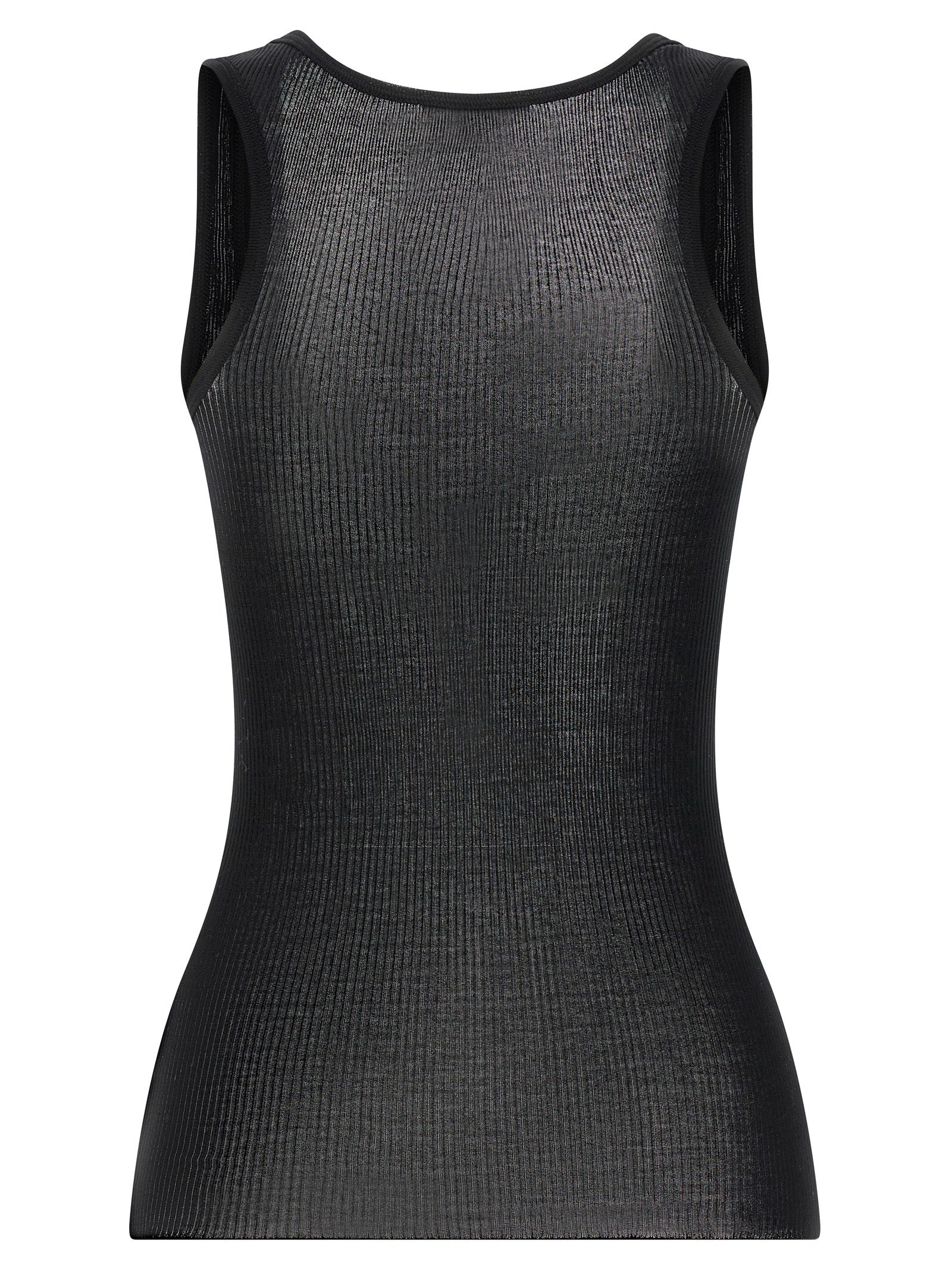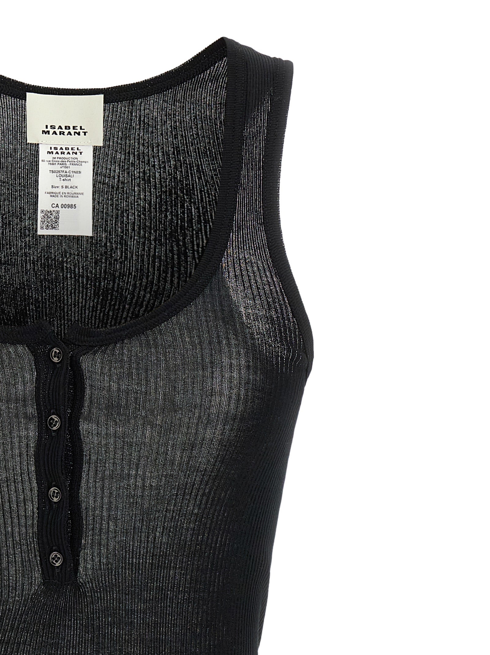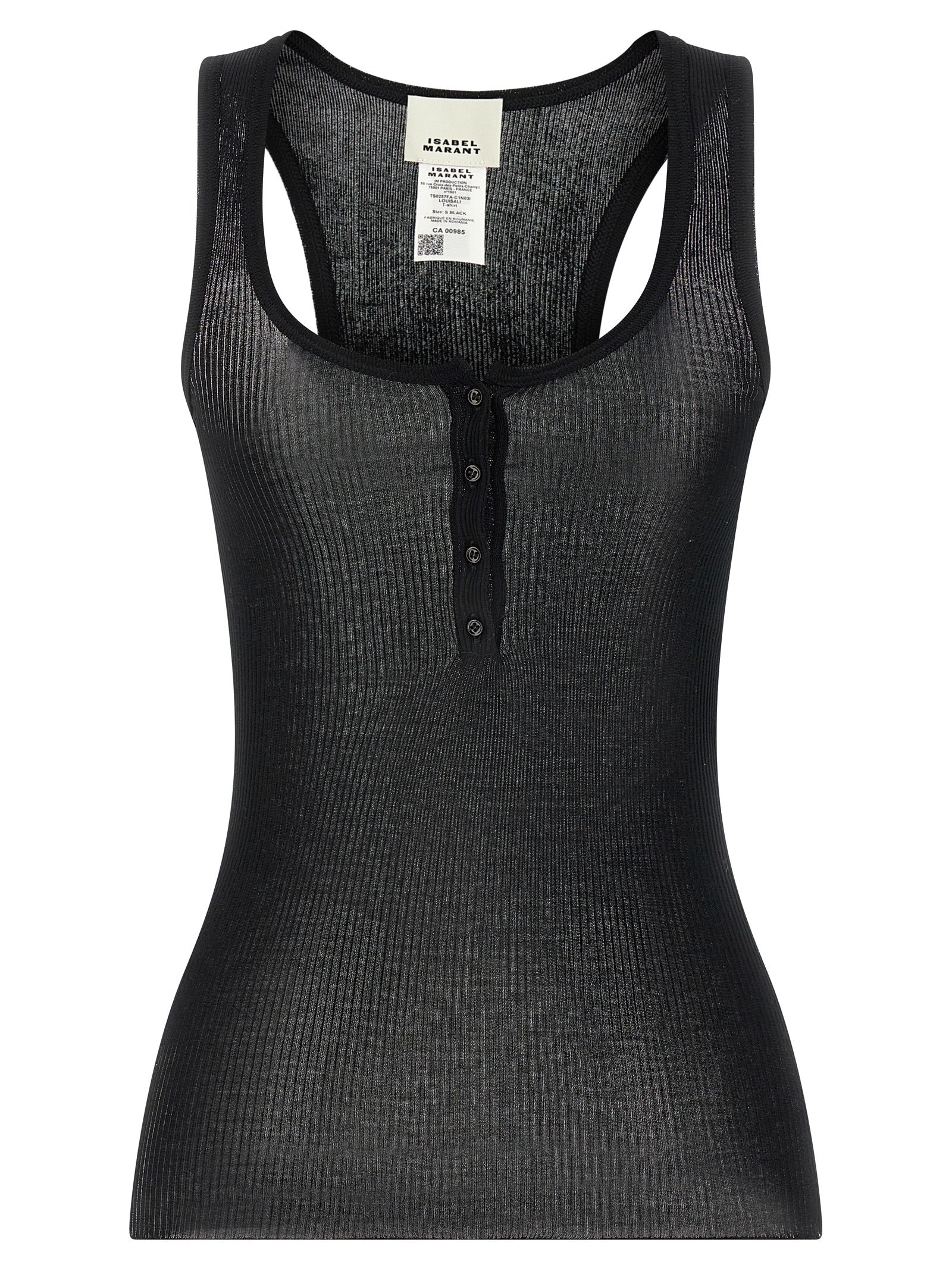 'Louisali' ribbed stretch cotton top with round neckline, buttons.
