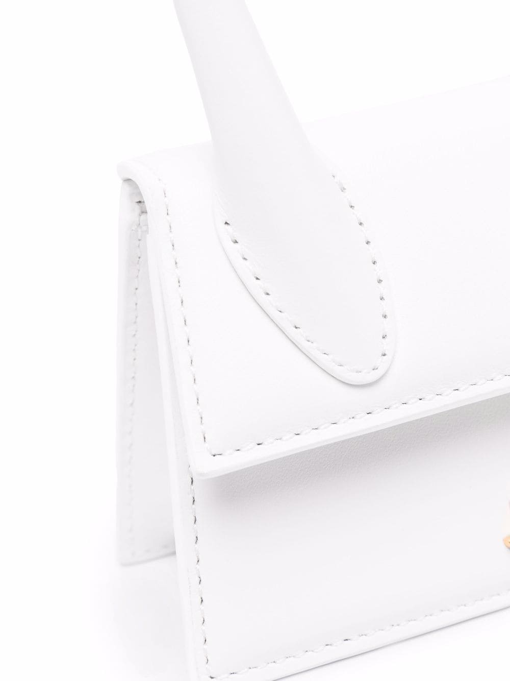 White calf leather Le Chiquito mini tote bag from JACQUEMUS featuring gold-tone logo plaque, single top handle, foldover top with magnetic fastening, main compartment and adjustable detachable shoulder strap.