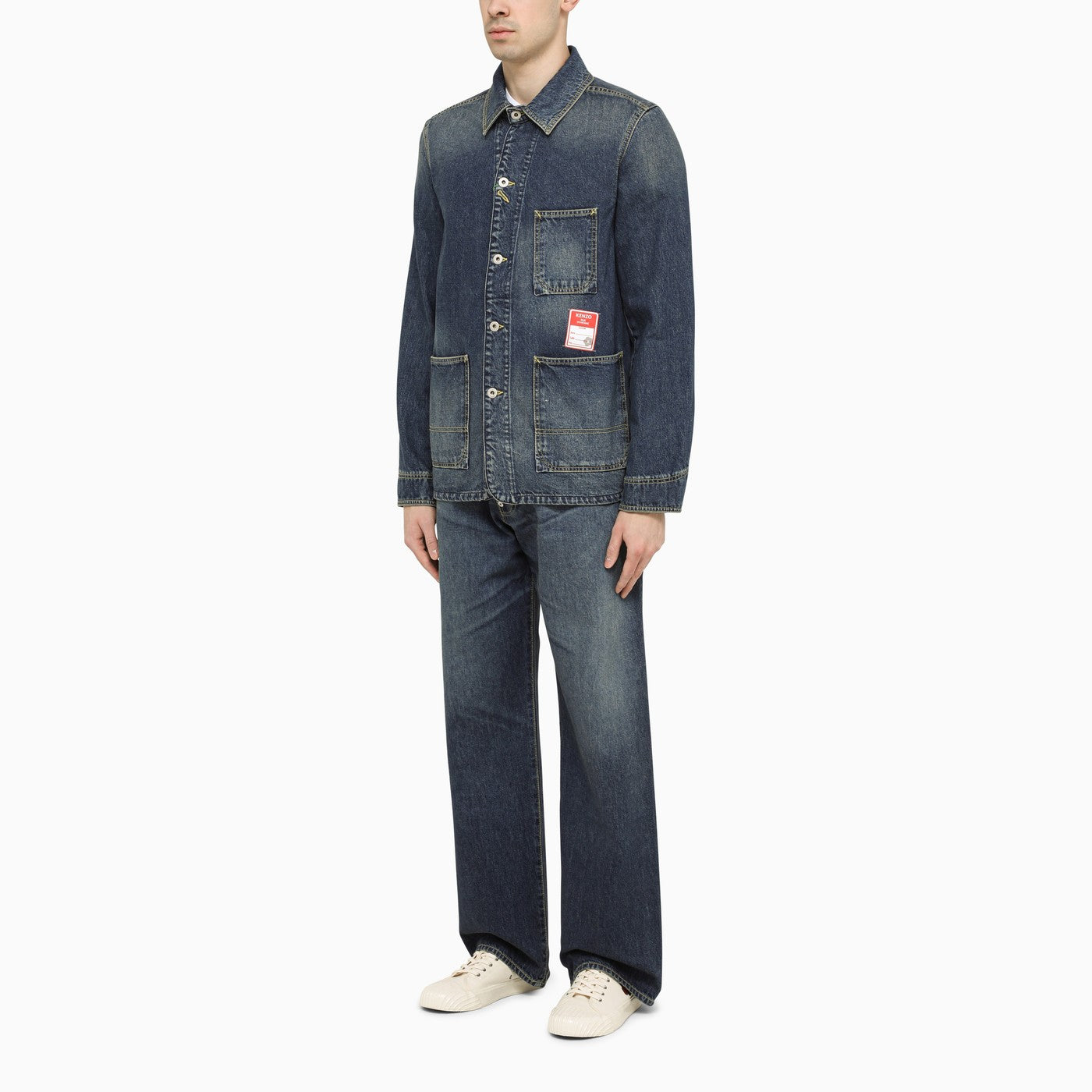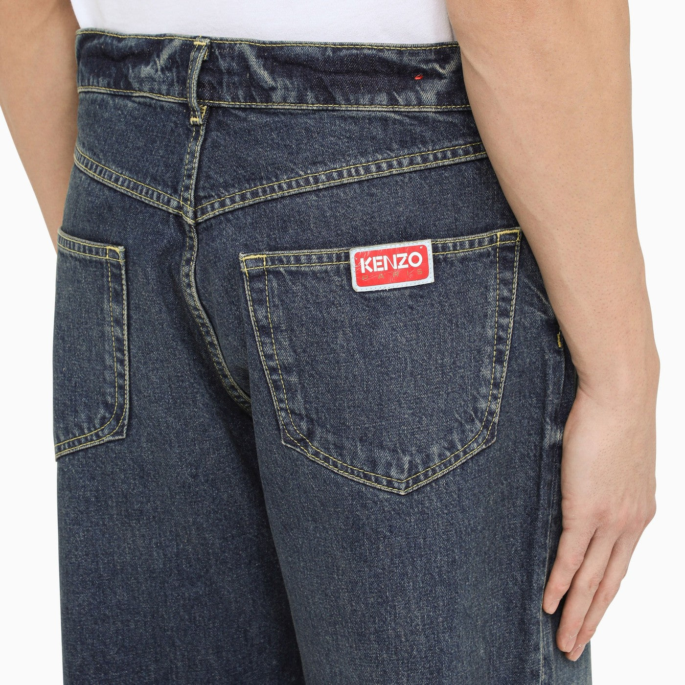 KENZO by Nigo Blue delavé cotton denim regular jeans by Kenzo featuring a cupped logo patch on the back, five pockets, contrast stitching and belt loops at the waist.