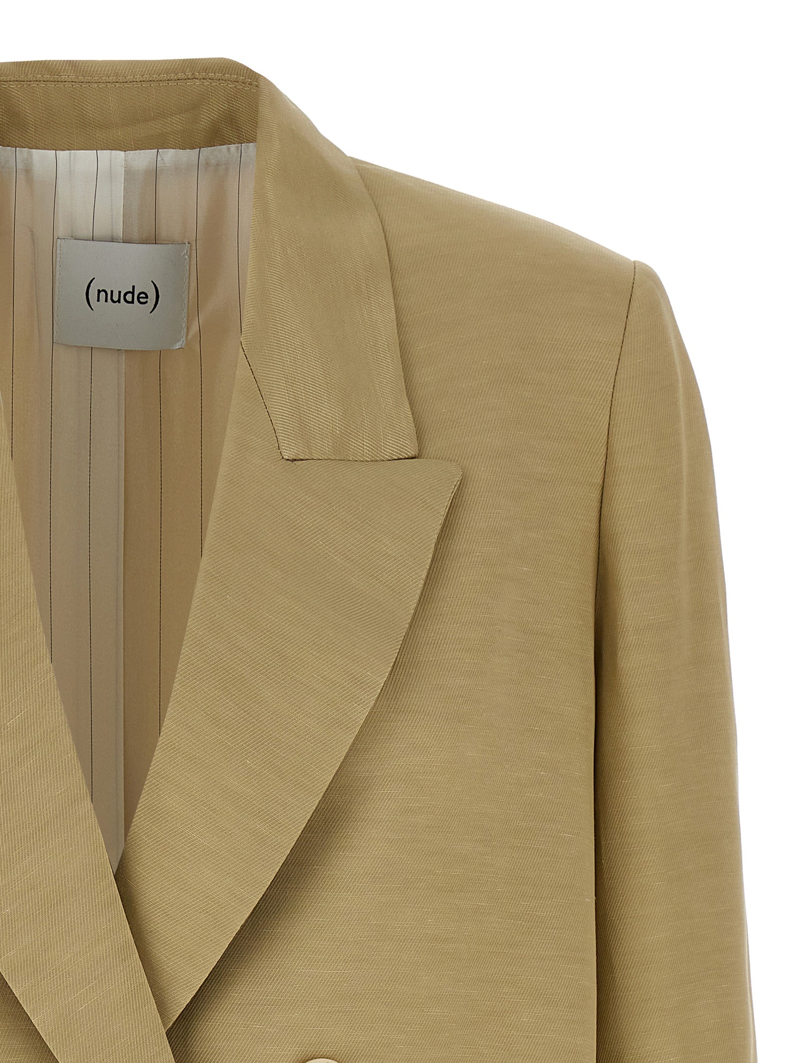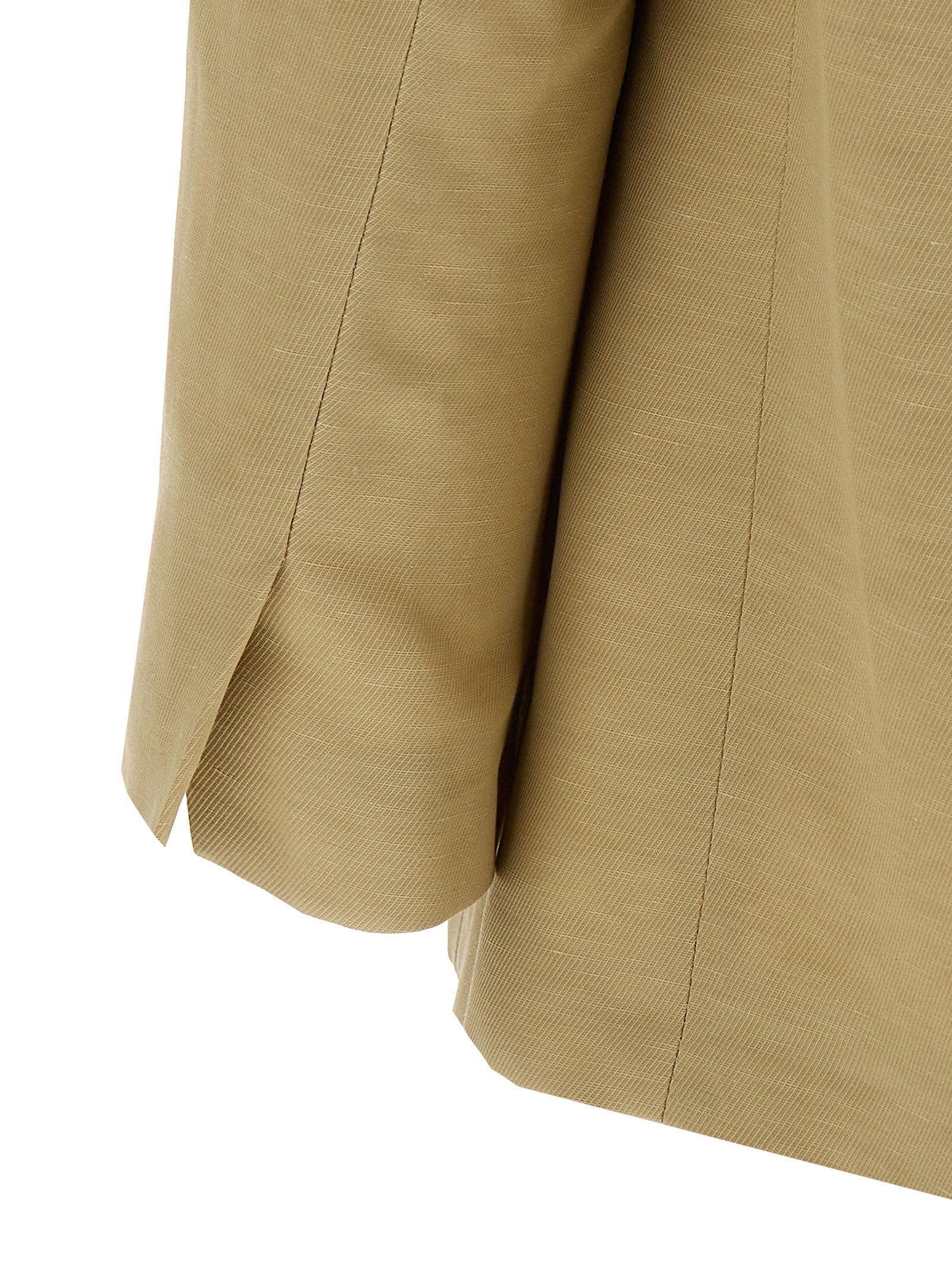 Double-breasted blazer in viscose and linen blend with button closure, lining, mirror lapels, pockets, long sleeves, and back split.