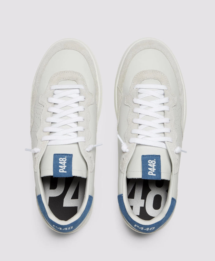 The Vert Rain is crafted entirely from white leather and suede, with a blue suede heel tag embossed. White cotton laces tie it all together.