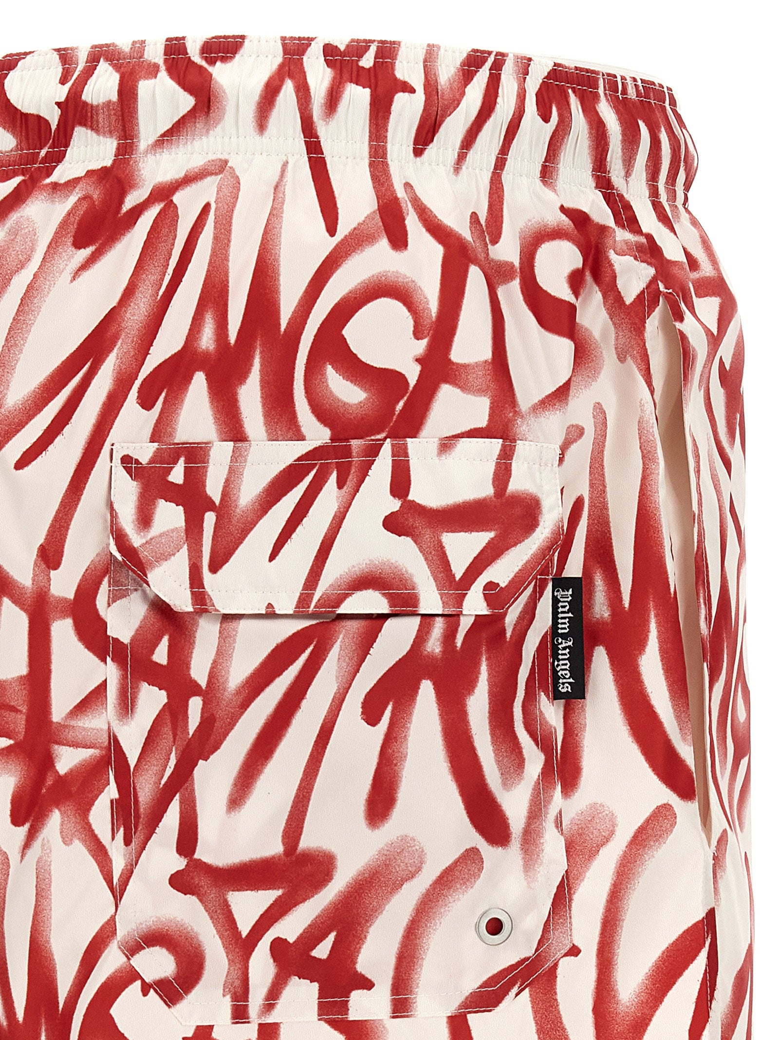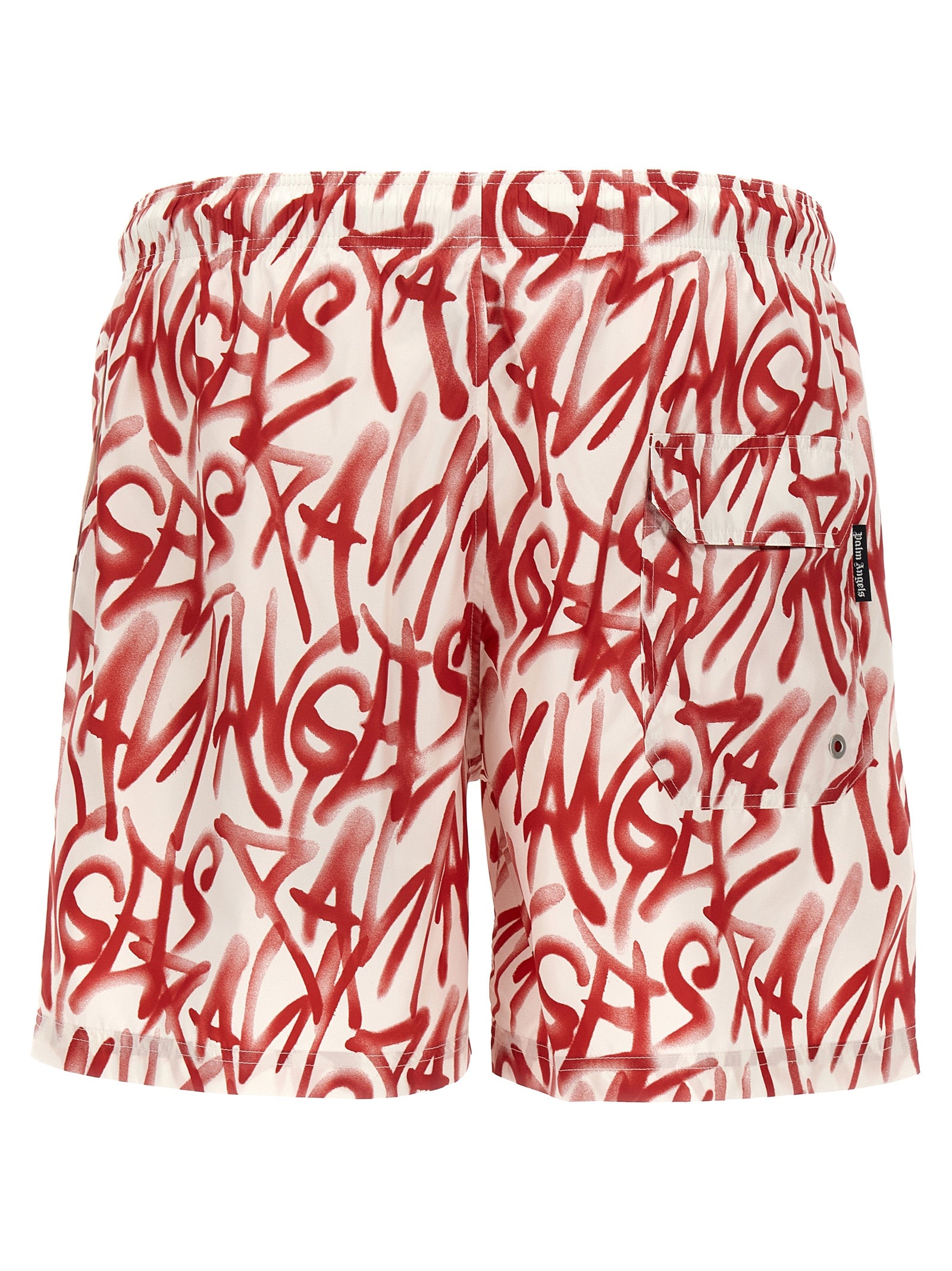 Swimsuit in all-over 'Graffiti' print technical fabric, adjustable drawstring elastic waistband, pockets, inner mesh briefs.