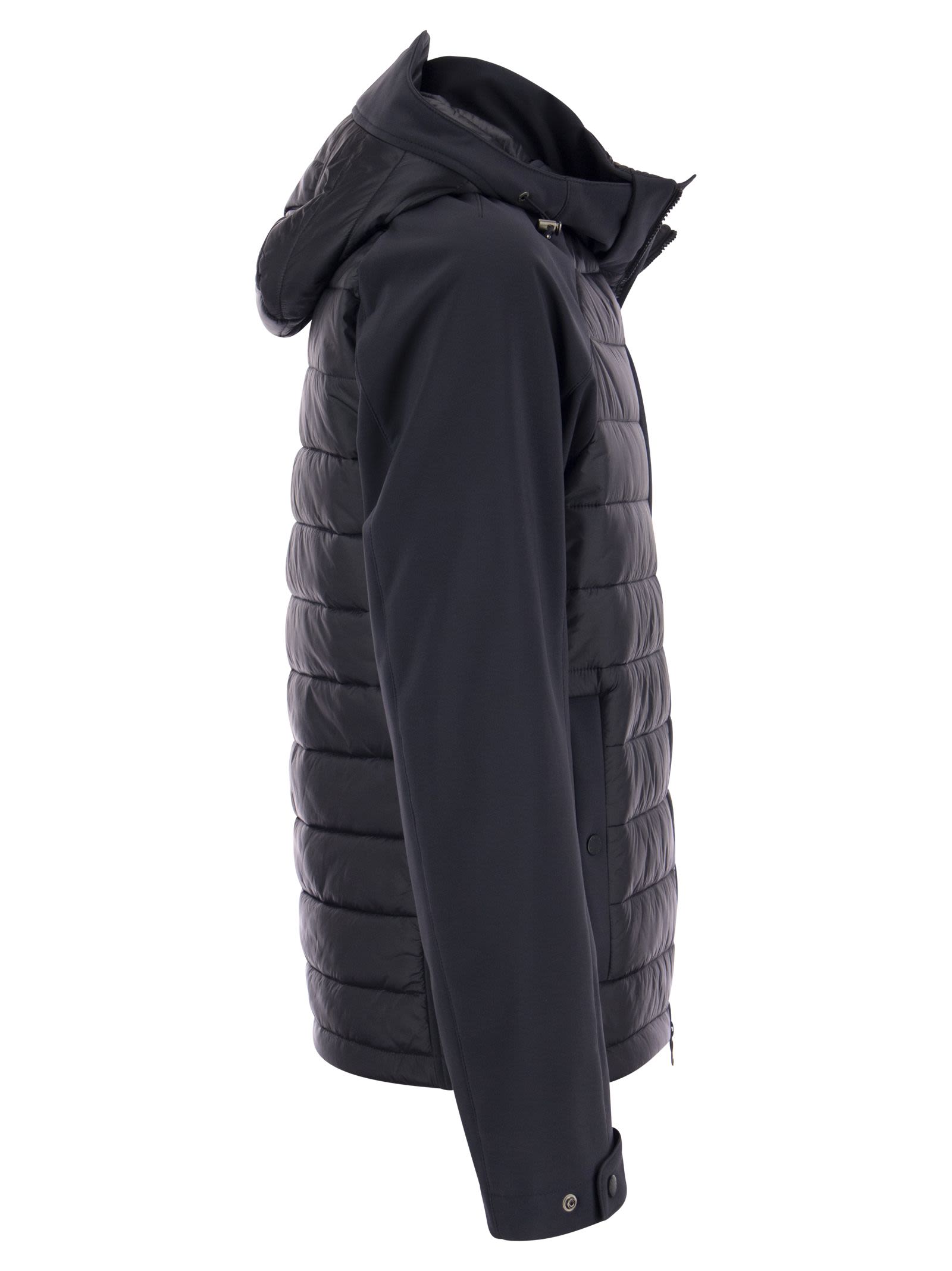Hybrid jacket with hood and front welt pockets. Featuring a technical fabric block structure for an even sportier style. Finished with the house's iconic patch on the shoulder. - Hood - Regular fit - Technical fabric blocks DESIGNER ID: 12312106 050