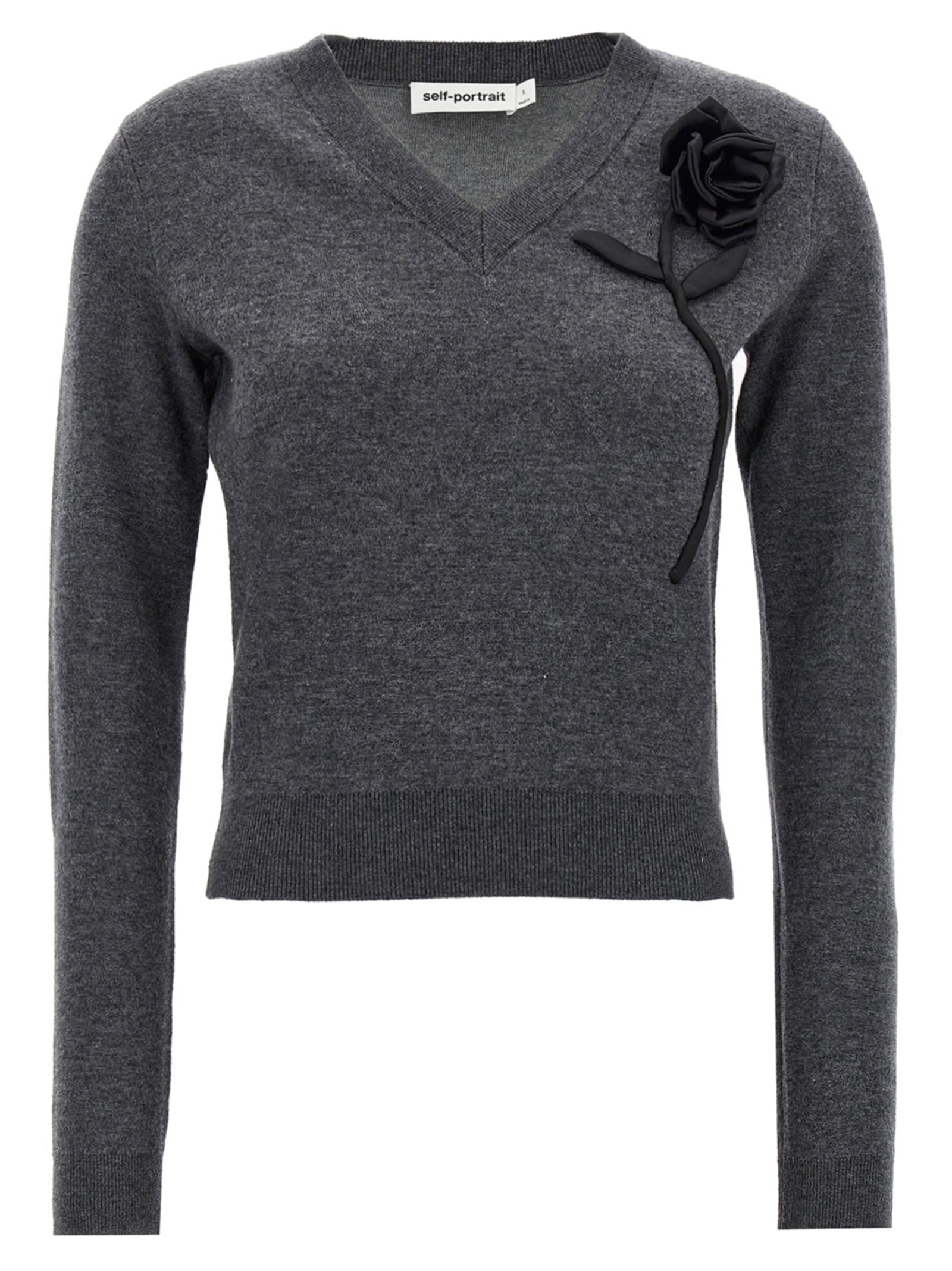 Self Portrait 'Charcoal Black Rose Jumper' Sweater