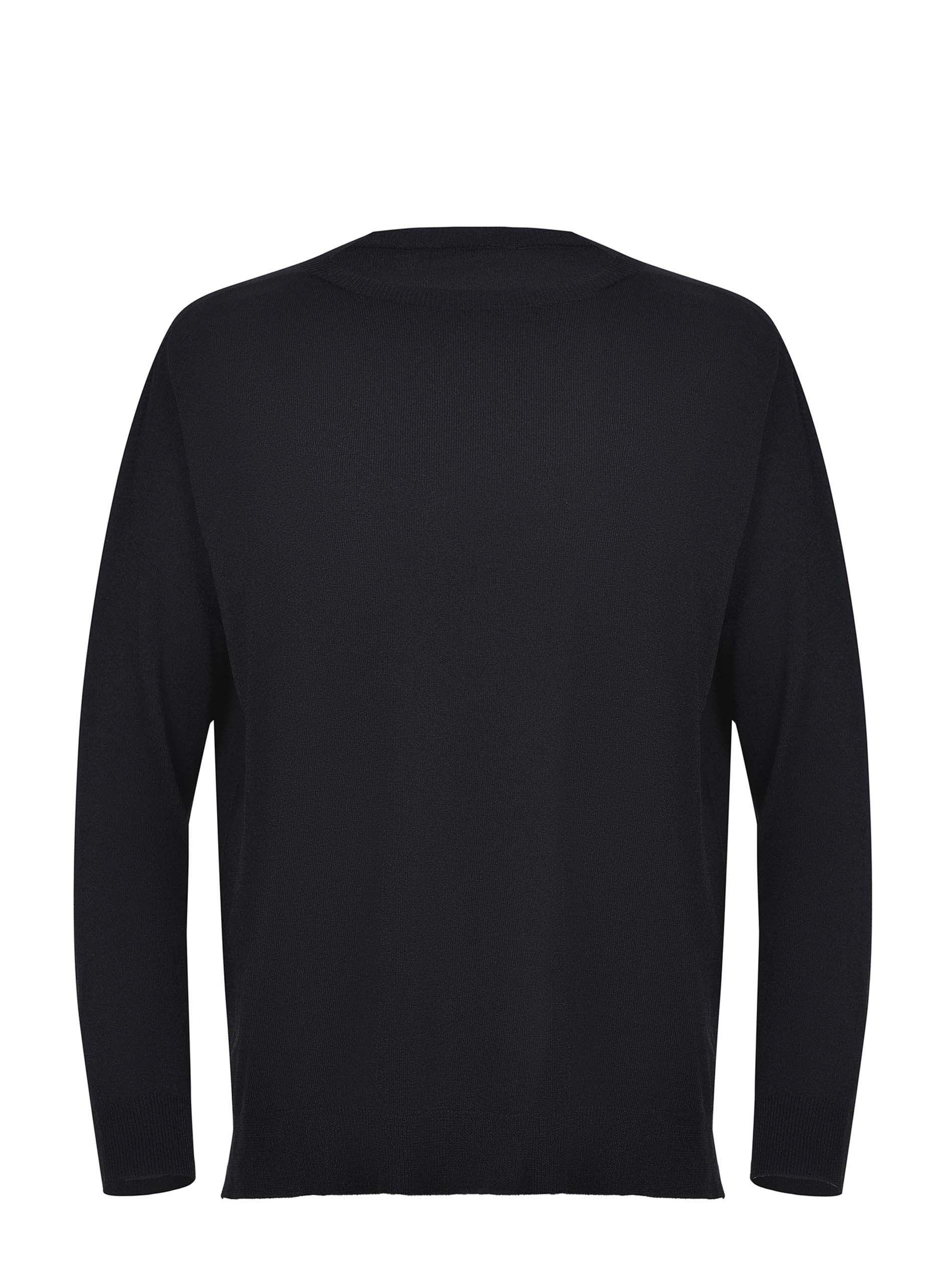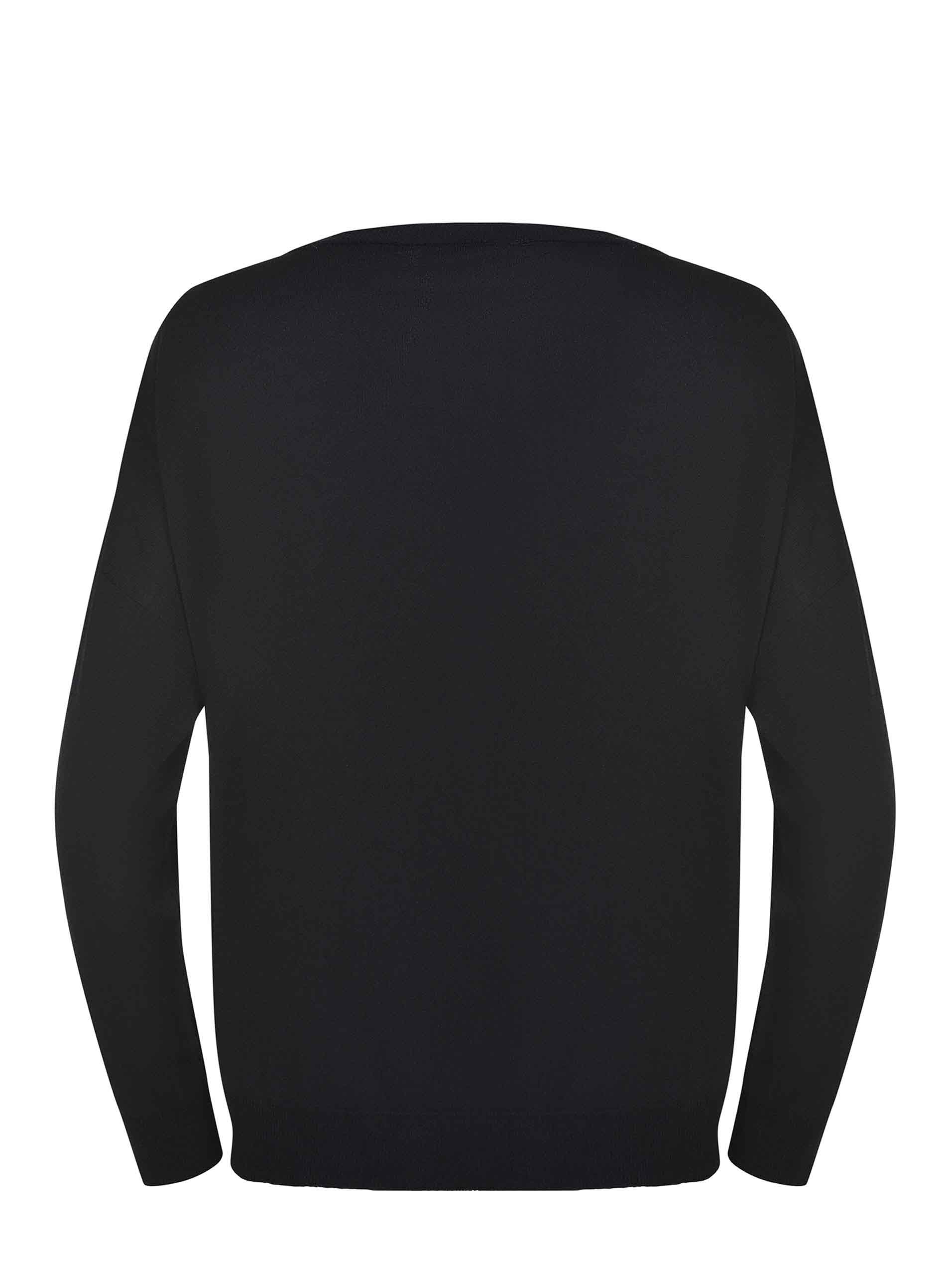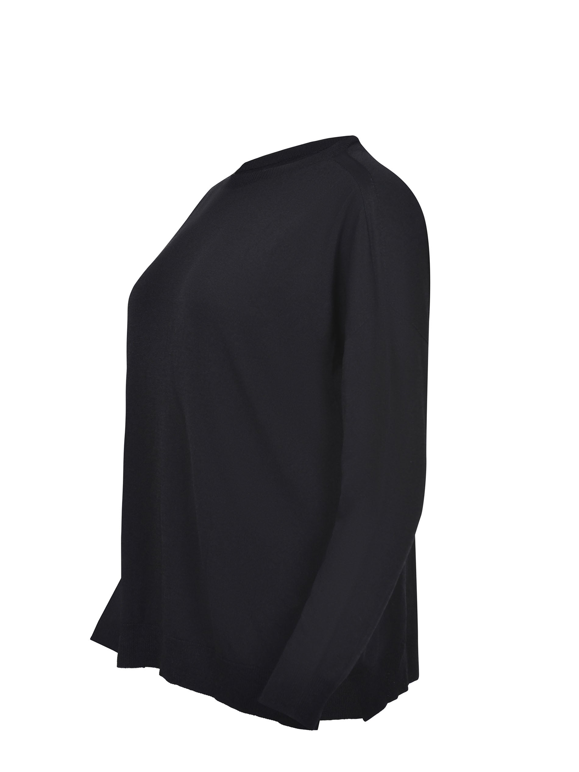 Solotre sweater made of a viscose blend in black. Boat neck with ribbed design. Long sleeves. Ribbed cuffs and bottom. 65% viscose 35% polyamide Made in Italy