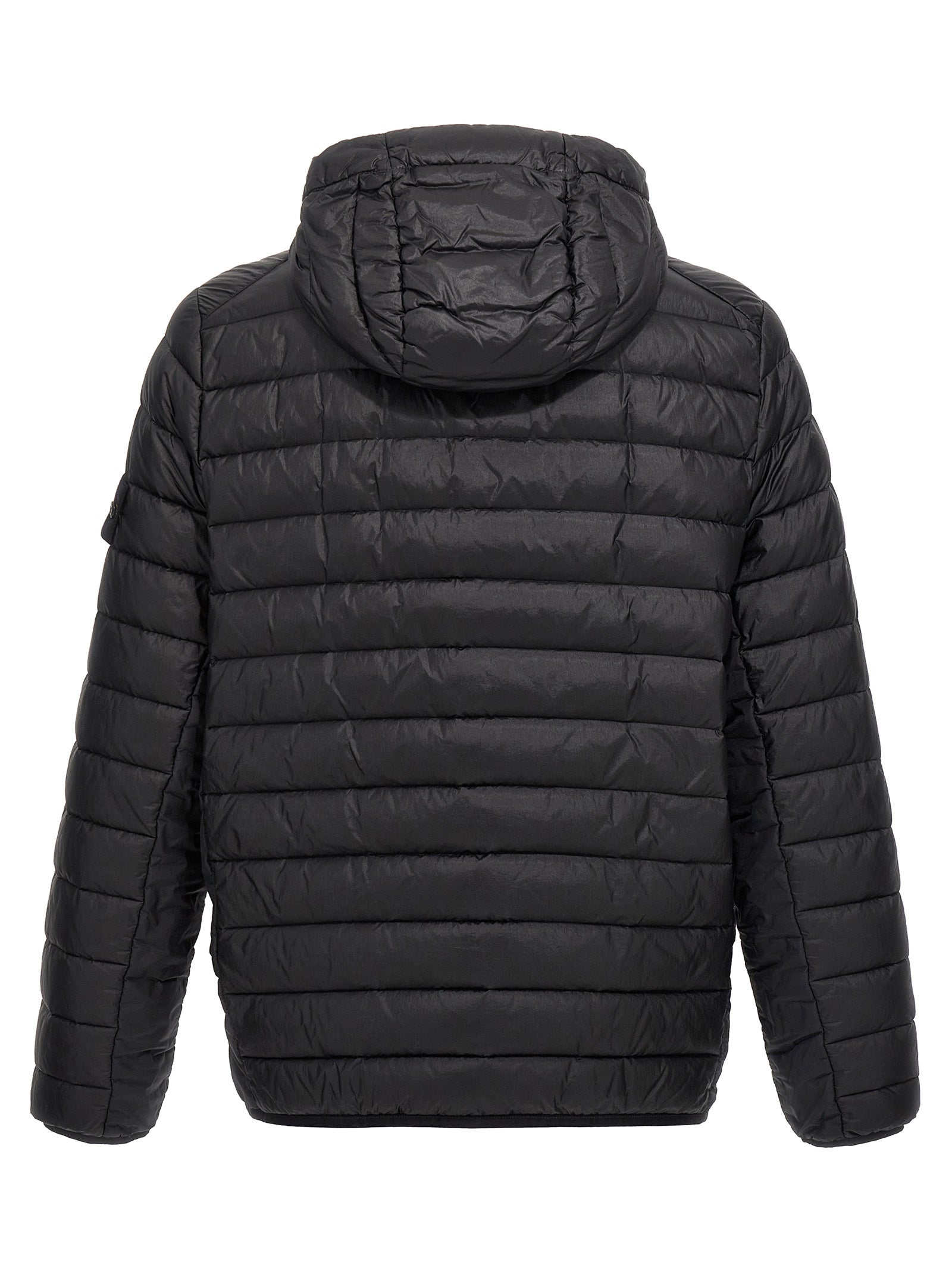 'Loom Woven Chambers R-Nylon Down-TC' quilted nylon down jacket 100 gr. Duck feather padding, hood, zip closure, pockets, logo patch, long sleeves.