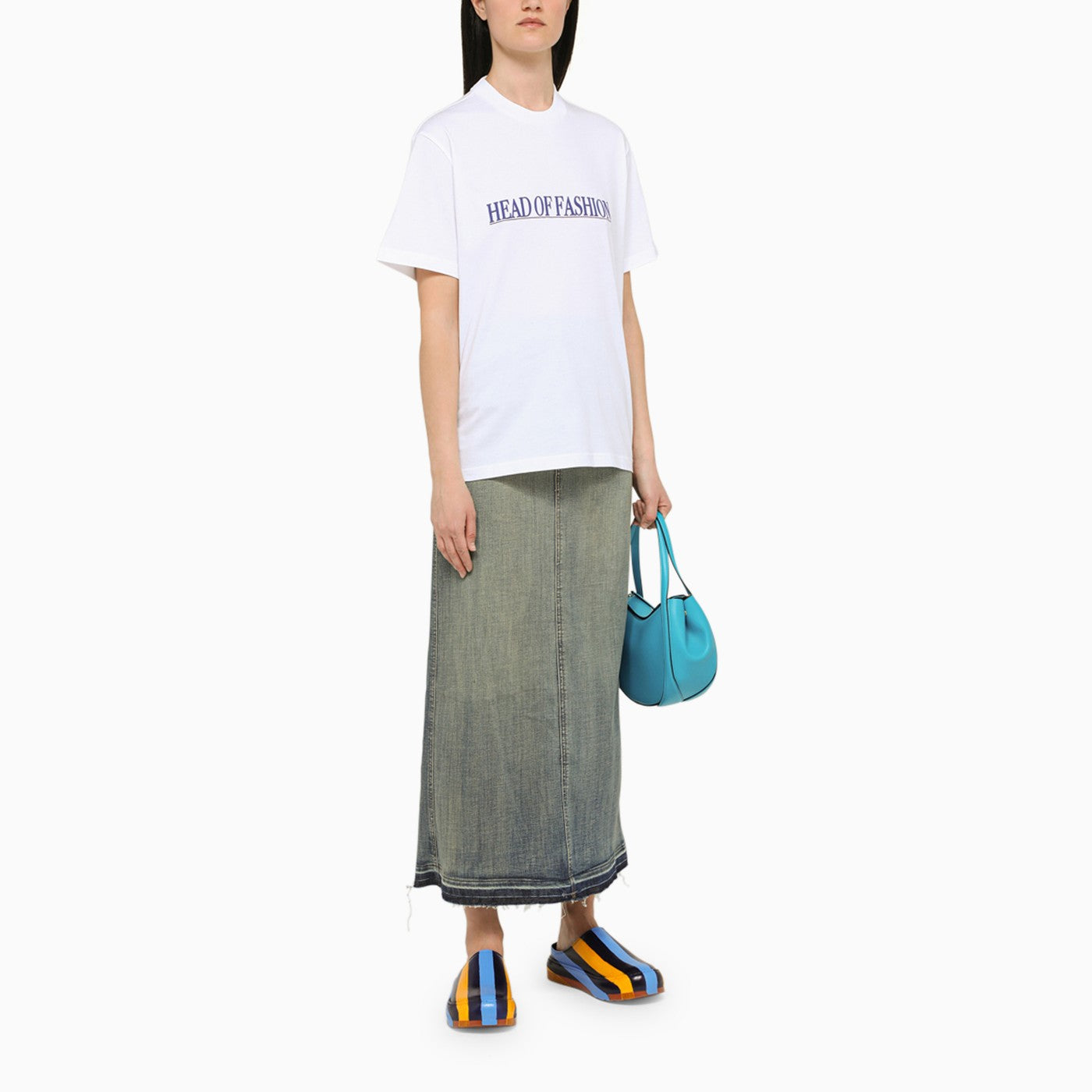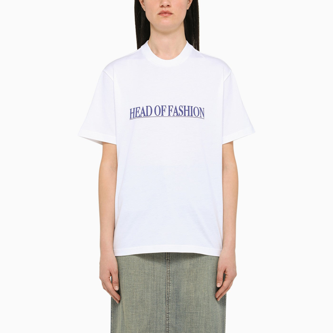 White cotton jersey regular T-shirt from Sunnei featuring a Head Of Buyer, print, short sleeve and straight hem.