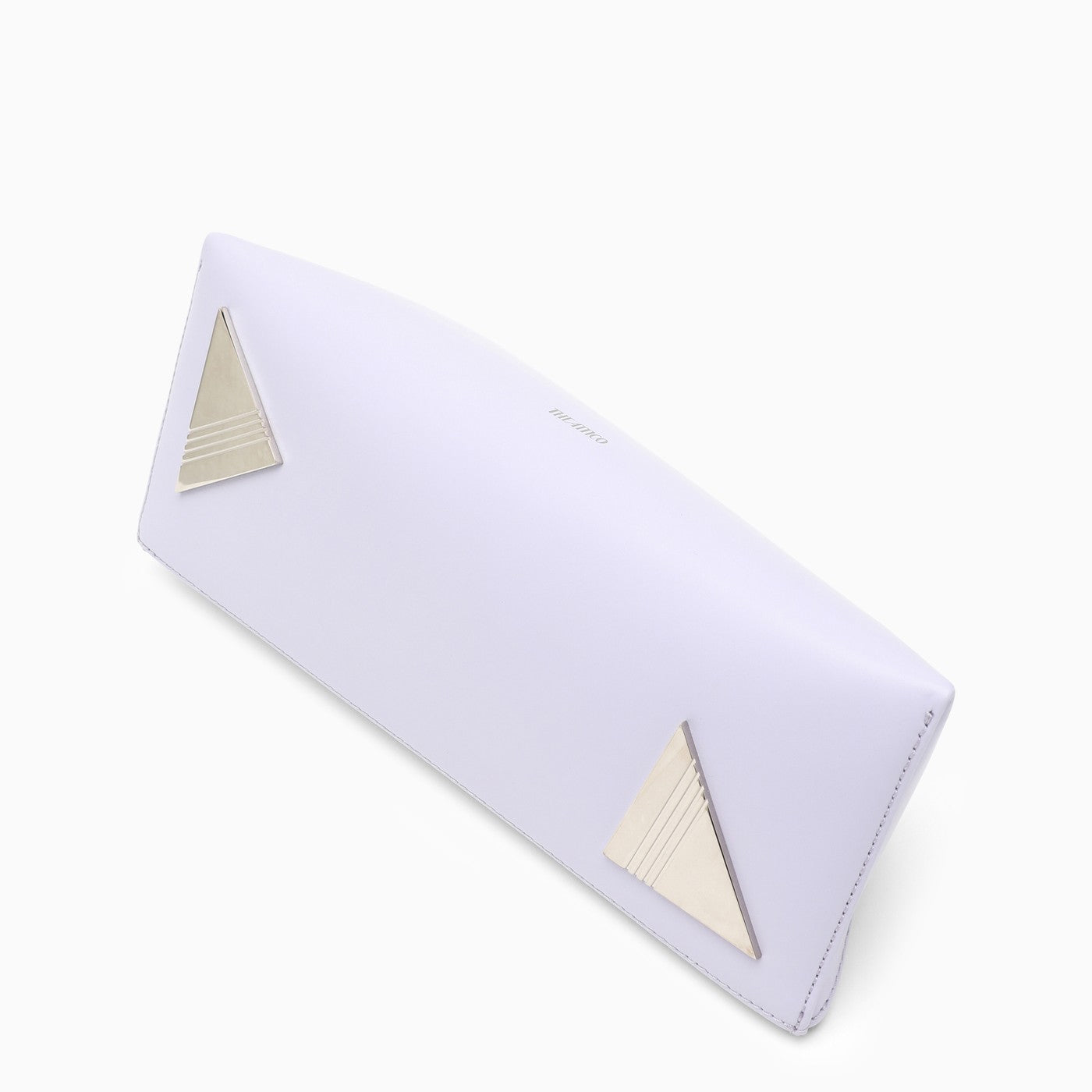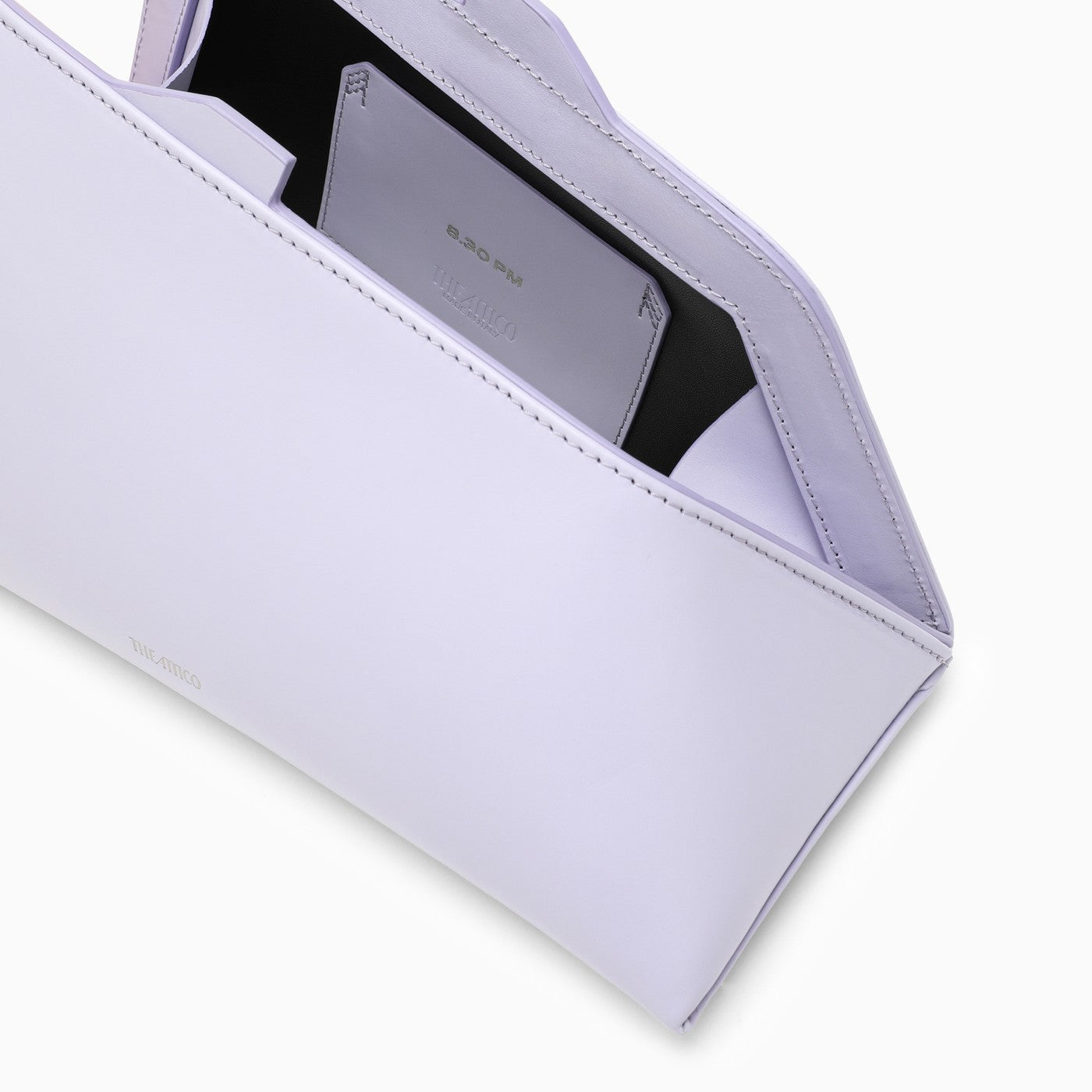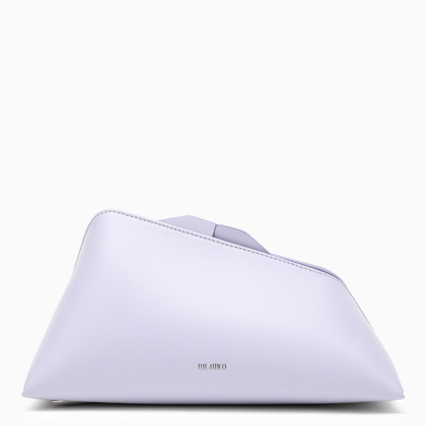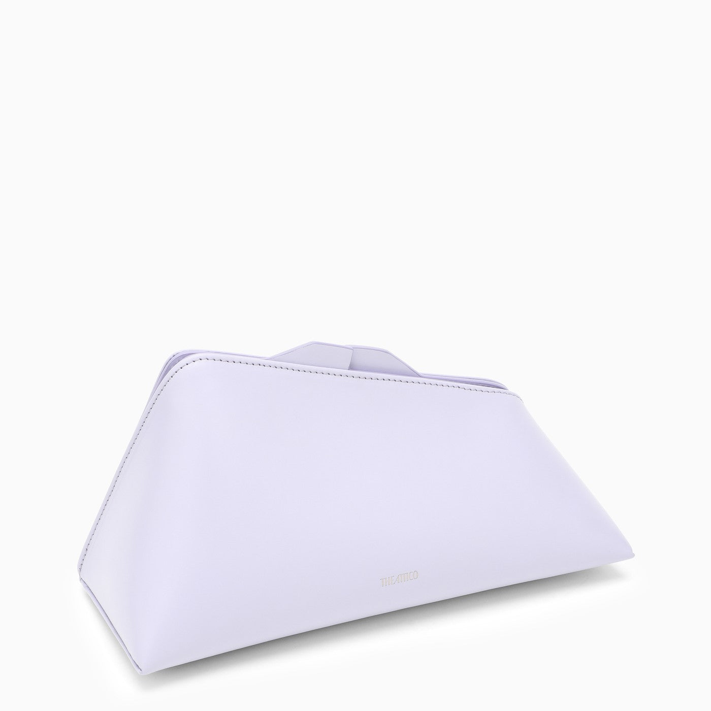 Lilac leather clutch from The Attico featuring magnetic closure, interior flat pocket, metal feet and printed logo on the front.