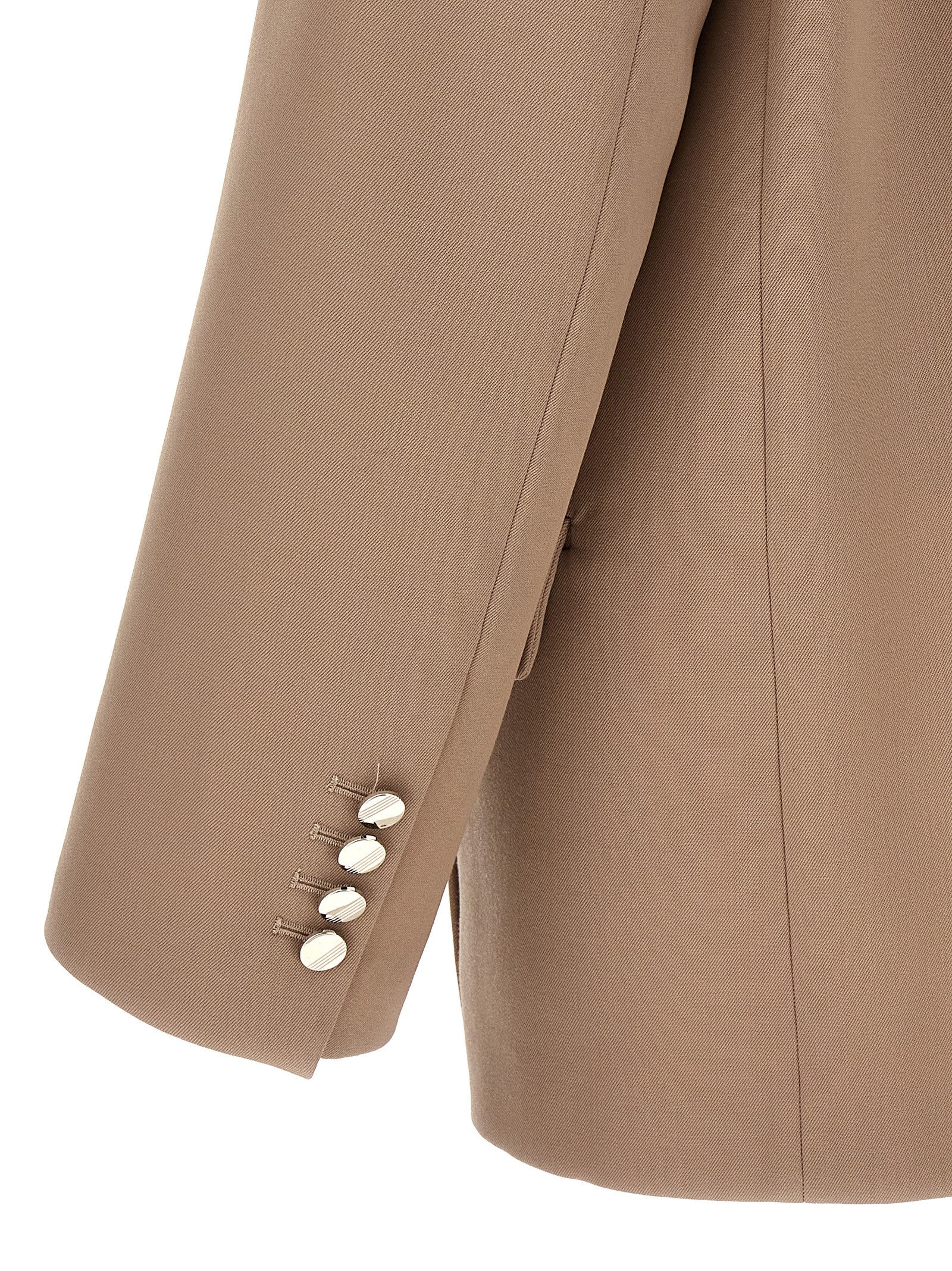 Glen' single-breasted virgin wool blazer with peak lapels and flap pockets.