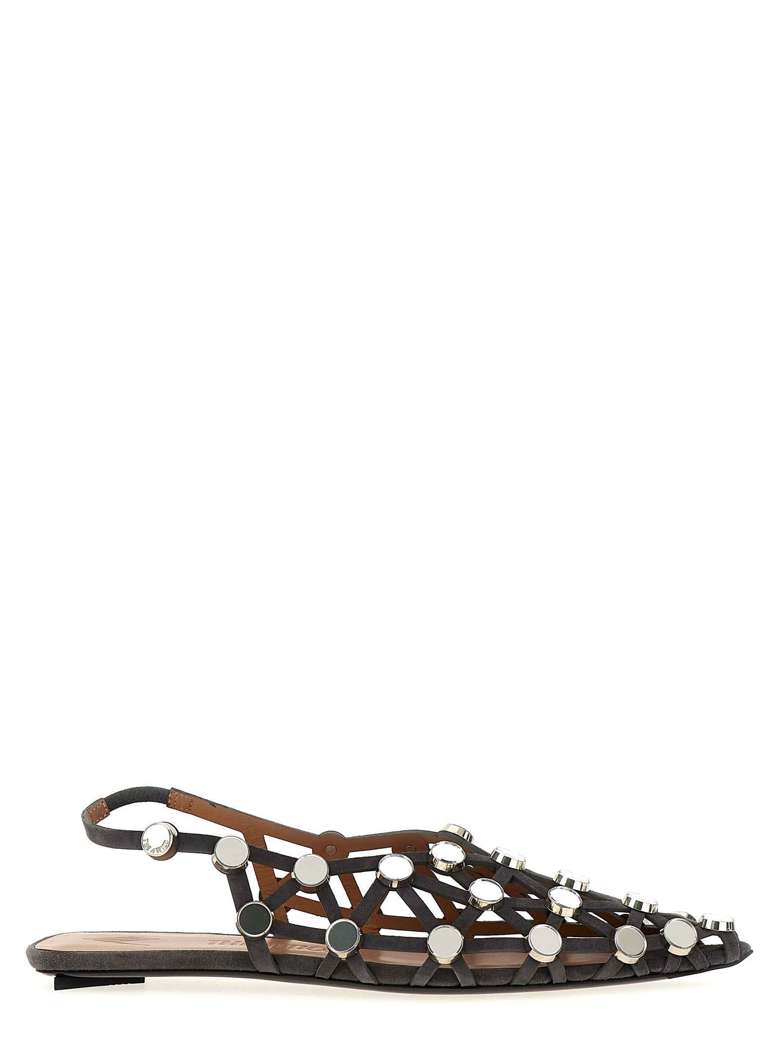 'Grid' suede slingbacks with all-over mirror appliqué, elastic strap, pointed model.