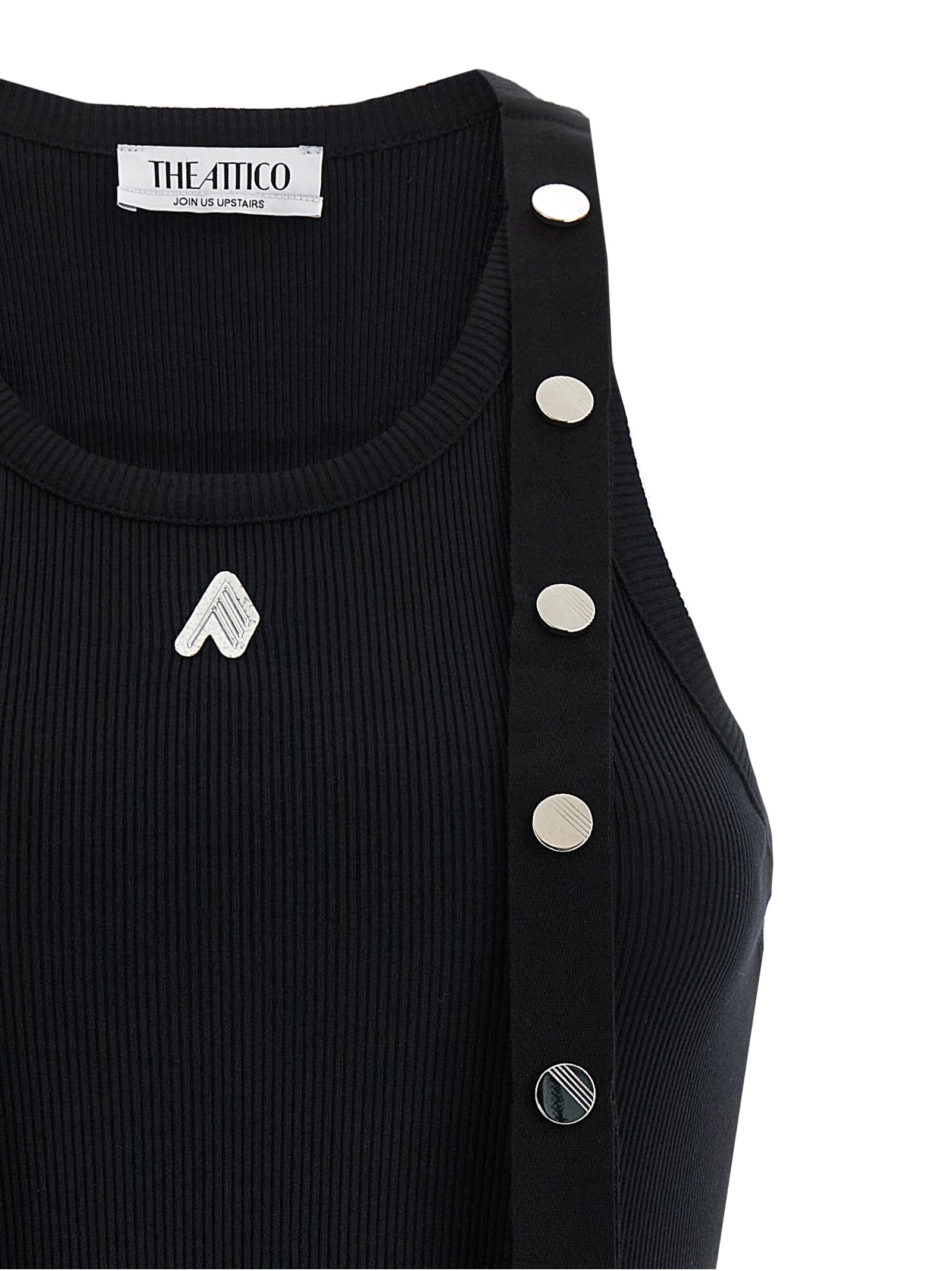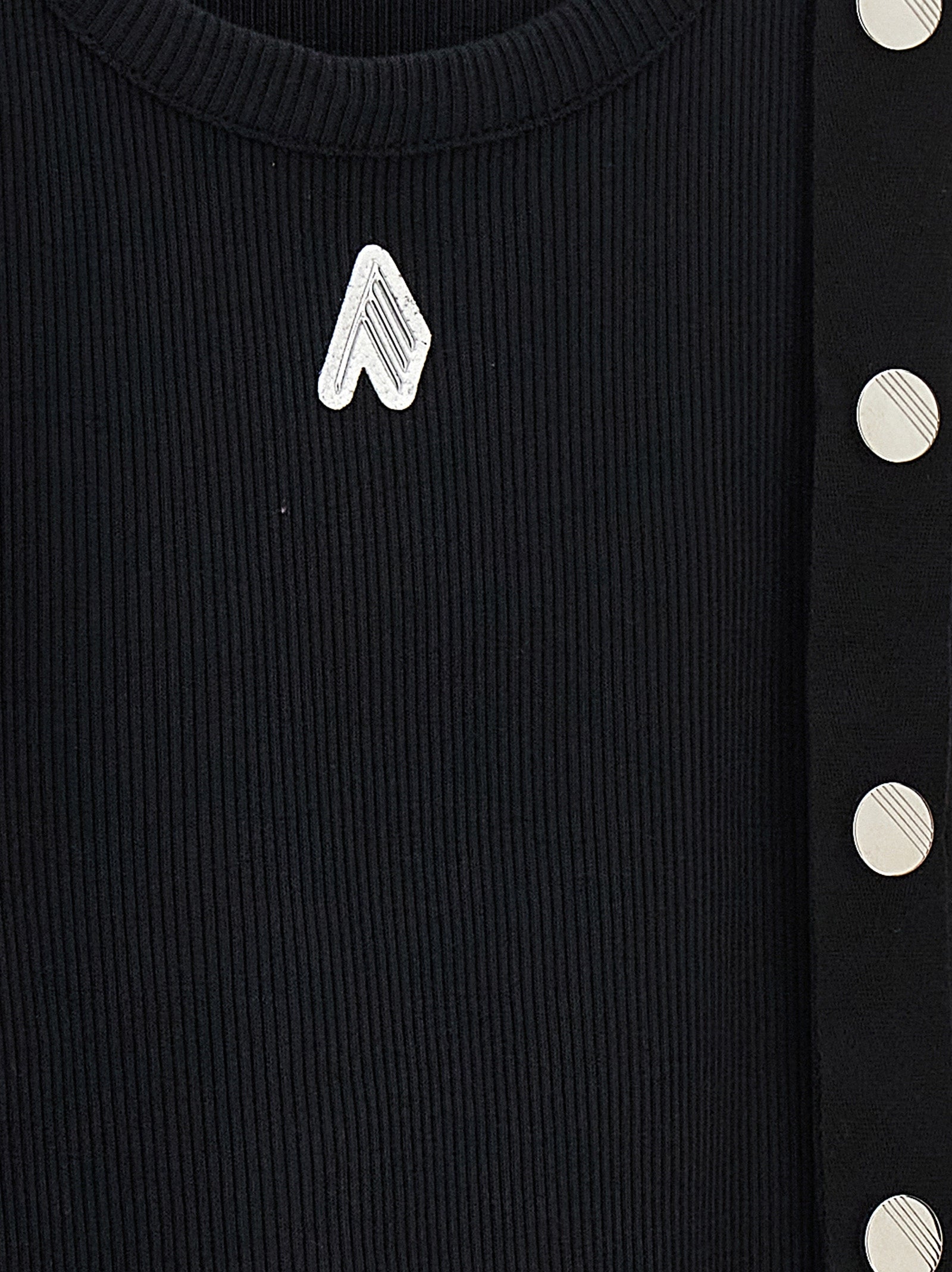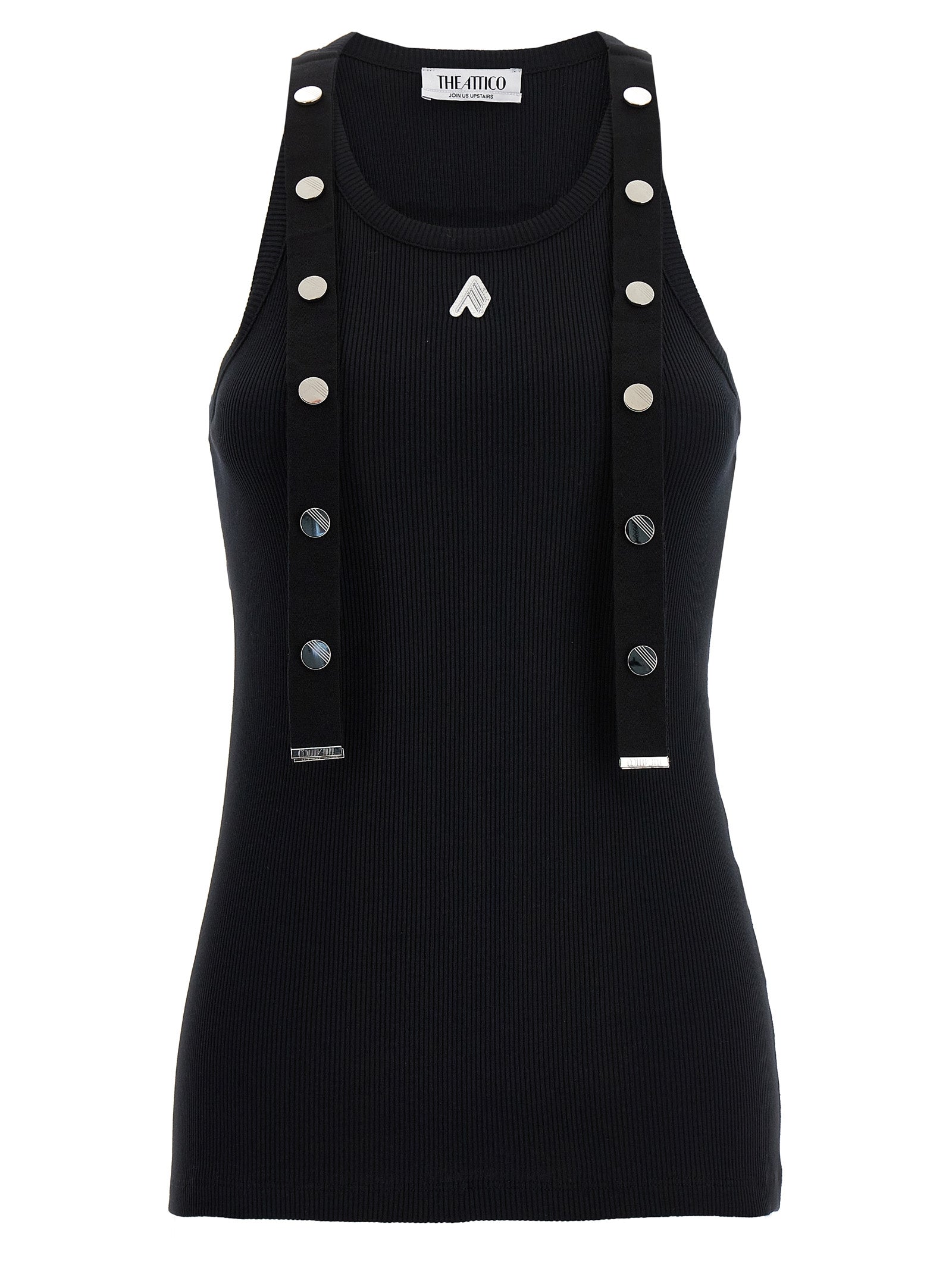 Ribbed cotton top with metal buttons on grosgrain tape.