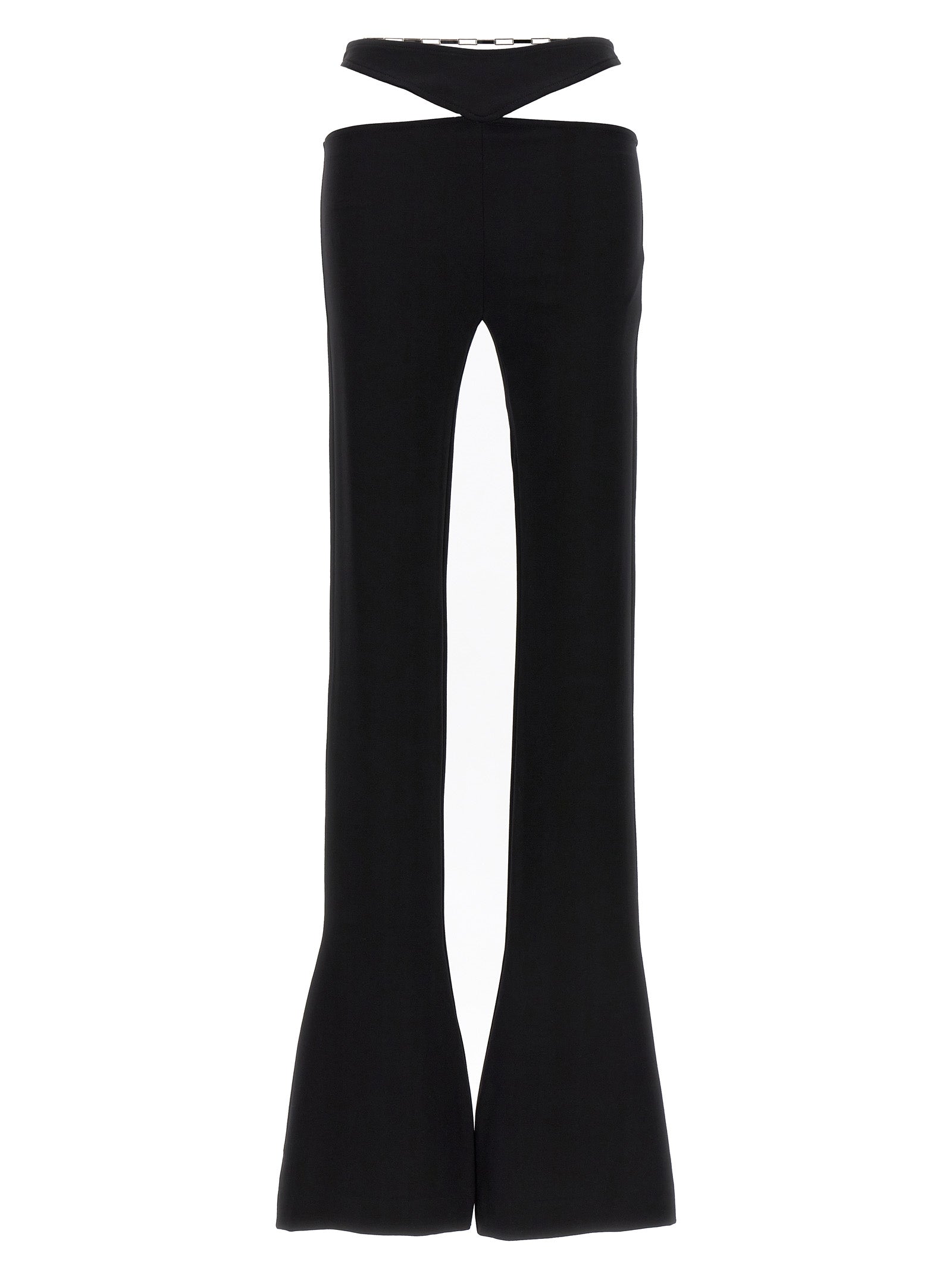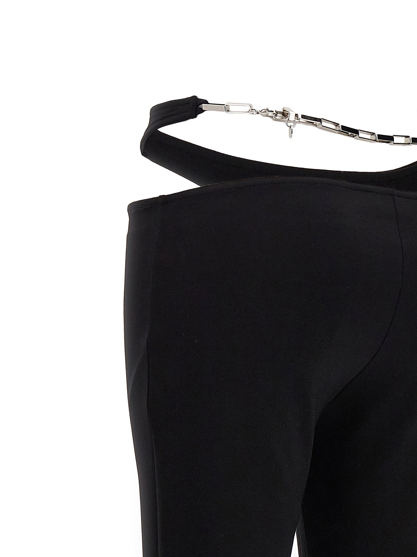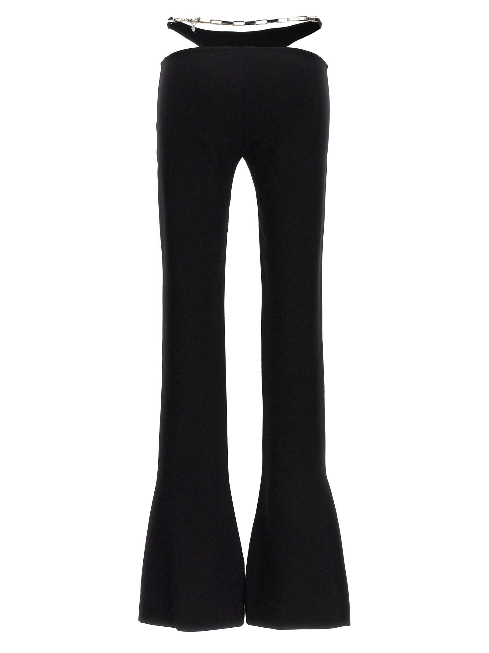 Remi' jersey belted pants with chain detail at the waist and a flared leg.