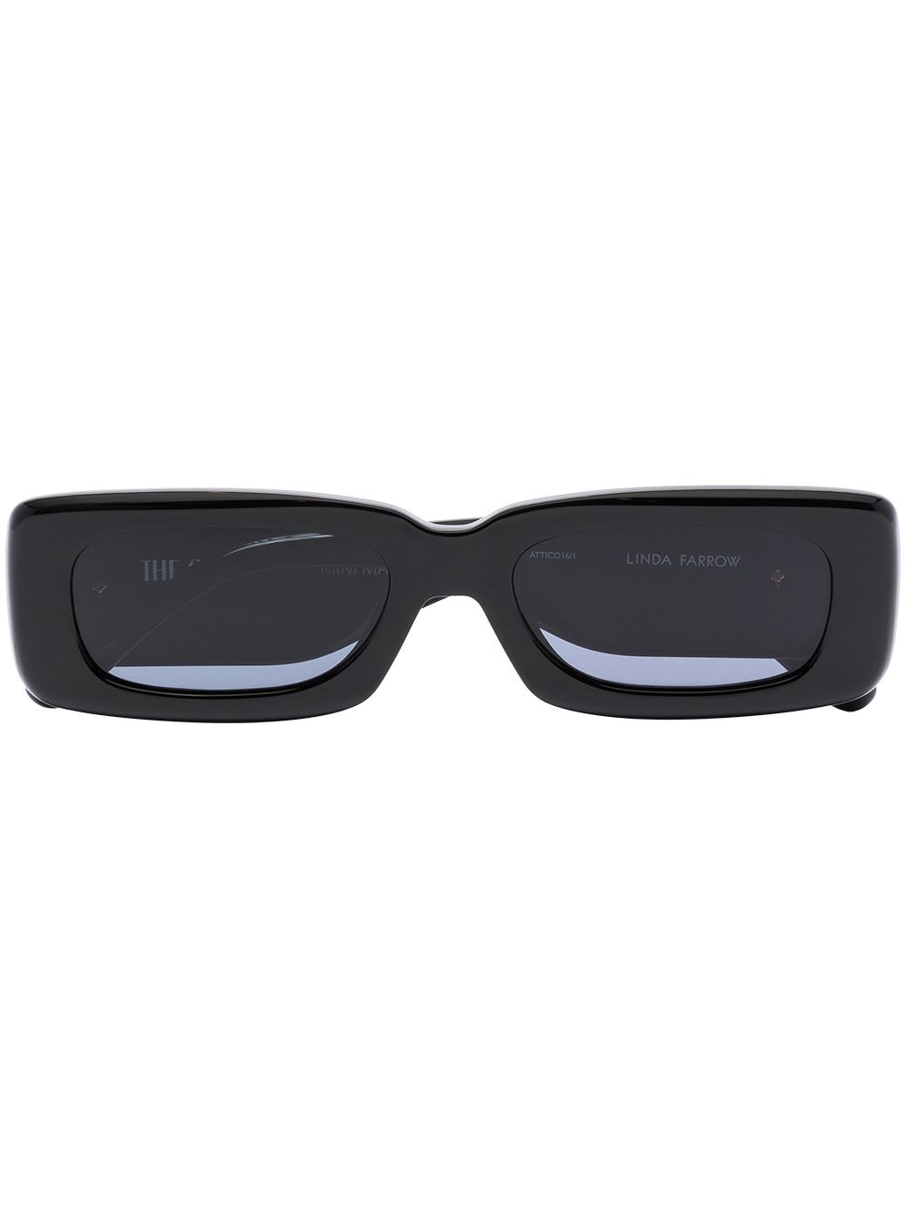 These black Linda Farrow X The Attico Mini Marfa rectangular sunglasses are crafted in Japan. Boasting an acetate frame, they feature tinted lenses, 100% UV protection, sculpted nose pads, wide temples with gold tone branding, and curved tips. Created as part of an exclusive collaboration with The Attico, these Linda Farrow sunglasses are pleasing to the eye in more ways than one.