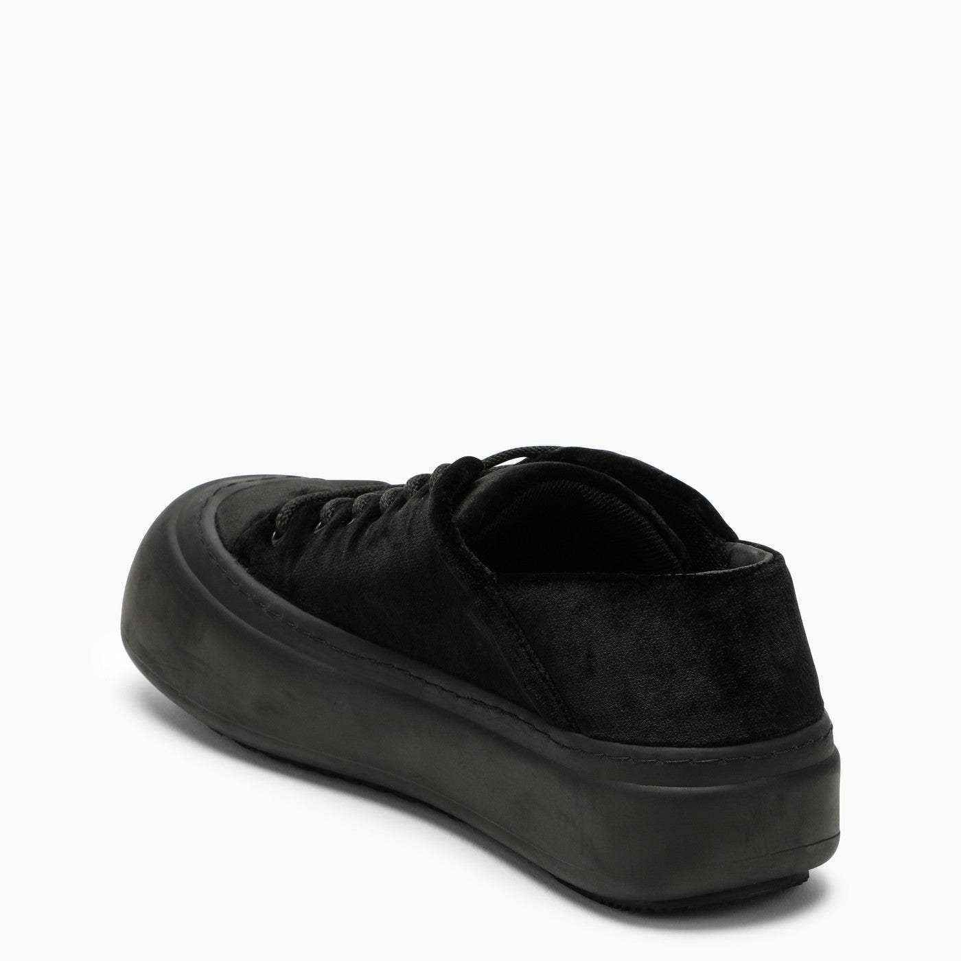 Black velvet low top trainer by YUME YUME, featuring lace-up closure, round toe and rubber sole.