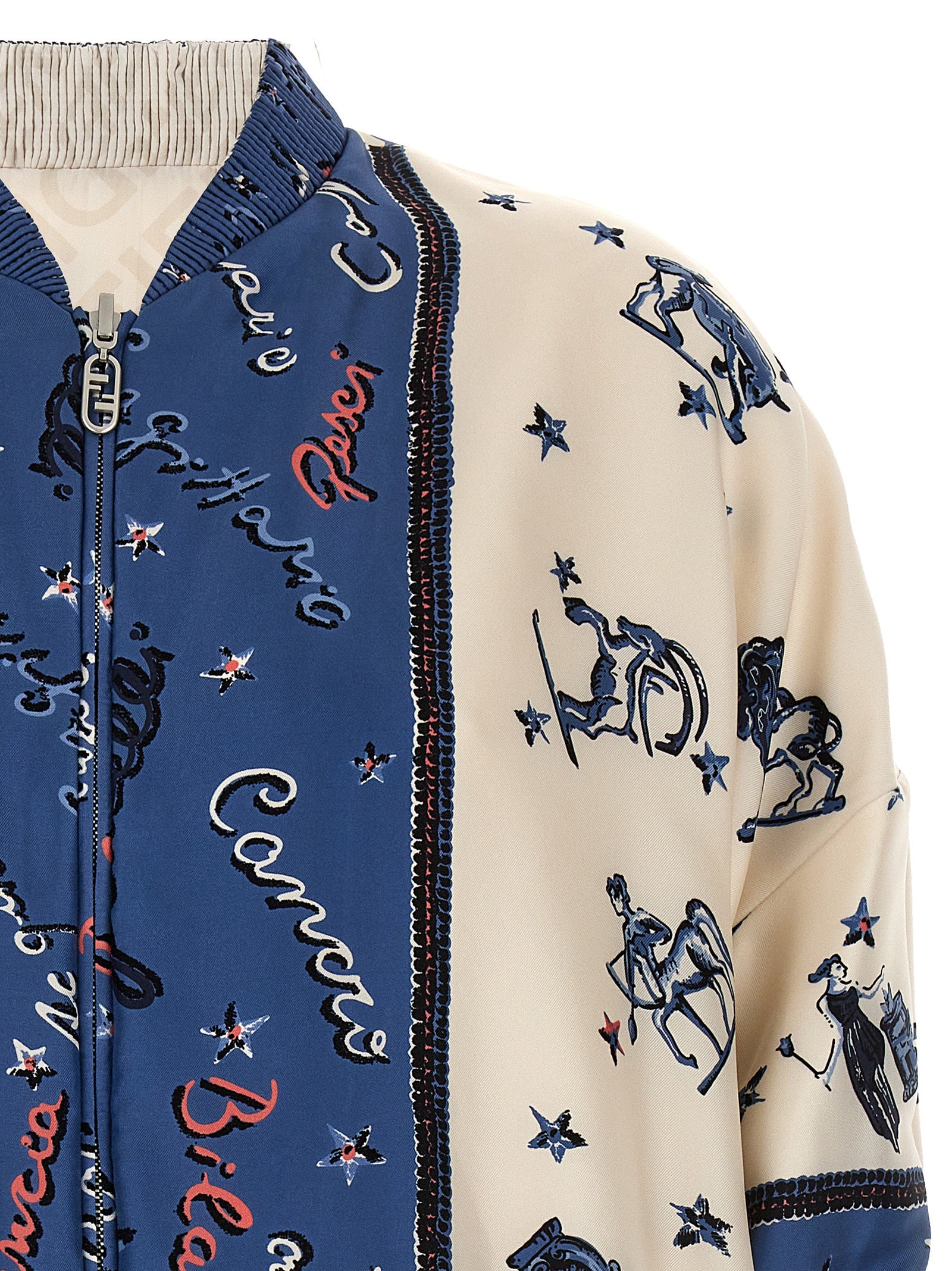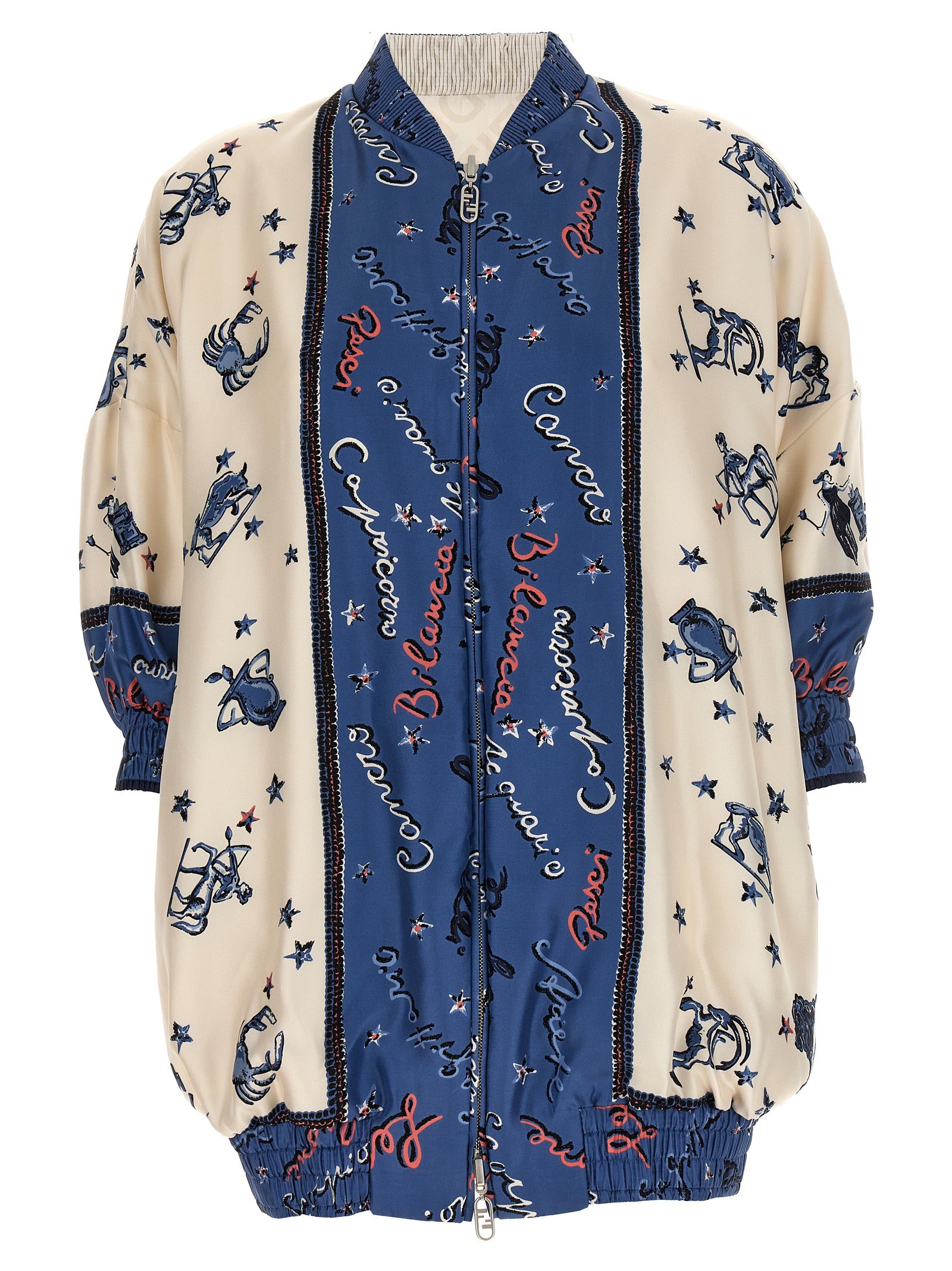 Reversible silk bomber jacket with all-over 'Fendi Astrology' print, zip closure, long sleeves with elastic cuffs.