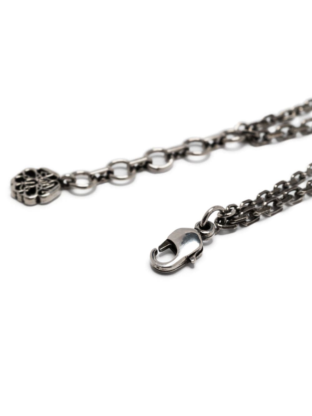 layered skull charm bracelet from Alexander McQueen featuring silver-tone, layered design, chain-link detailing, faux-pearl detailing, skull charm, lobster claw fastening and adjustable fit.