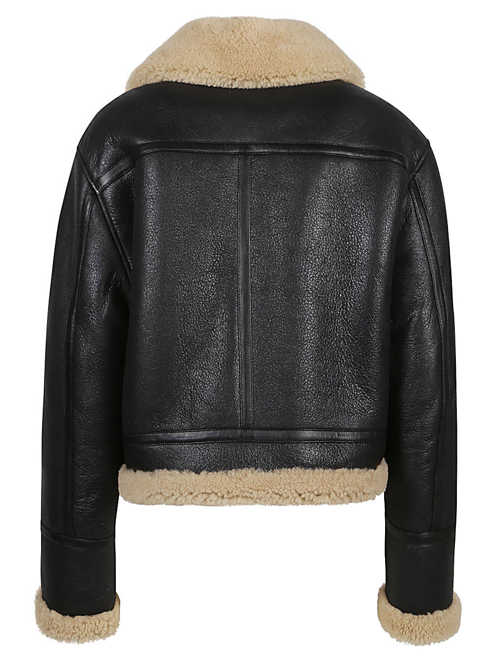 Black mutton, lateral pockets, zip closure, laces on the neck, large neck