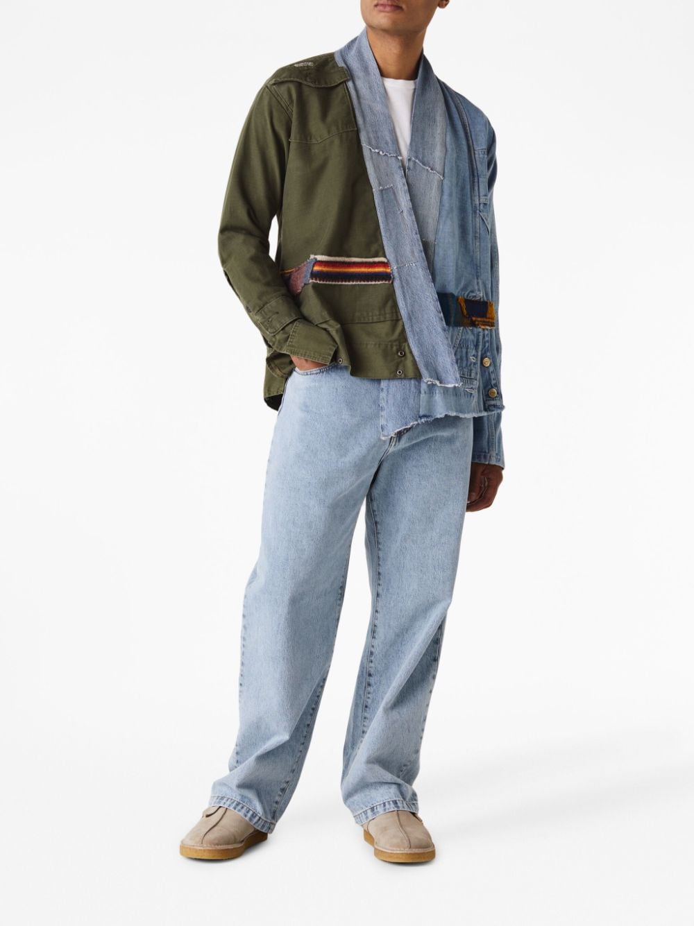asymmetric-design jacket from GREG LAUREN featuring blue, moss green, cotton-wool blend, denim, long sleeves, asymmetric design, chest flap pocket and patchwork design. We've partnered with Good On You — an independent agency that rates how brands perform in relation to their impact on the planet, people and animals, with a multi-criteria rating simplified to a five points scale. In order to be awarded our conscious label, larger brands need to score a minimum of four out of five ('Good'), while smaller brands must score at least three out of five ('It's a start'). This item comes from a brand rated four out of five ('Good') by Good on You. Please note, this is a brand-level rating and does not guarantee that this product is made with conscious materials.. Learn more about what makes a product Conscious on our Conscious Criteria page.