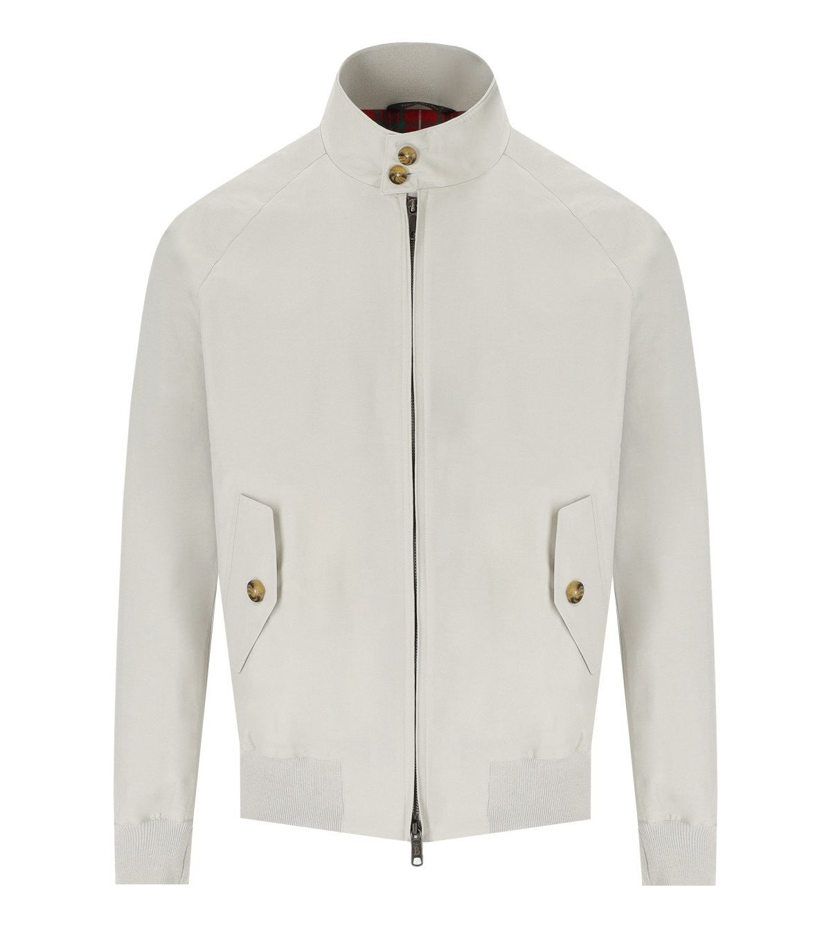 Baracuta G9 bomber jacket made of beige Baracuta Clotch cotton blend. It has been treated with a water-repellent treatment, and features a red tartan patterned lining, ribbed high collar with double button and raglan sleeves. It has front flap pockets, ribbed stretch fabric cuffs and hem. It closes with a double slider zip. Oversize fit. Composition: 58% polyester, 42% cotton. Lining: 100% polyester. Lining 2: 55% polyester, 45% viscose.