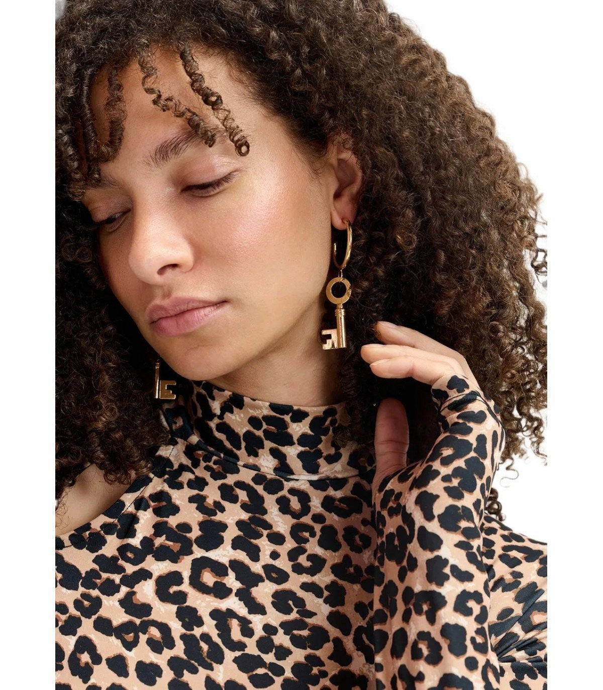 Gentry earrings by Essentiel Antwerp made of zinc metal, mixed brass, in gold color. Characterized by a refined key-shaped pendant. Closure with needle and butterfly. Size, 3 cm. Composition of the outer shell: 50% zinc alloy, 40% brass, 10% stainless steel.