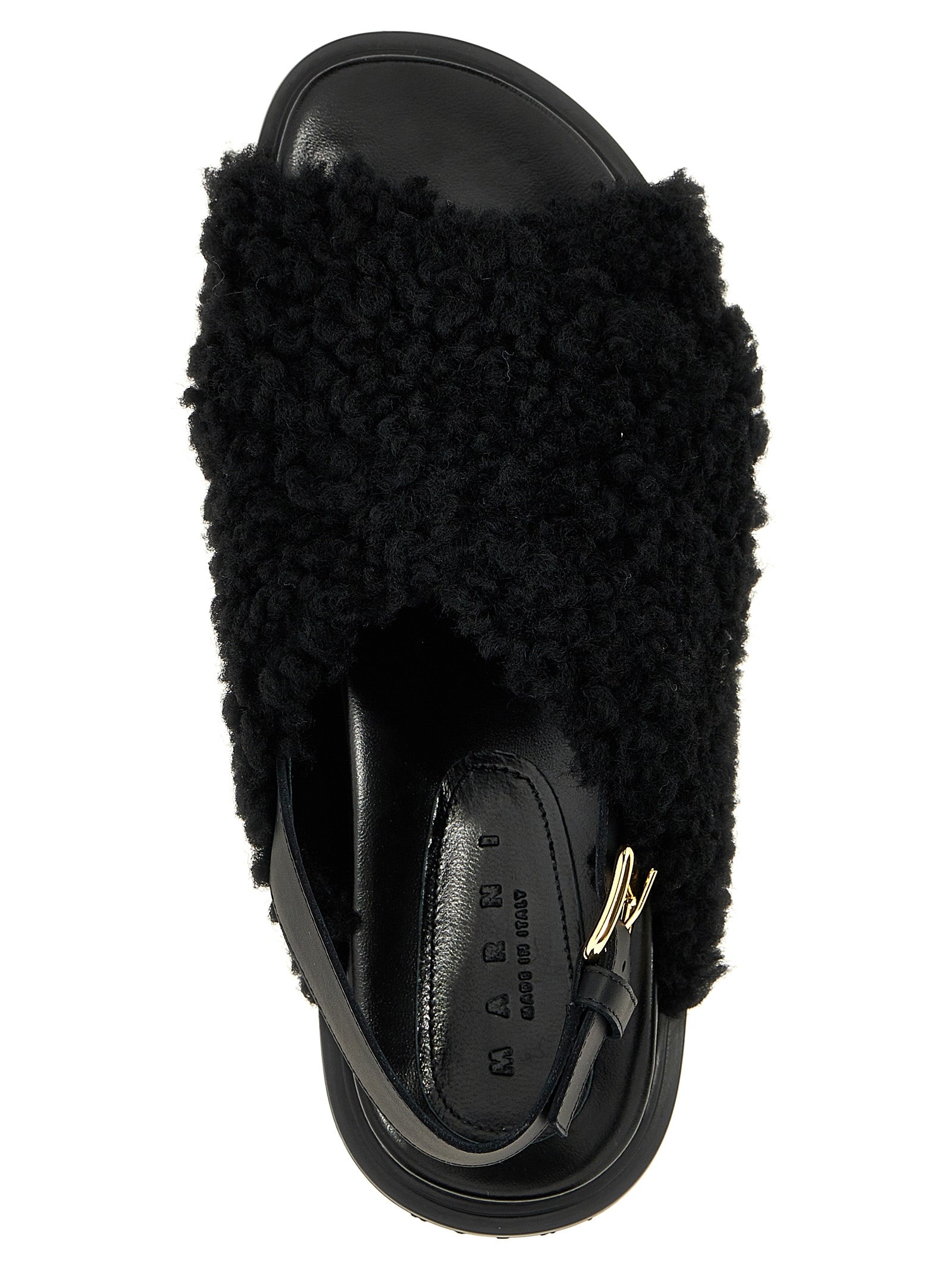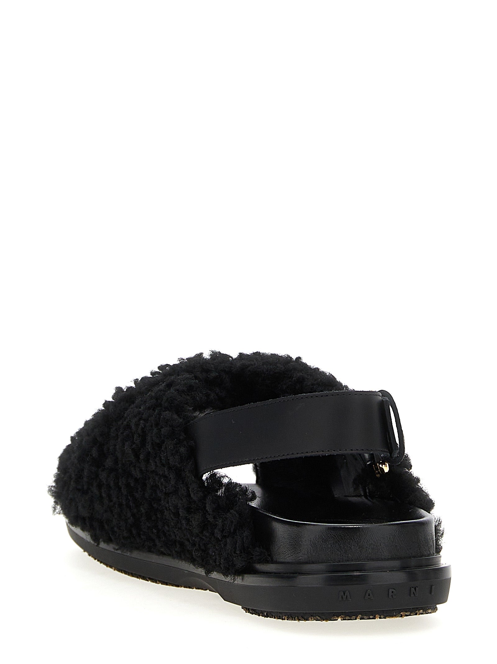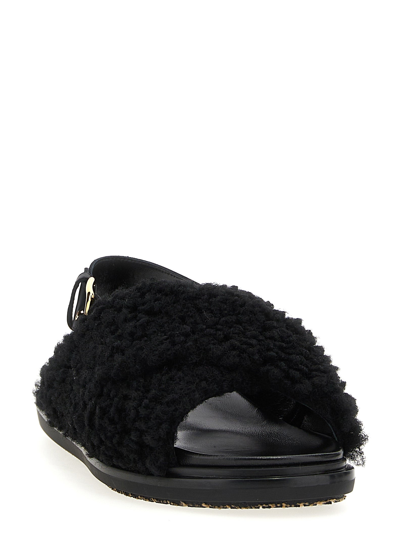 'Fusbett' leather sandals with shearling covered bands, leather insole, adjustable strap.