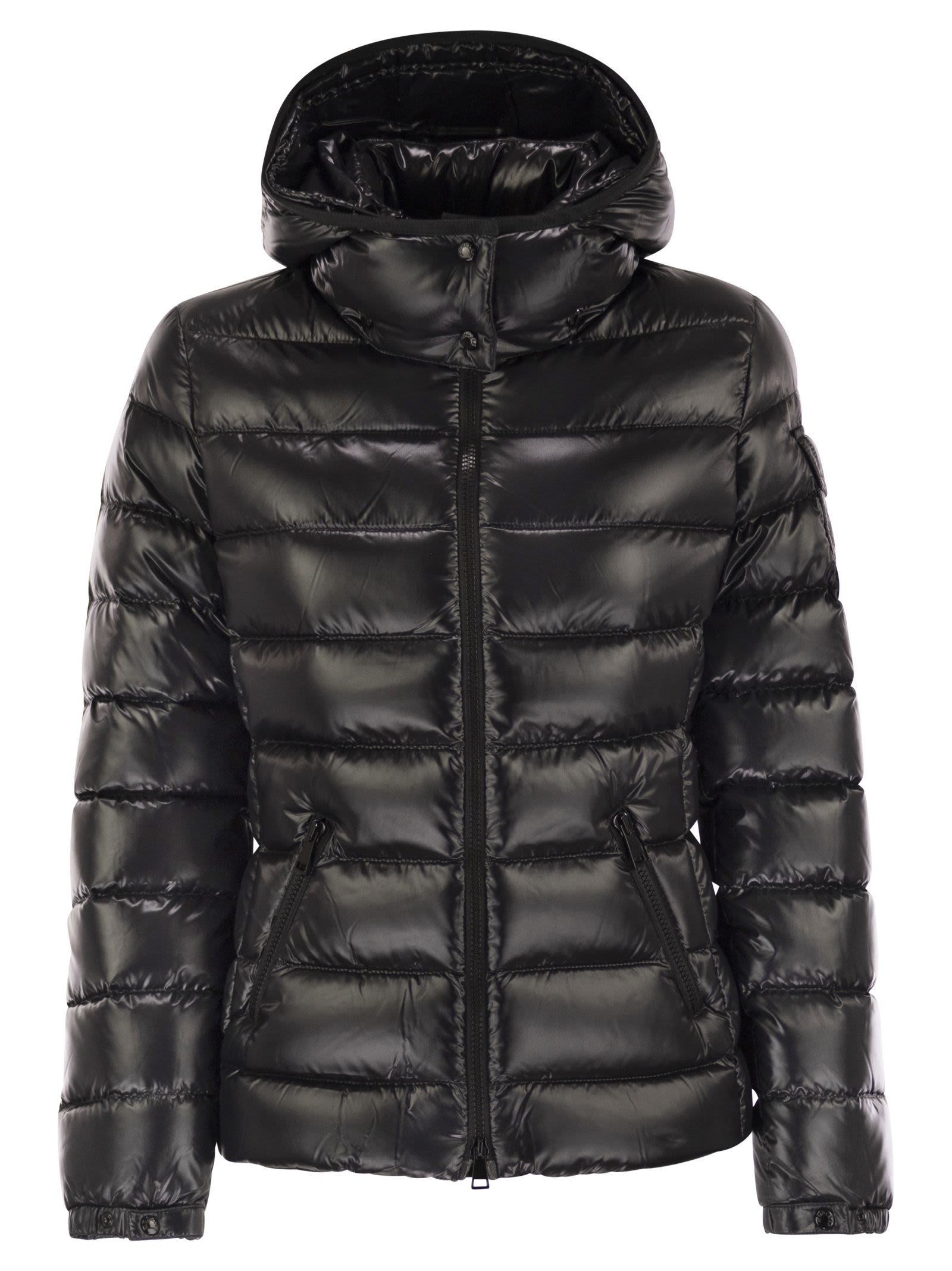 An iconic piece with Moncler DNA, the Bady women's down jacket is made from shiny lacquered nylon with the brand's iconic boudin quilting. A timeless piece designed to transcend trends and seasons, this short down jacket features a bold silhouette, a removable hood and an adjustable hem. A classic patch pocket, an icon of the brand, embellishes the sleeve of the jacket. - Made from lacquered nylon - Lacquered nylon lining - Padded design - Removable hood with press studs and adjustable elastic drawstring - Patch pocket with flap on the sleeve - Zip closure - Zip pockets - Adjustable elasticated cuffs - Slim fit DESIGNER ID: K20931A5240068950 999