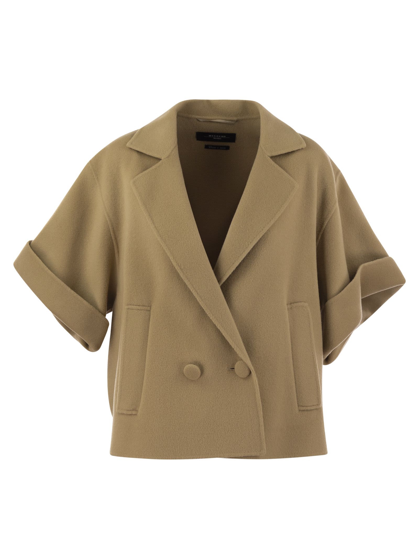 Coat with double-breasted closure and front buttons. Made of virgin wool, it offers warmth and softness. The model features a wide neckline with lapels and short sleeves. The garment is completed by side pockets with maxi welt. - Button fastening - Double breasted - Wide lapels DESIGNER ID: 2425086011600 065