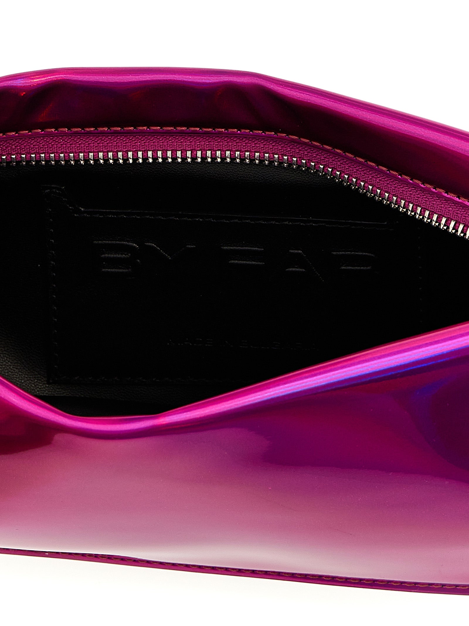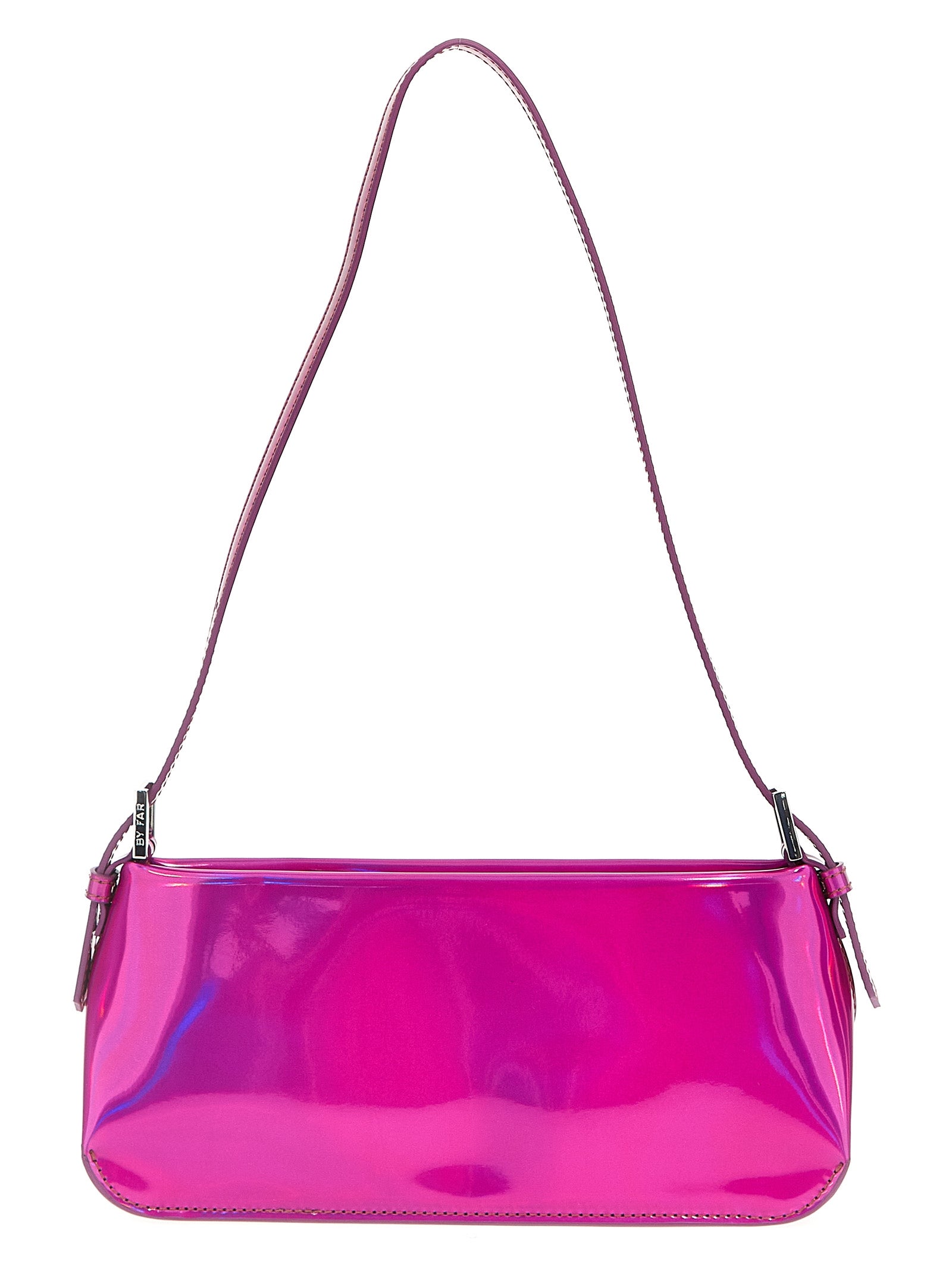 'Dulce' shoulder bag in iridescent material, adjustable shoulder strap, and zip closure. JULIAN SUSTAINABLE
