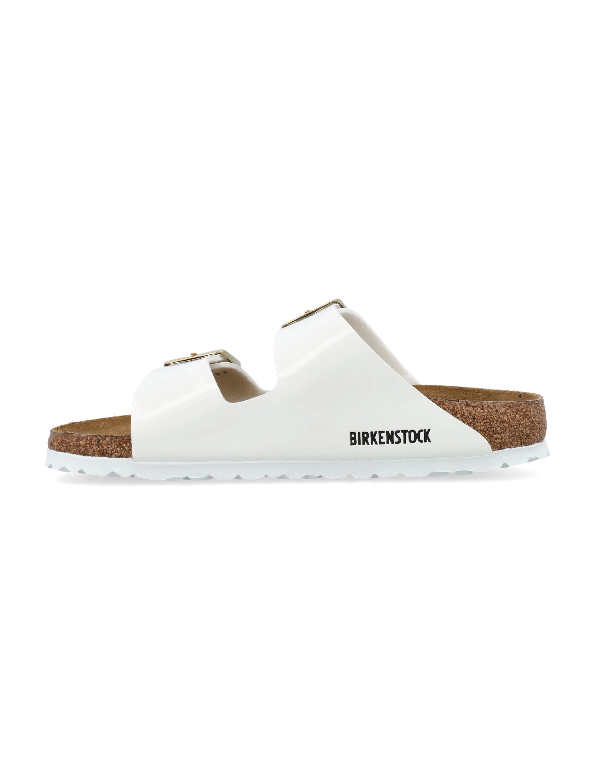 Leather Arizona Birko-Flor patent sandals by Birkenstock.