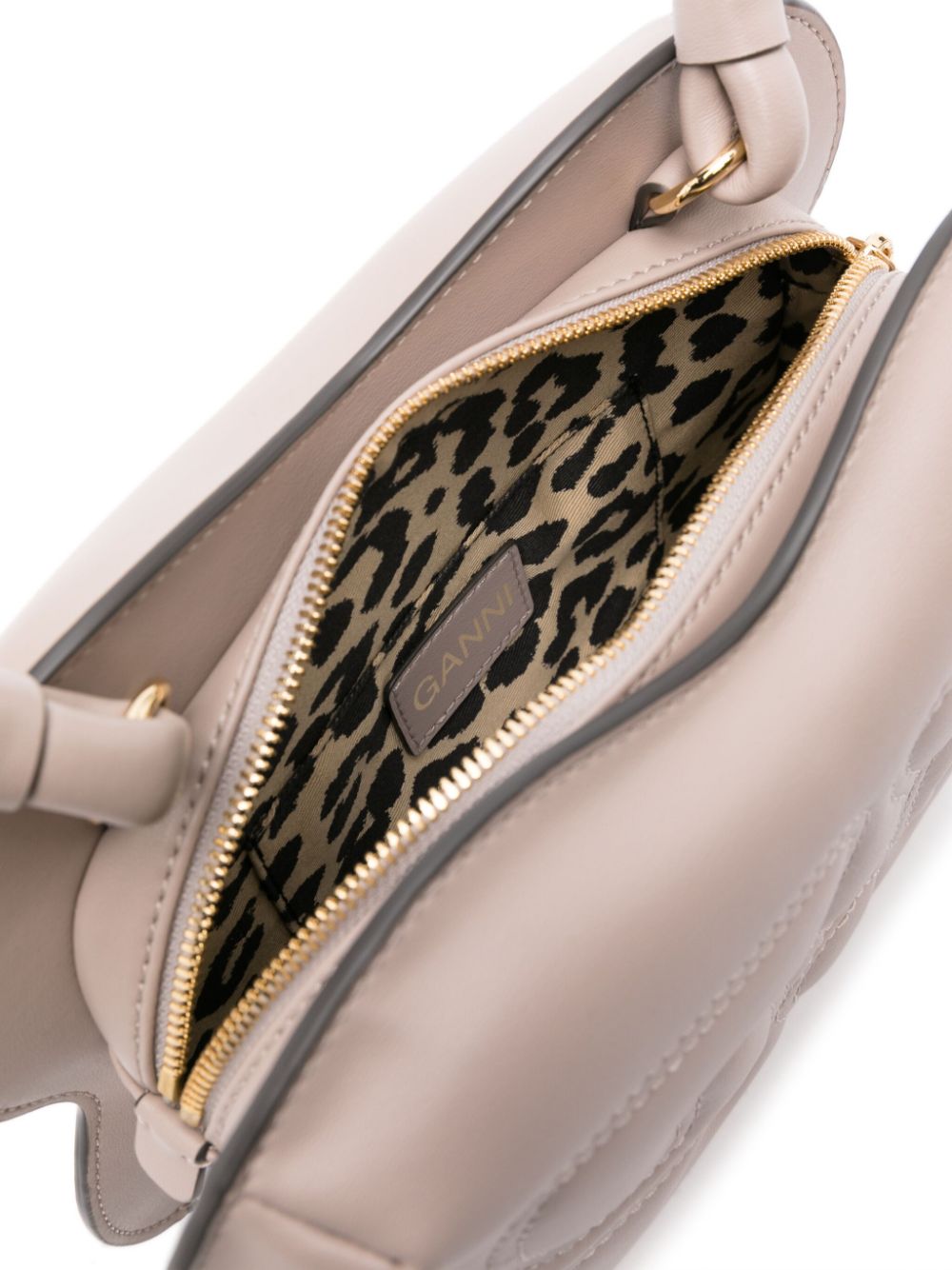 taupe faux leather smooth grain embossed logo to the front debossed logo to the rear top zip fastening single shoulder strap main compartment internal slip pocket internal logo patch full lining gold-tone hardware This piece comes complete with a protective dust bag. This item is made from at least 50% recycled or upcycled materials. For recycled synthetic clothing products, we highly recommend using a microfibre-catching washing bag to ensure that no microplastics that can pollute water are released in the process. We've partnered with Good On You — an independent agency that rates how brands perform in relation to their impact on the planet, people and animals, with a multi-criteria rating simplified to a five points scale. In order to be awarded our conscious label, larger brands need to score a minimum of four out of five ('Good'), while smaller brands must score at least three out of five ('It's A Start'). This item comes from a brand rated three out of five ('It's A Start') by G