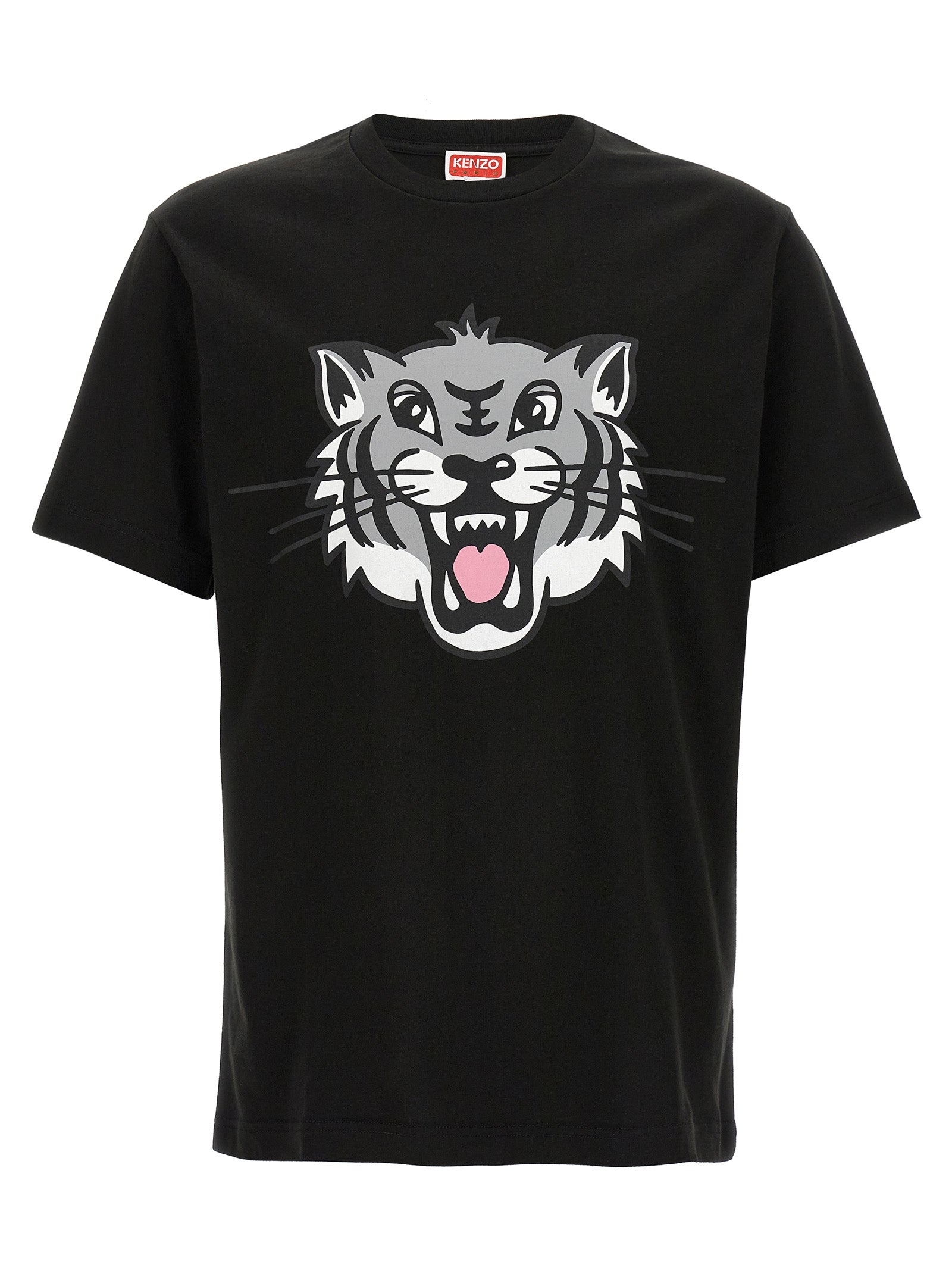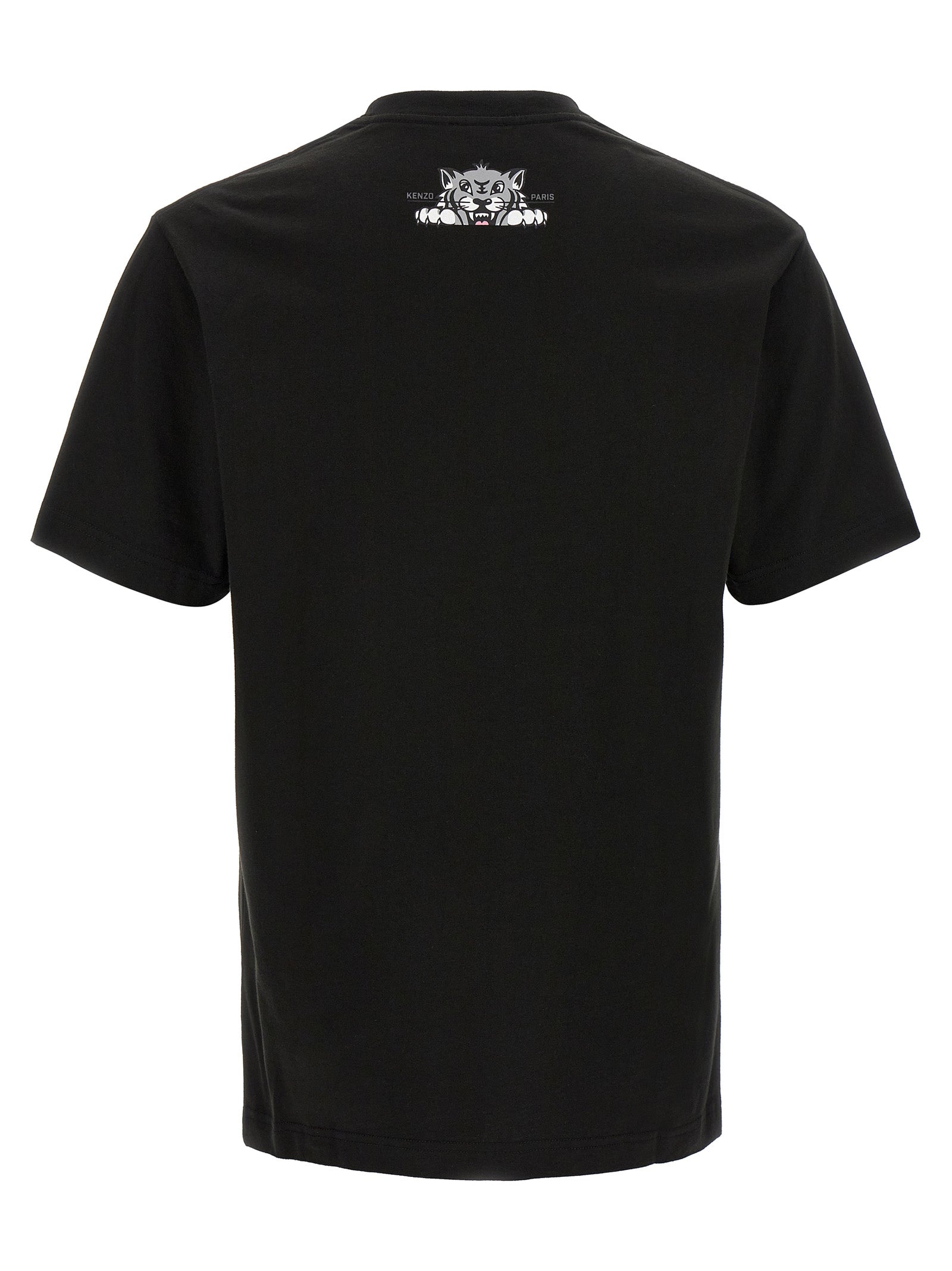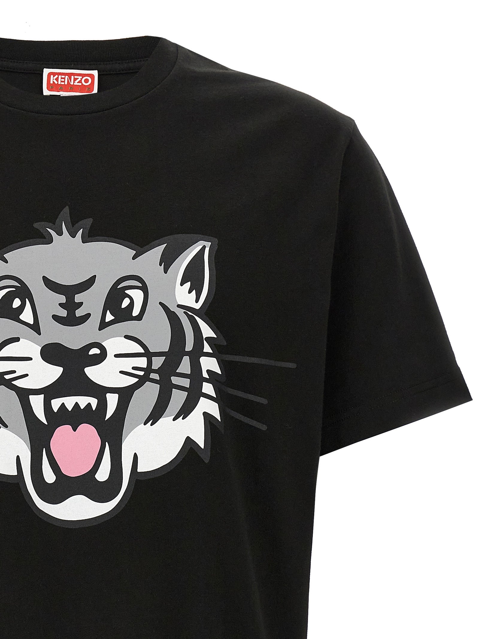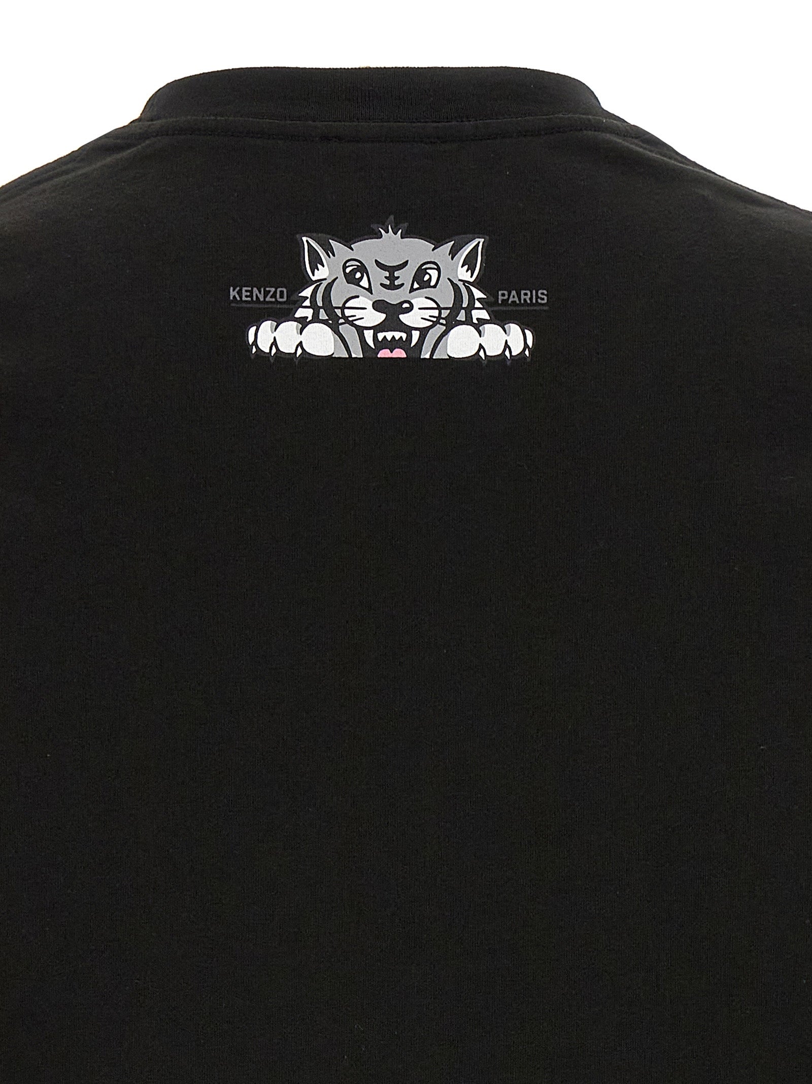 Cotton 'Happy Tiger' T-shirt, crew neck, front and back print, short sleeve.sleeves.