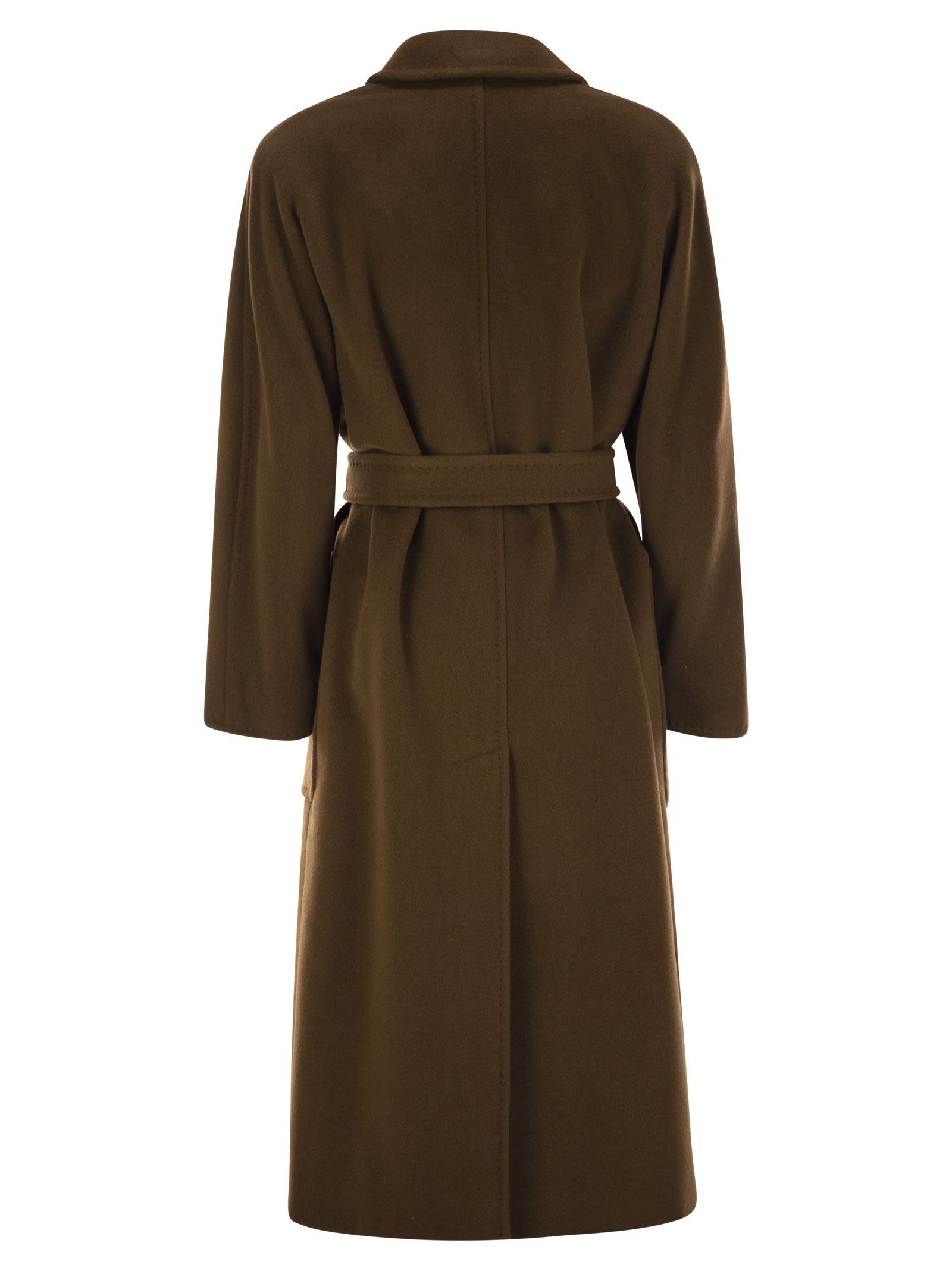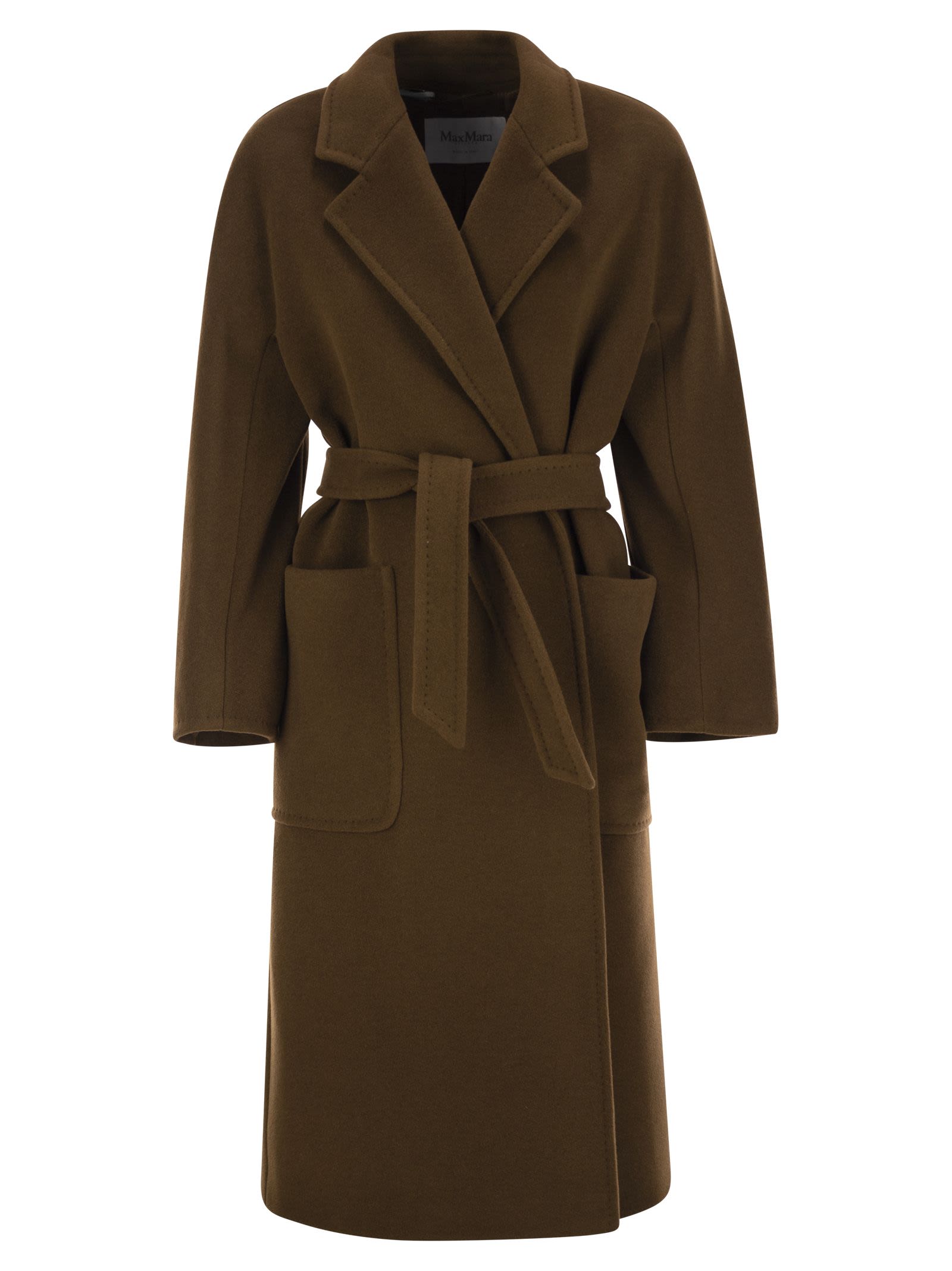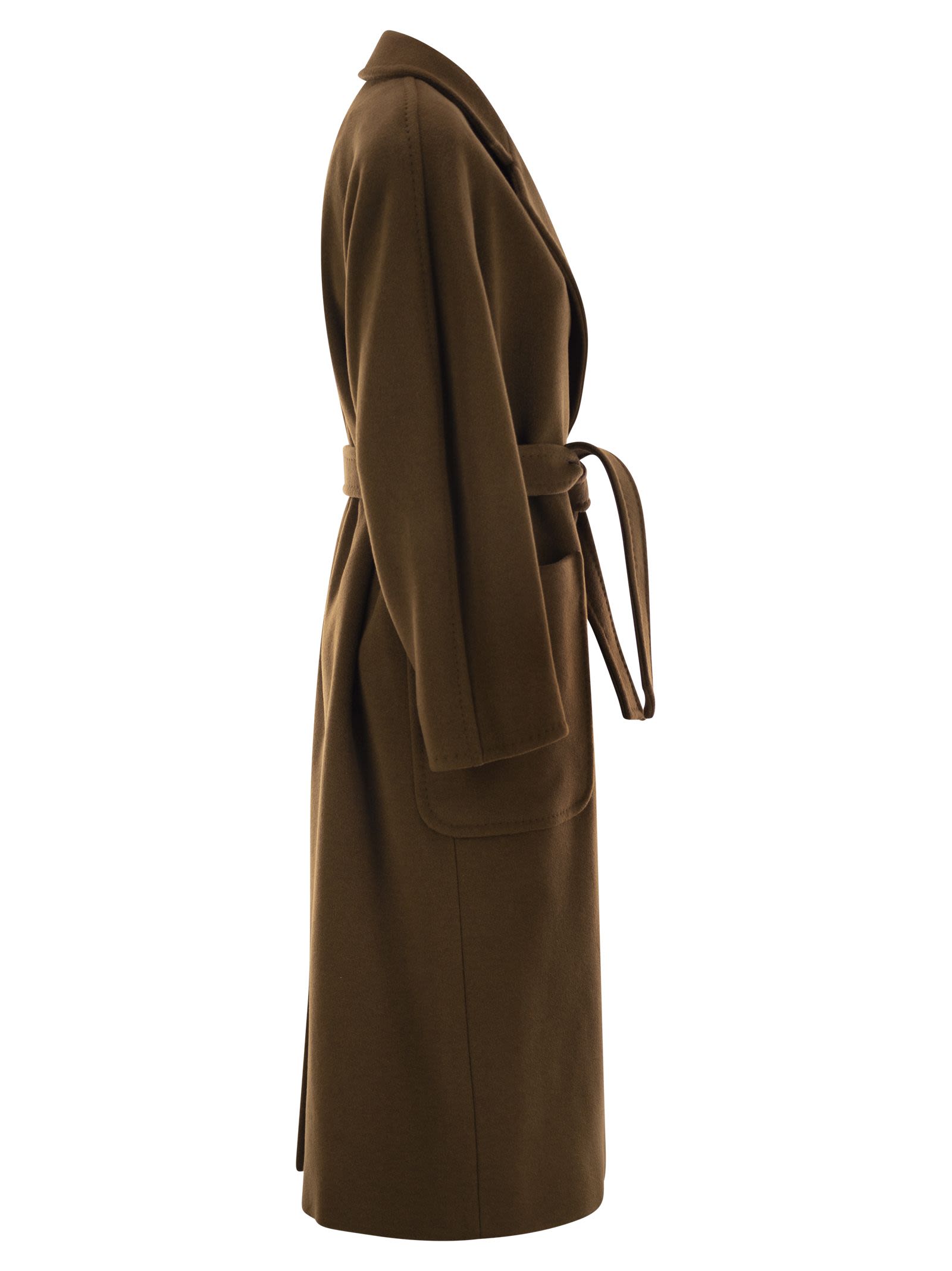 Long dressing gown coat with oversize volume, made of fine pure camel beaver. Lined model with lapel collar, long kimono sleeves and patch pockets on the front. Finished with a central back slit. The matching belt fastening emphasises the silhouette. - Oversize volume - Lined - Matching belt - Dressing gown style DESIGNER ID: 2421016503600 010