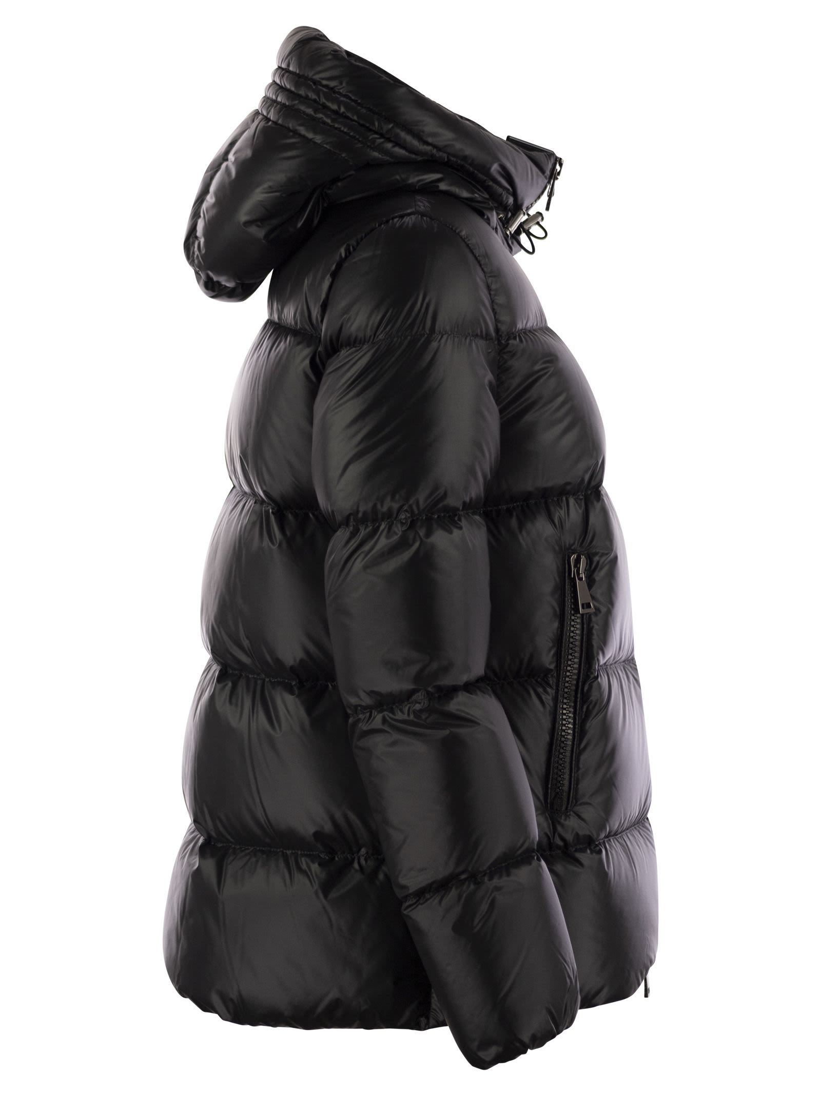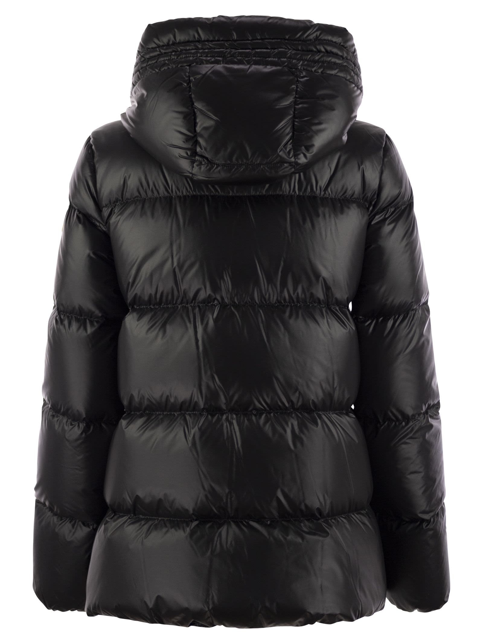 Protection and elegance come together in the Seritte women's short down jacket, made of léger brilliant nylon with a luminous texture that enhances looks. The hooded model has a classic line, designed to transcend seasons and trends. - Made of nylon léger brilliant - Lining in nylon léger brilliant - Feather padding - Adjustable hood - Zip closure - Zipped pockets - Felt logo patch DESIGNER ID: J20931A20000C0151 999