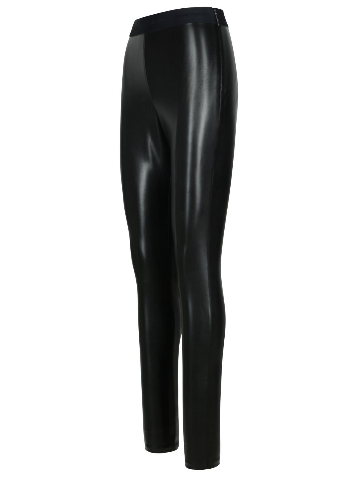Leather-effect leggings, elastic waistband with front tone logo, side hook closure and invisible zip