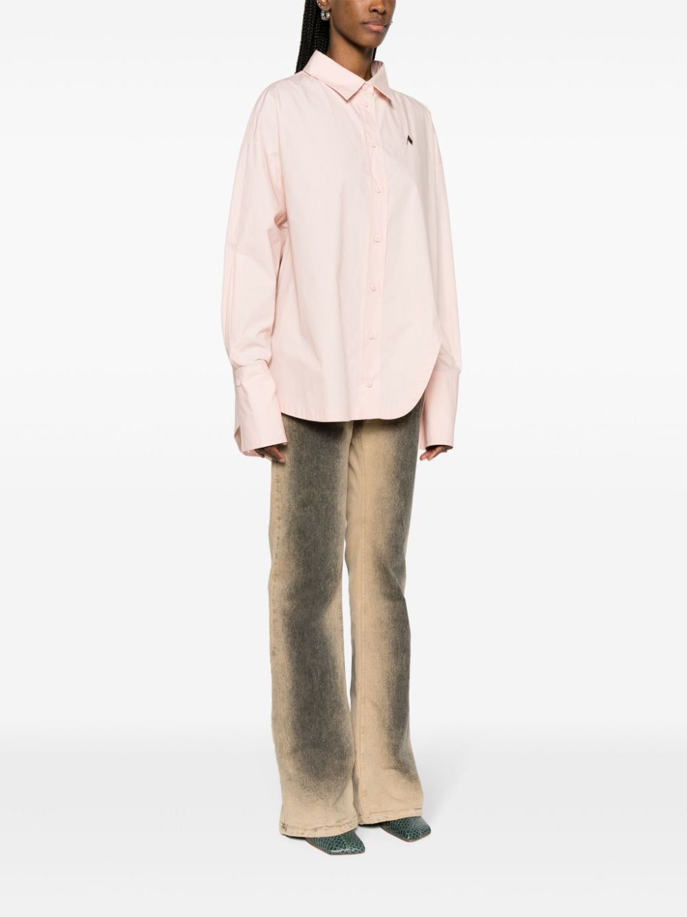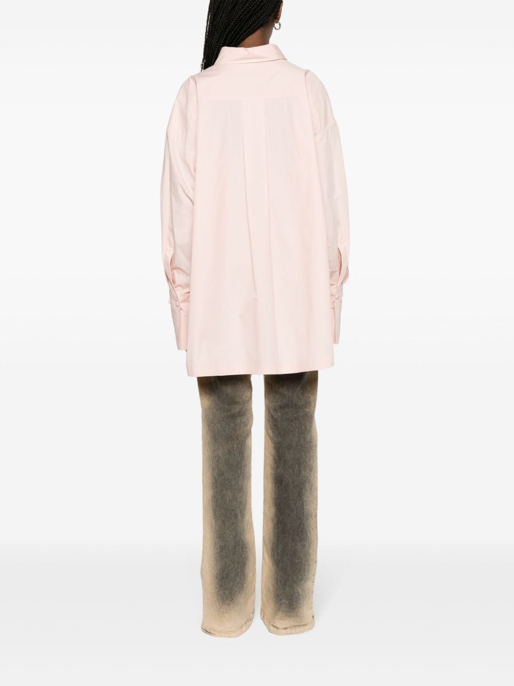 soft pink cotton box-pleat detail to the rear pleat detailing to the cuffs embroidered logo at the chest classic collar front button fastening drop shoulder long sleeves buttoned cuffs side slits high-low curved hem unlined