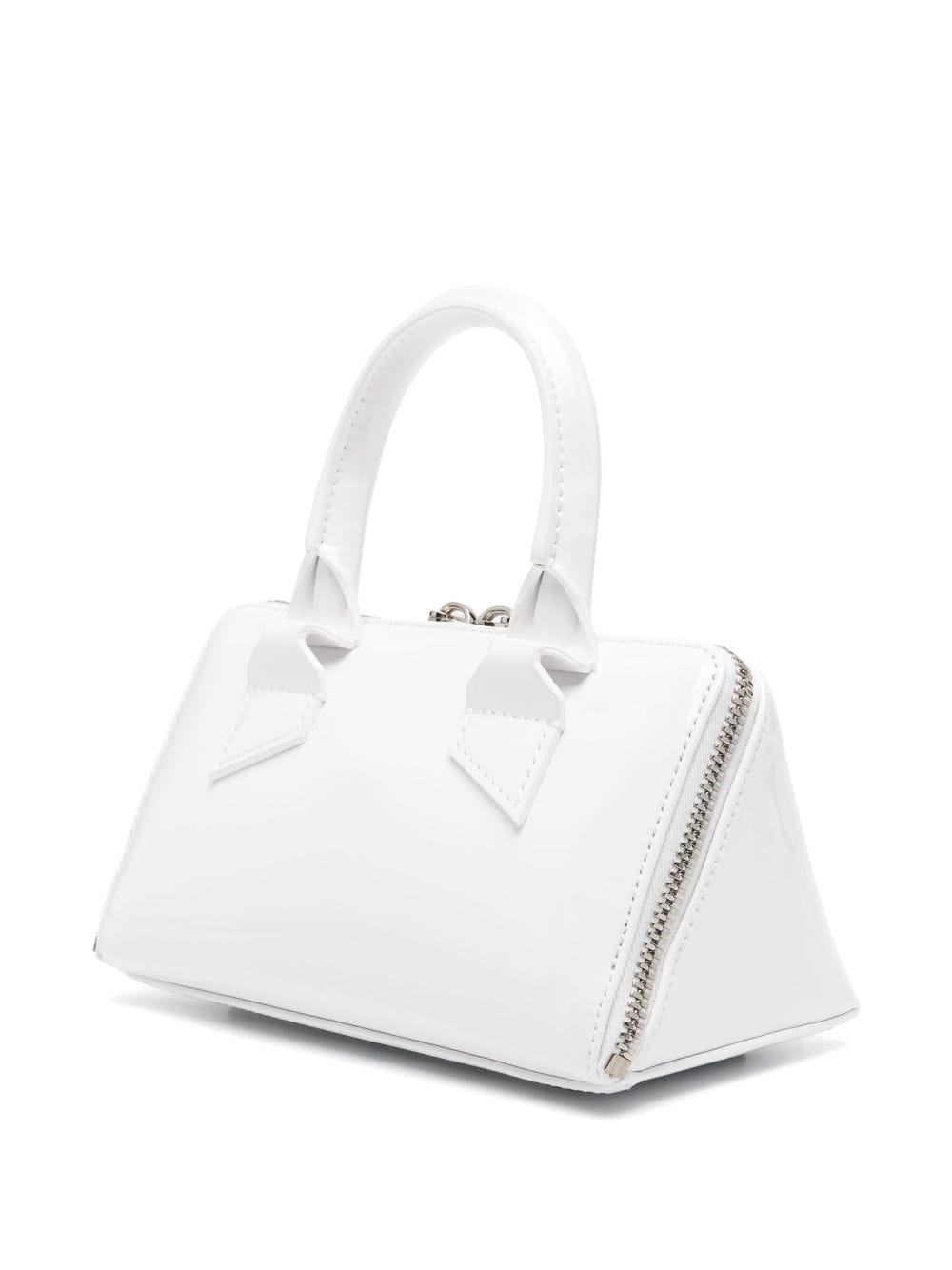 white calf leather patent finish single rolled top handle adjustable shoulder strap debossed logo to the front main compartment internal patch pocket debossed internal logo contrast lining two-way zip fastening This piece comes complete with a protective dust bag.