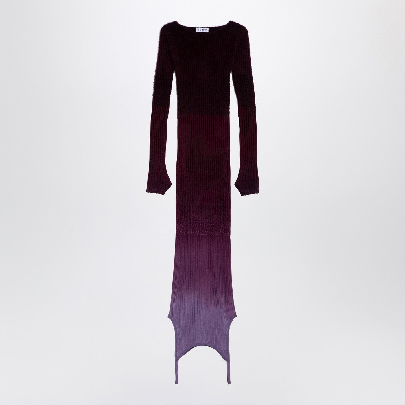 Purple and burgundy nylon and mohair blend ribbed crew neck dress from The Attico featuring long sleeves, a convertible design and a slim fit.