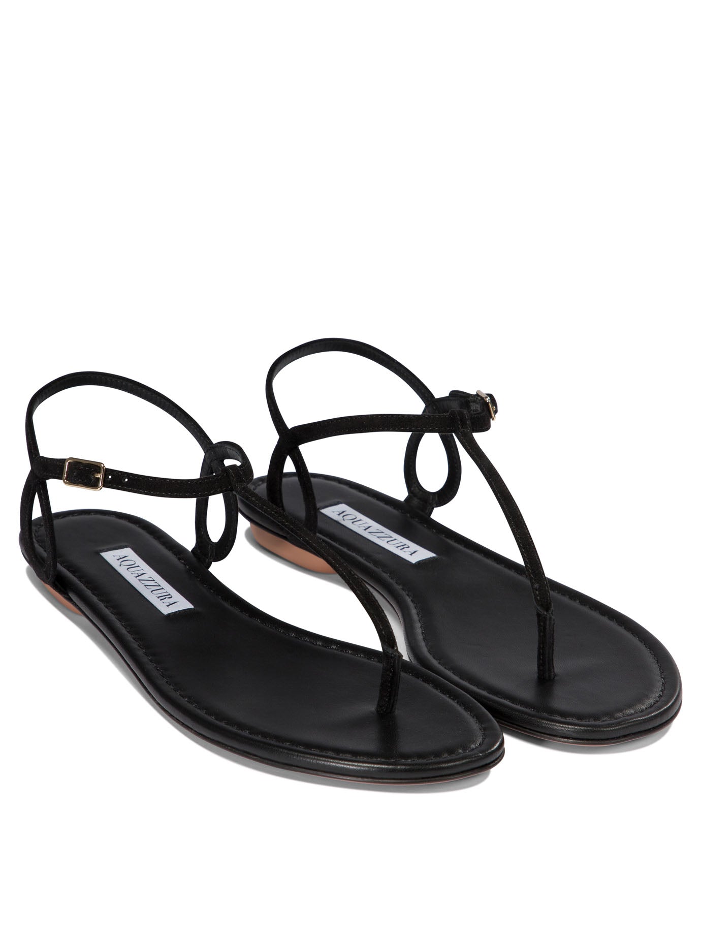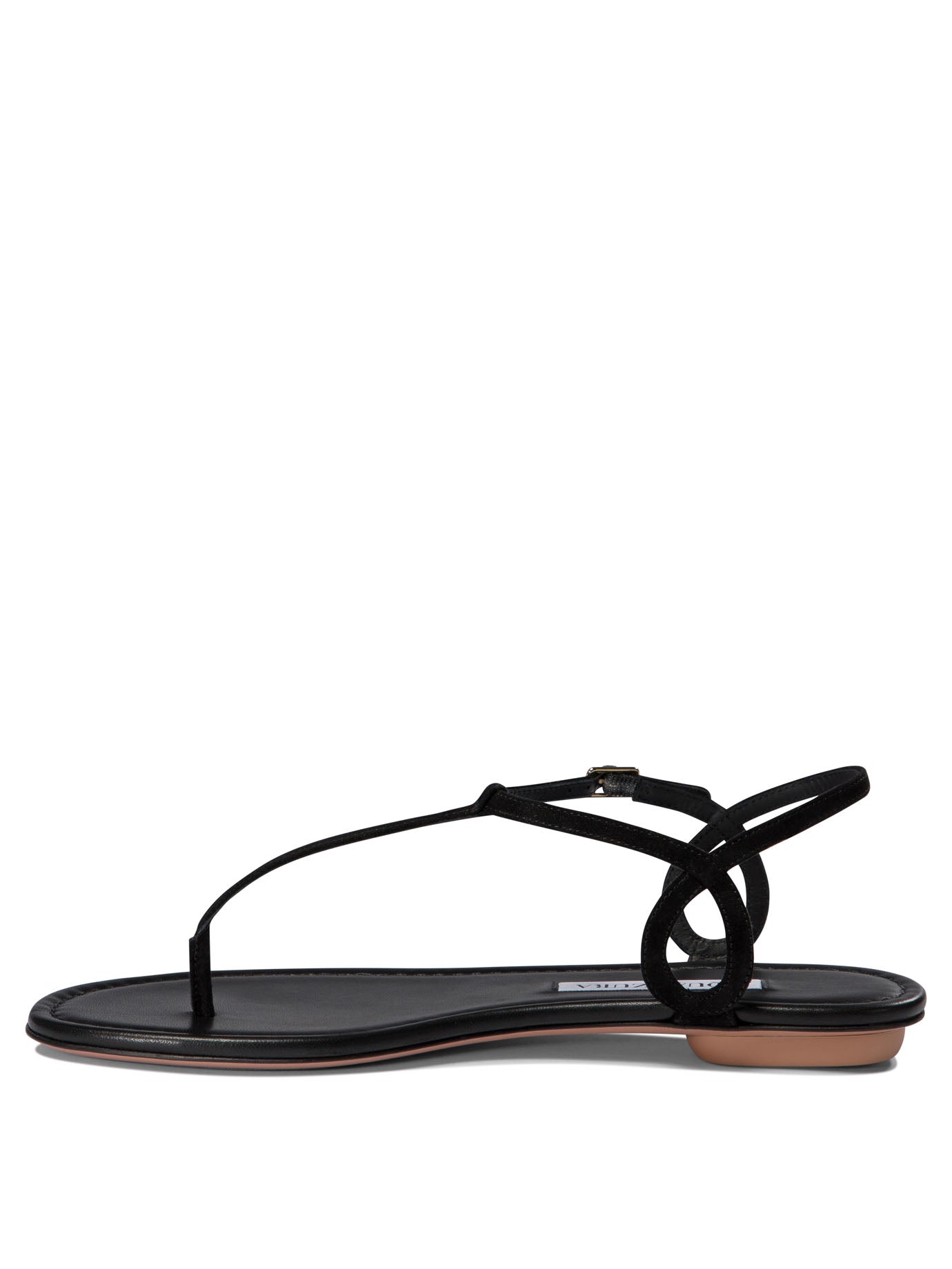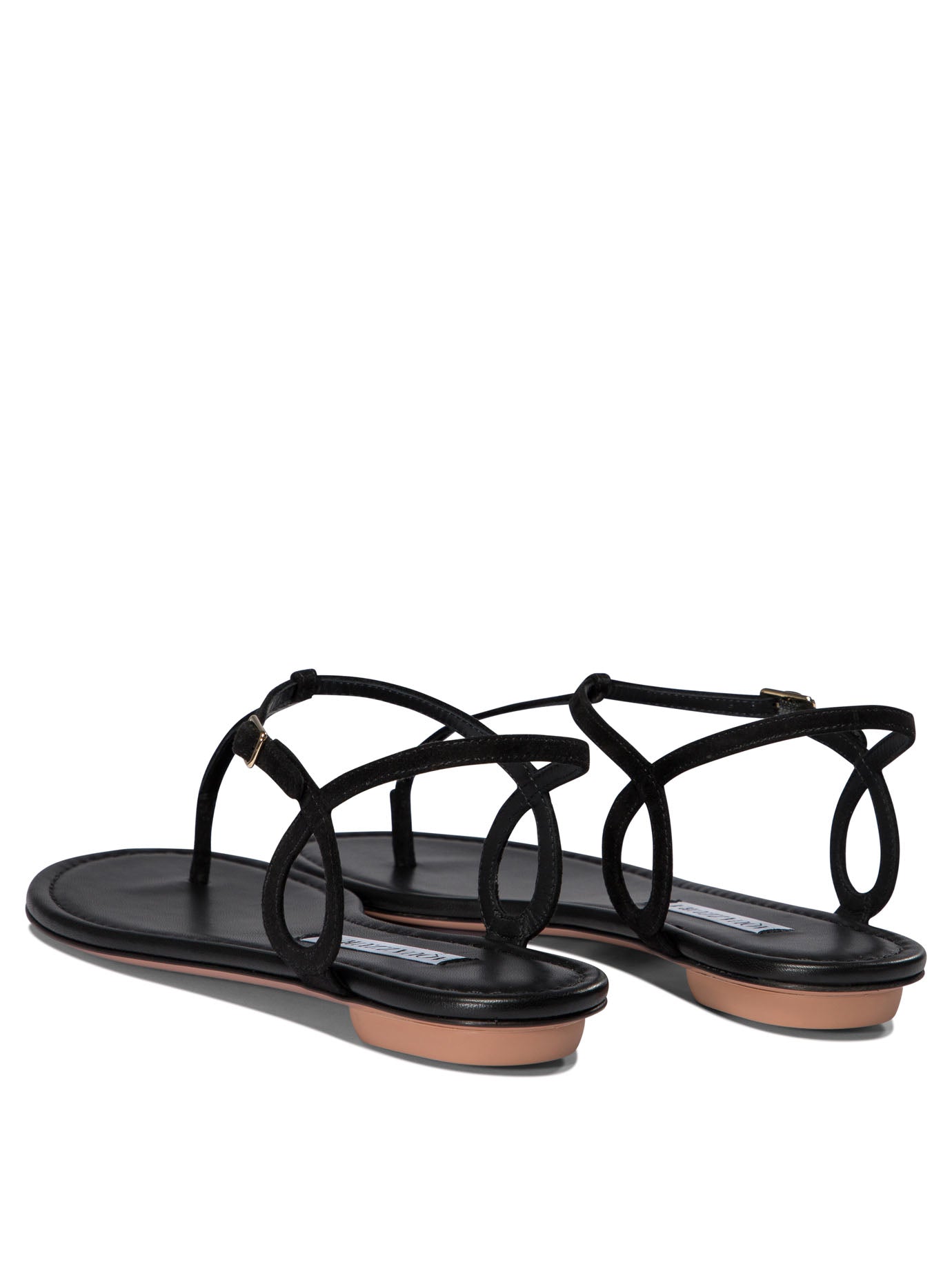 Aquazzura's elegant "Almost Bare" sandals are a must-have for summer, with their bright gold hue and decorative motifs that make them unique. Made with a metallic leather effect, they feature an adjustable buckle closure for a perfect fit. The flat heel and padded leather insole ensure all-day comfort, while the signature logo adds a touch of style. A product designed for the woman who seeks to combine fashion and practicality.
