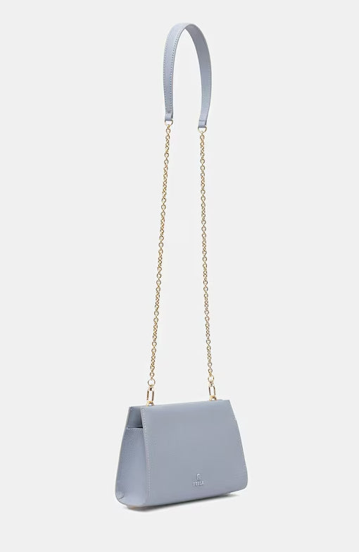 Made of leather with a printed texture, it stands out for its geometric lines with a trapezoid shape.