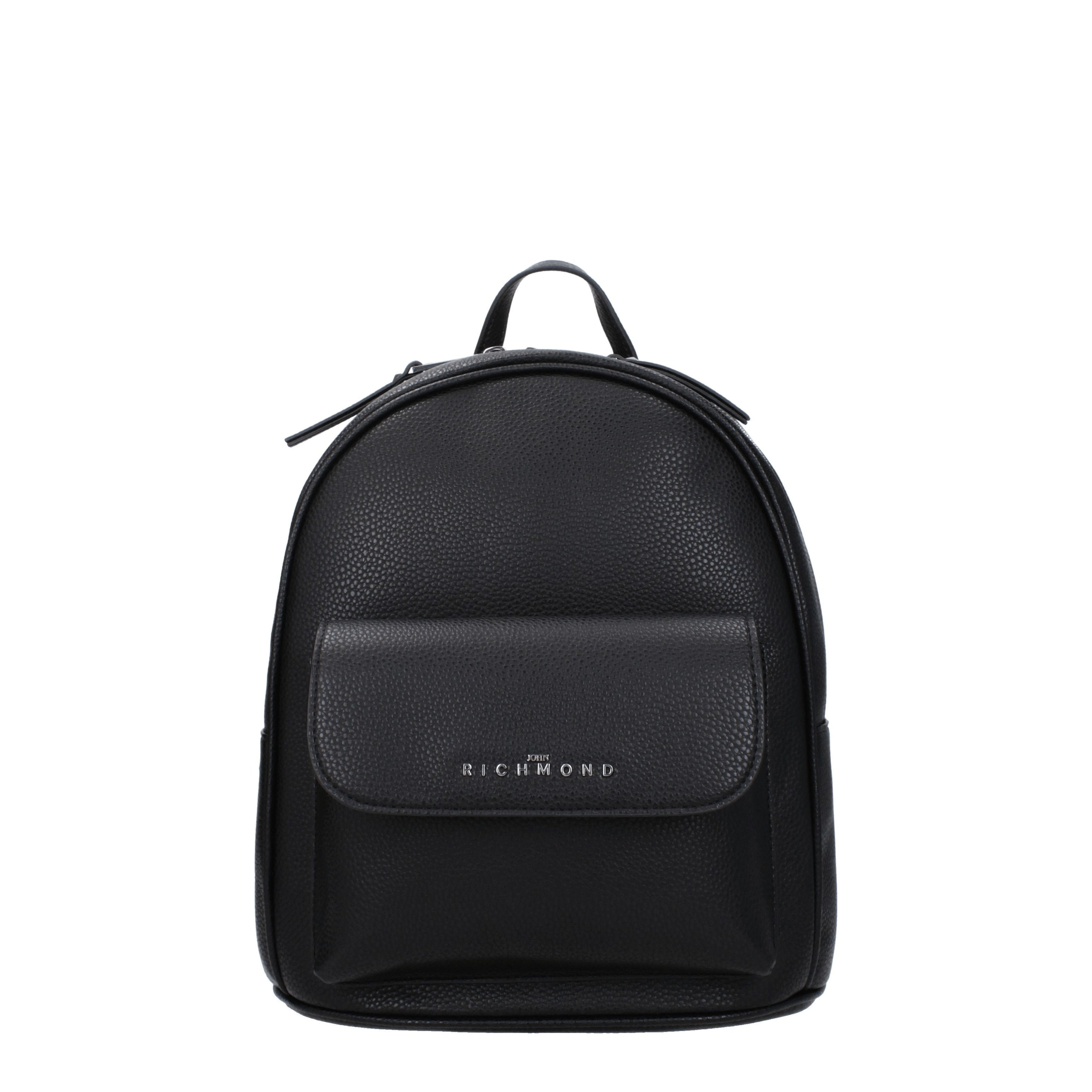 The item with MPN RWP24078ZABLACK and code F79133 in polyurethane in the color black belongs to the backpacks and waist bags category by designer John Richmond. It features characteristics such as adjustable back straps, back detail, removable detail, front logo.