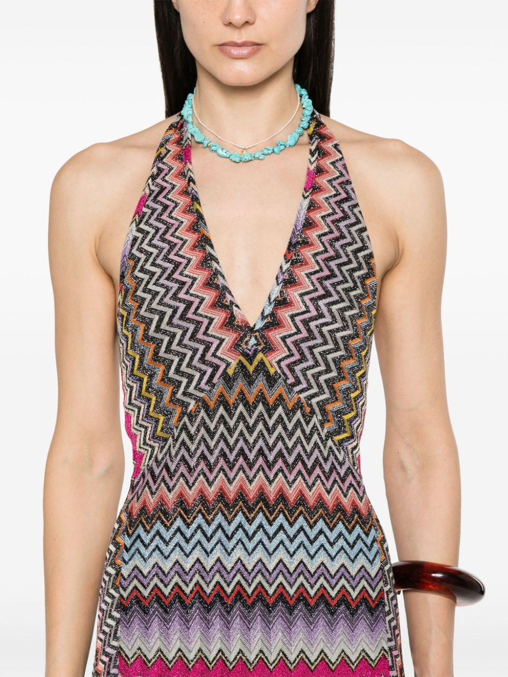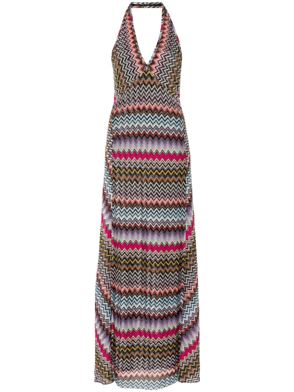 multicolour fine knit lurex detailing signature zigzag woven design halterneck V-neck sleeveless full-length open back full lining straight hem pull-on style The item you receive may differ slightly from the item photographed. This is due to the artisanal nature with which all Missoni products are constructed.
