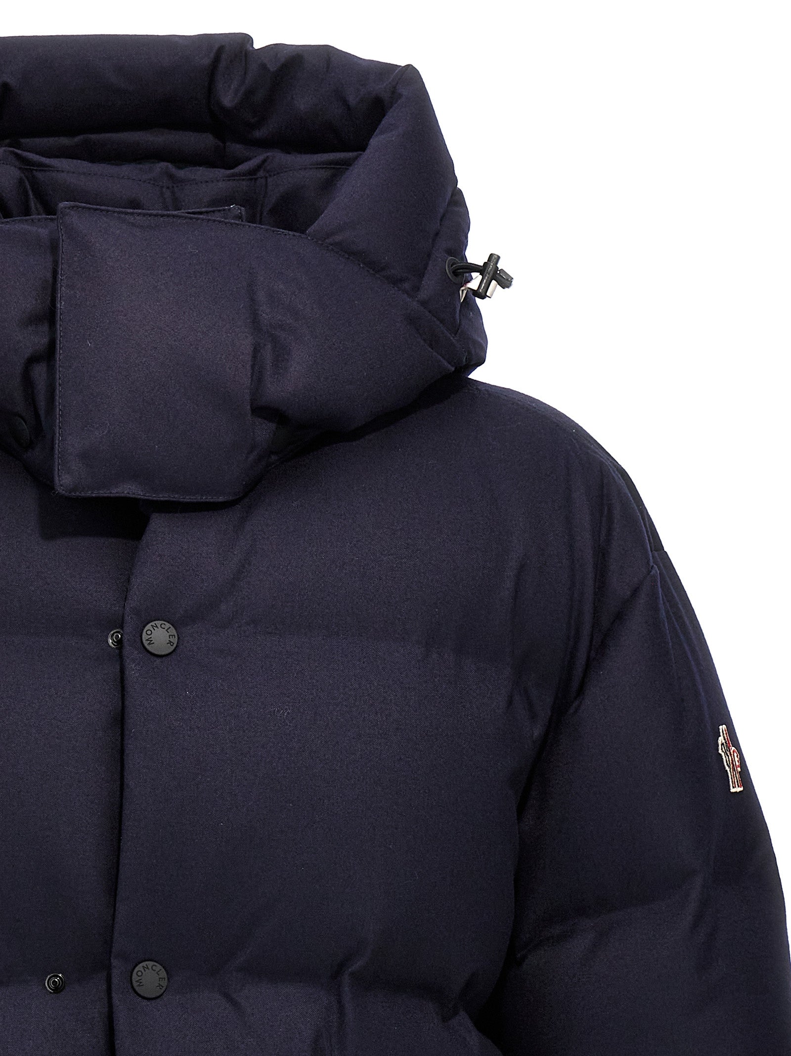 'Krun' wool down jacket, removable hood with adjustable drawstring, goose down padding, long sleeves with windproof cuffs, high neck, zip and snap button closure, pockets, logo patch on the sleeve, adjustable drawstring on the hem, windproof gaiter.