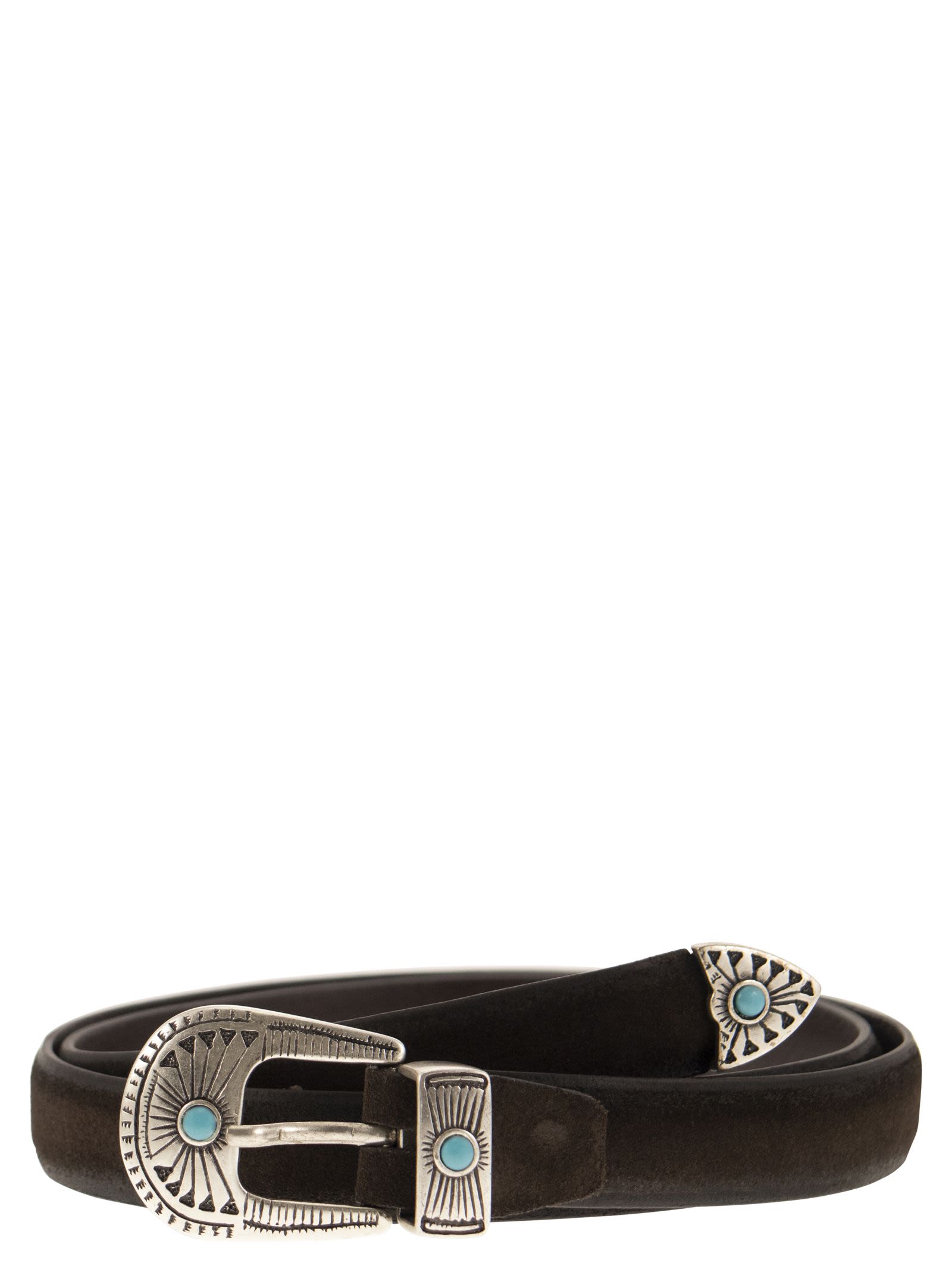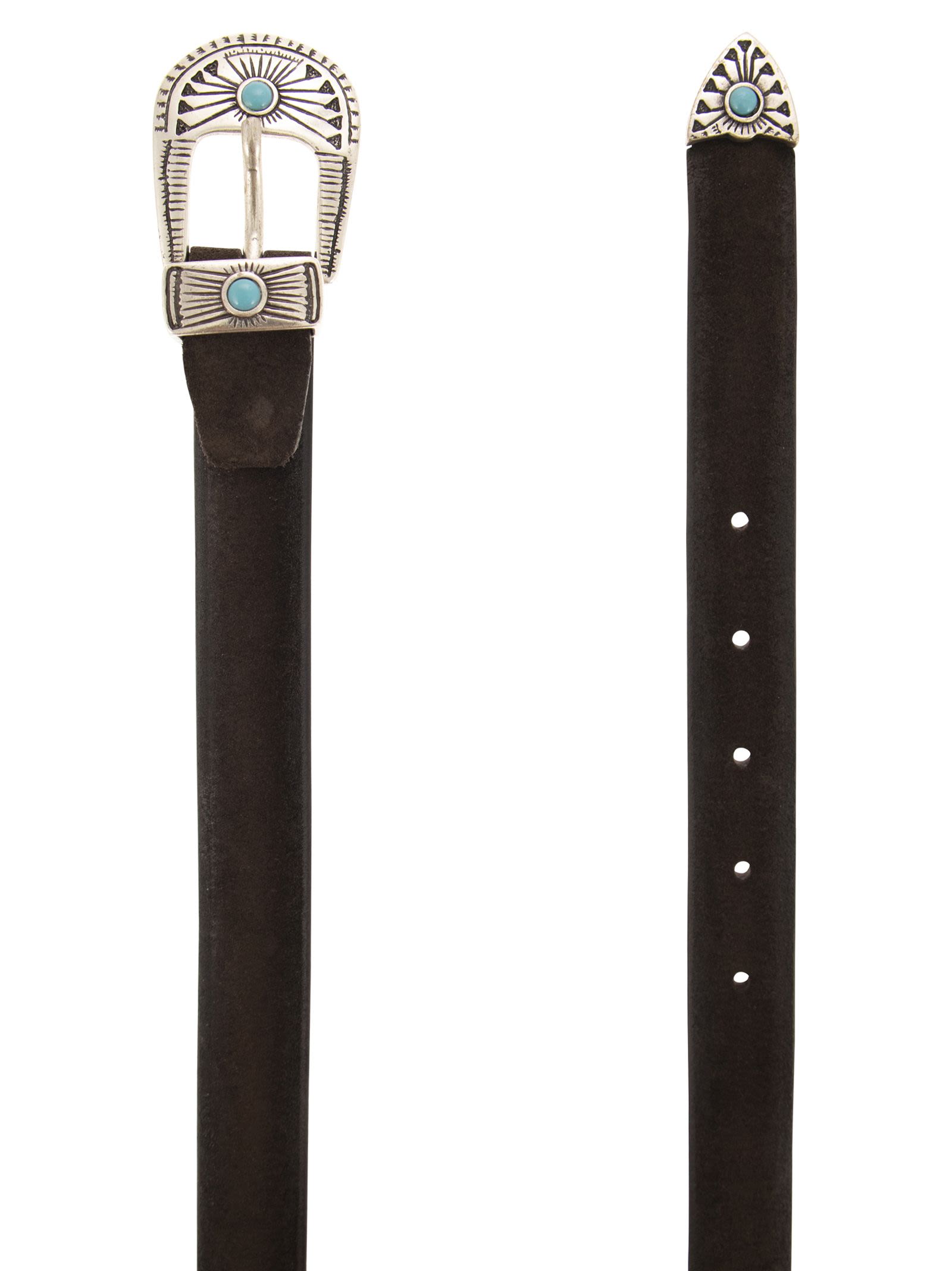 Belts designed specifically for demanding and ambitious men, with the utmost attention to detail, meticulous Italian craftsmanship and extreme determination. - Genuine vintage split leather - Machined metal buckle embellished with turquoise details DESIGNER ID: 766/25