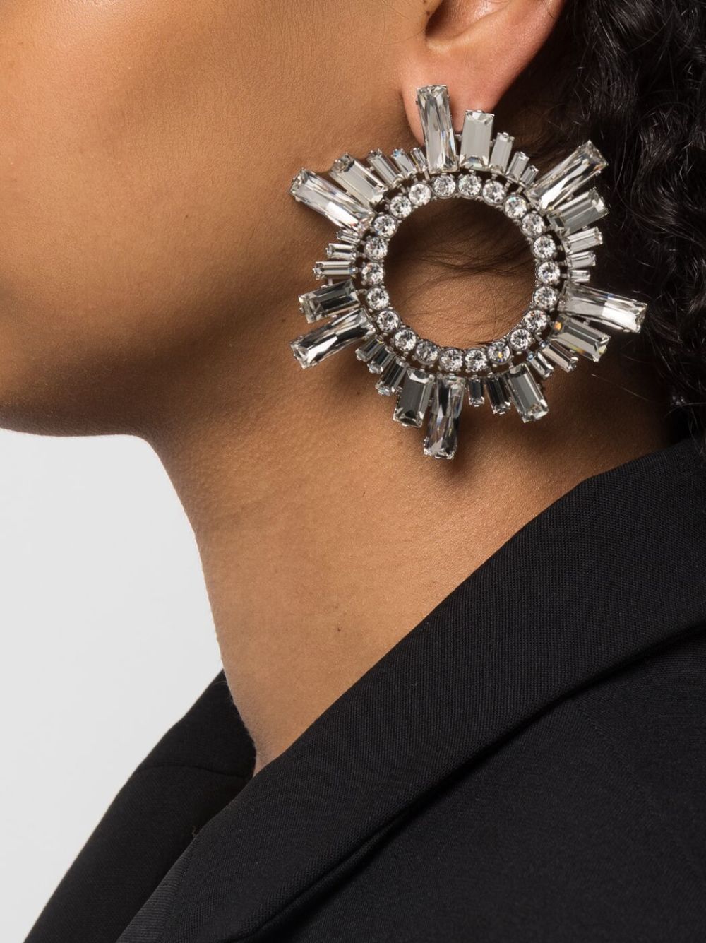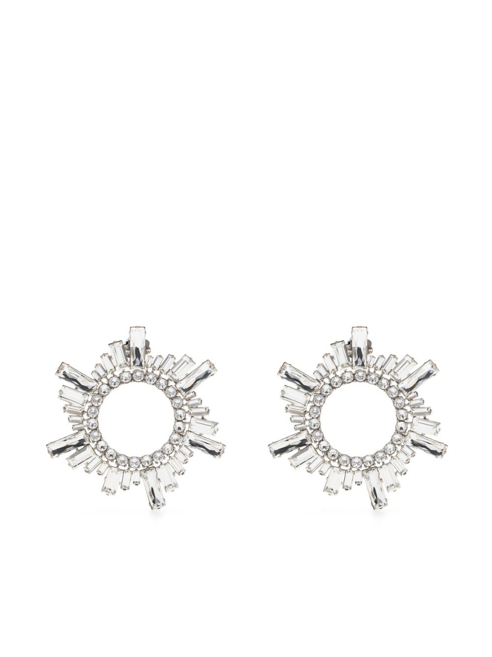 Begum crystal-embellished earrings from AMINA MUADDI featuring silver, brass, baguette cut, crystal embellishment, circular design, post-back fastening and for pierced ears. These earrings come as a pair..