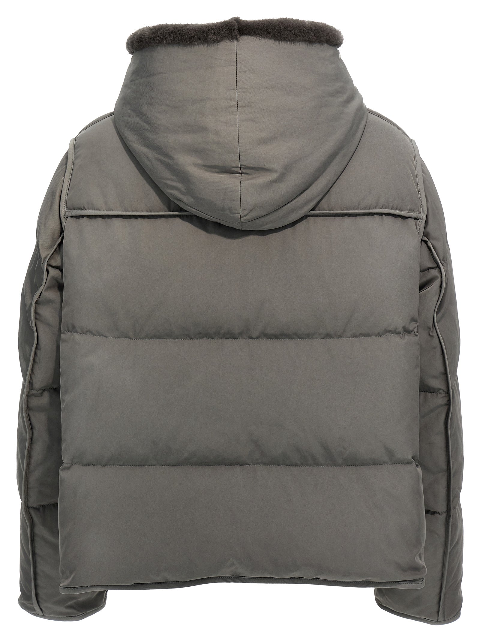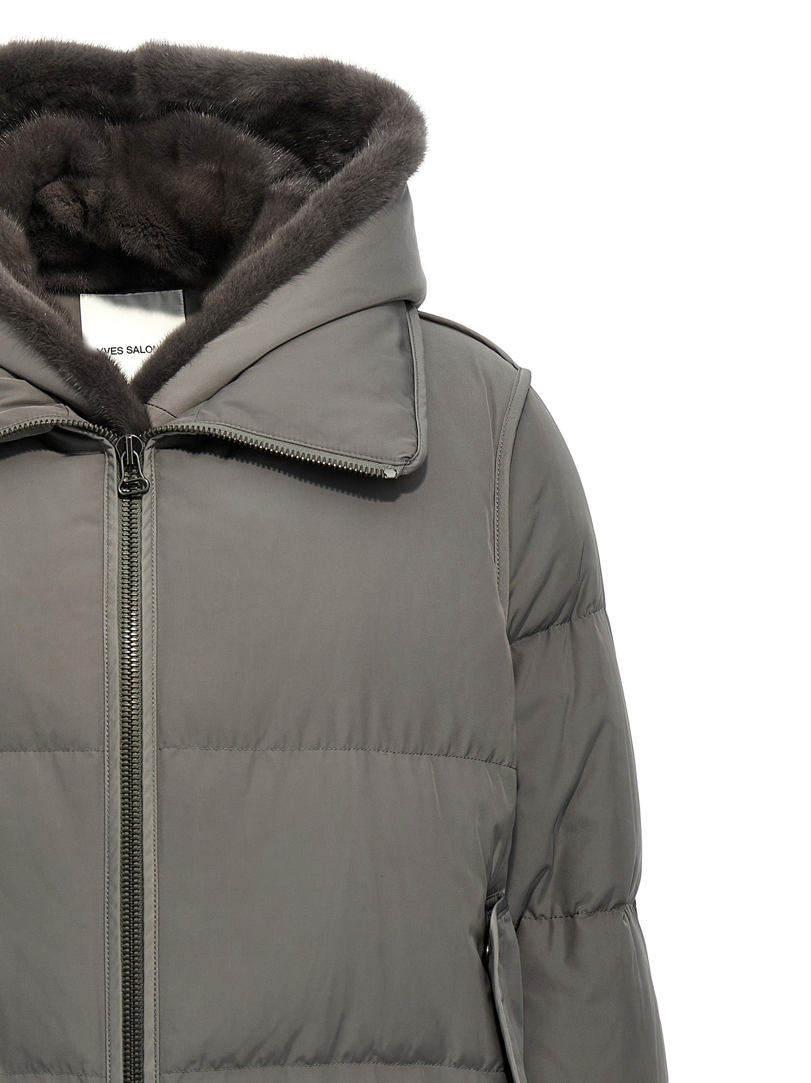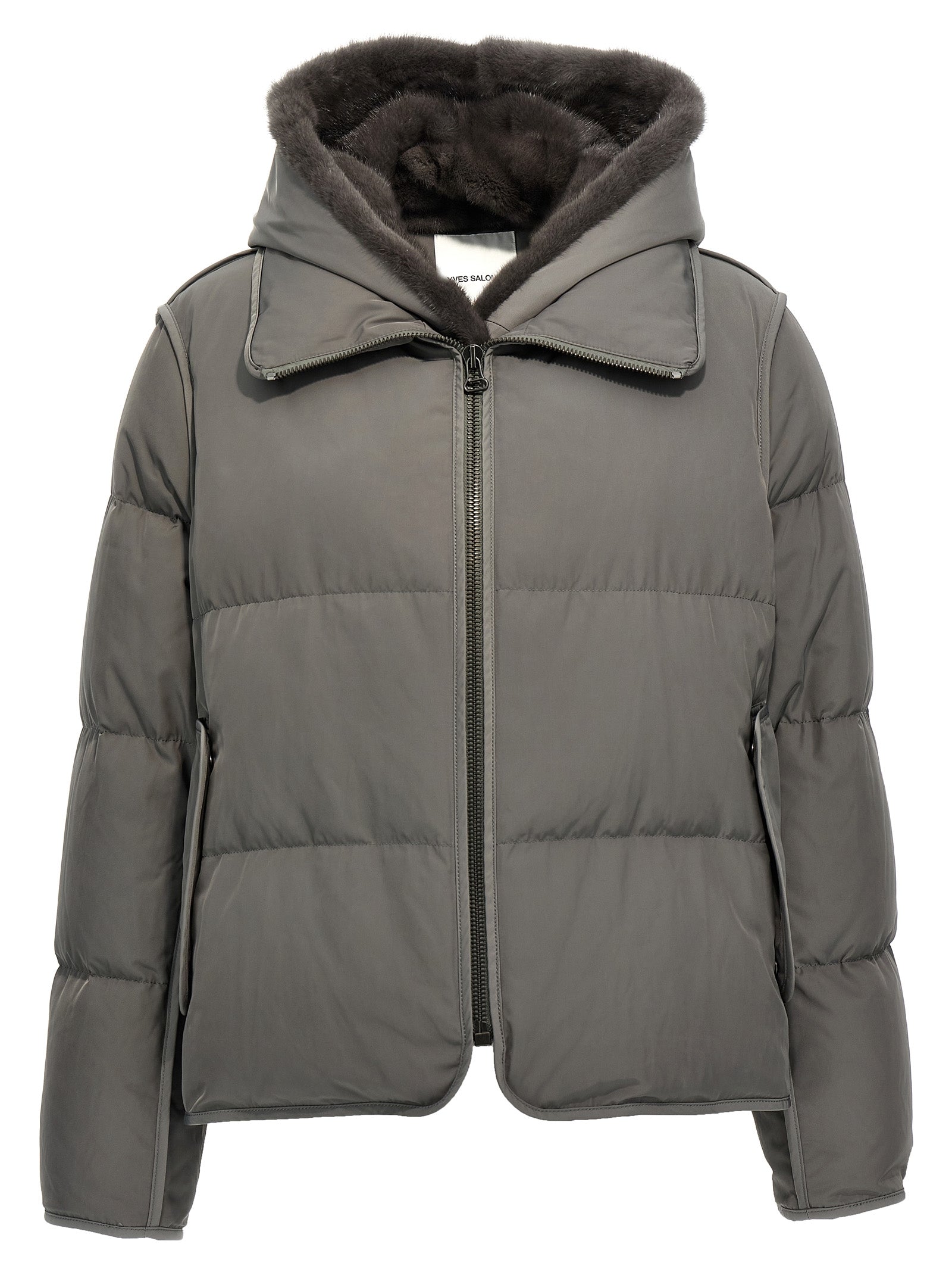 'Doudoune' nylon jacket padded with duck feather, removable mink fur inserts and hood, zip closure, pockets, long sleeves.